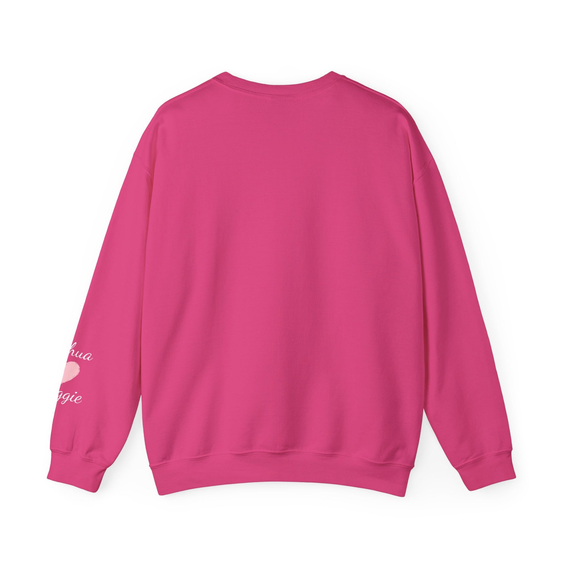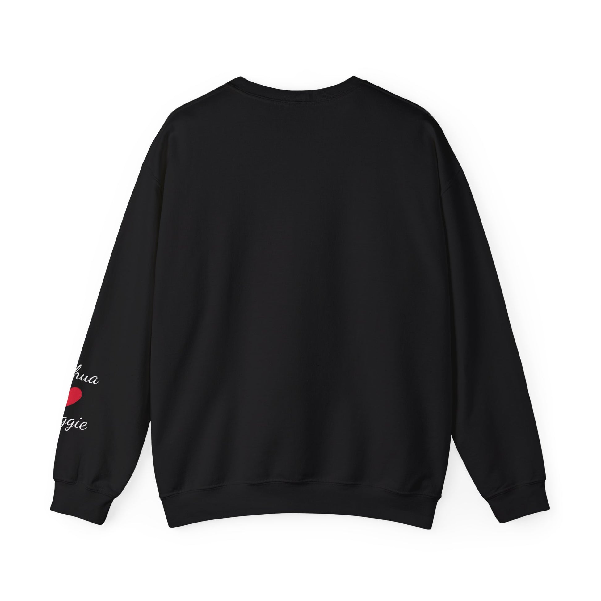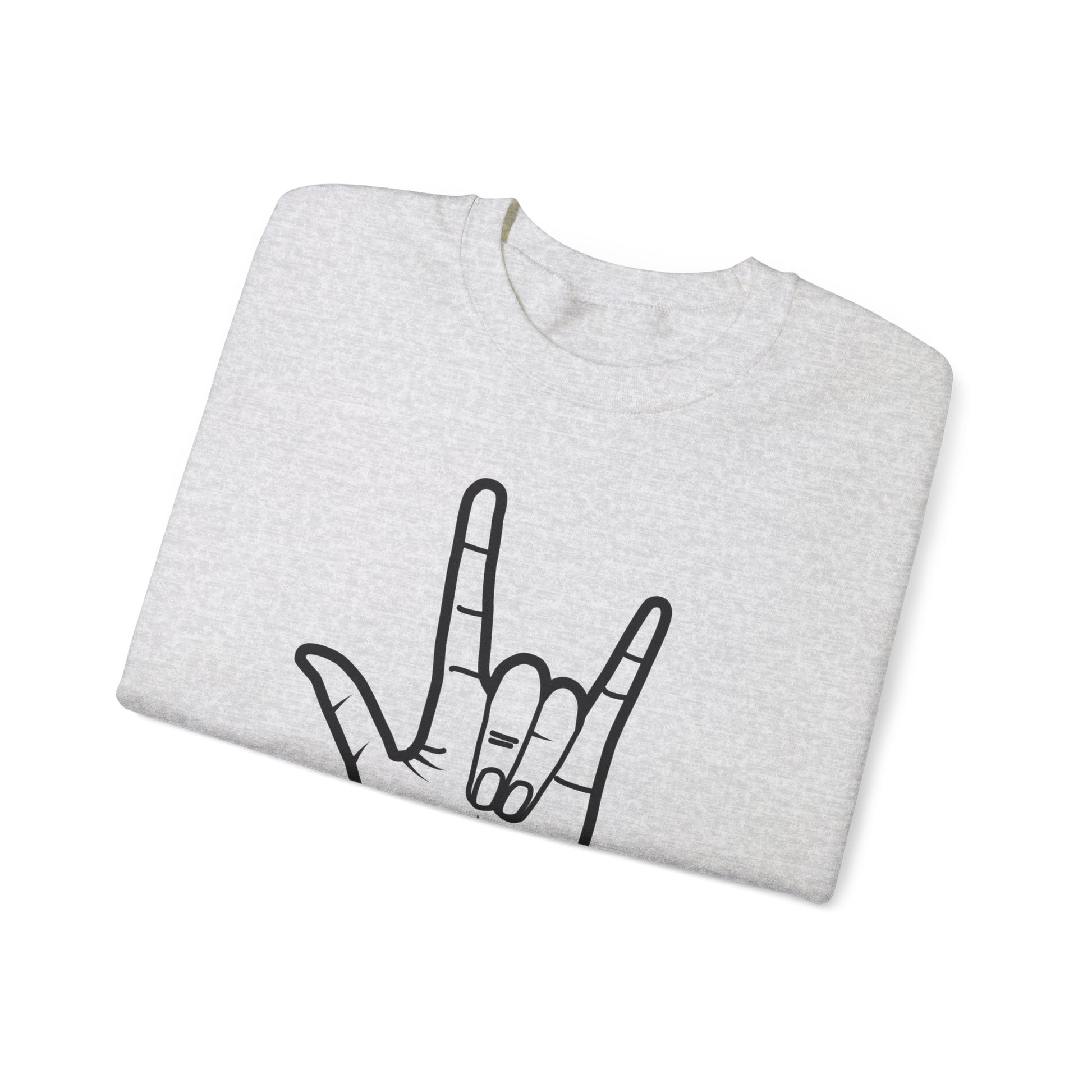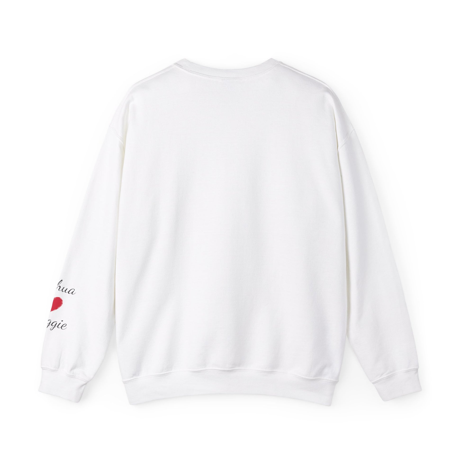 This adorable and thoughtful I Love You ASL sign unisex sweatshirt (Gildan 18000) customized with your names on a sleeve print would make her eyes light up on Valentine's Day.