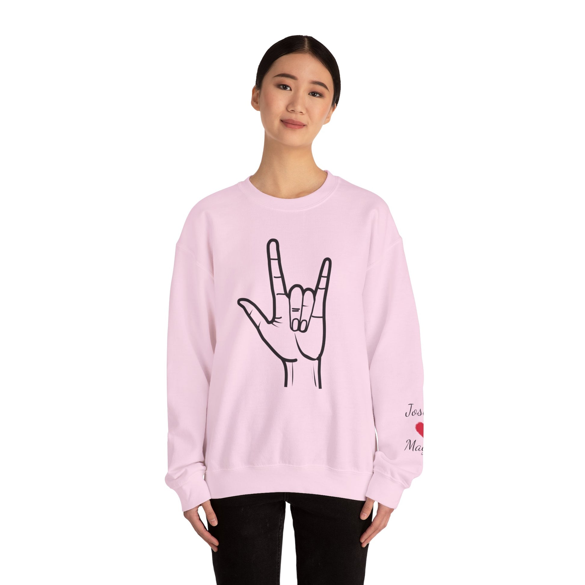 ASL I Love You Valentine's Day Custom Sweatshirt with Names on Sleeve Print Gift for Girlfriend