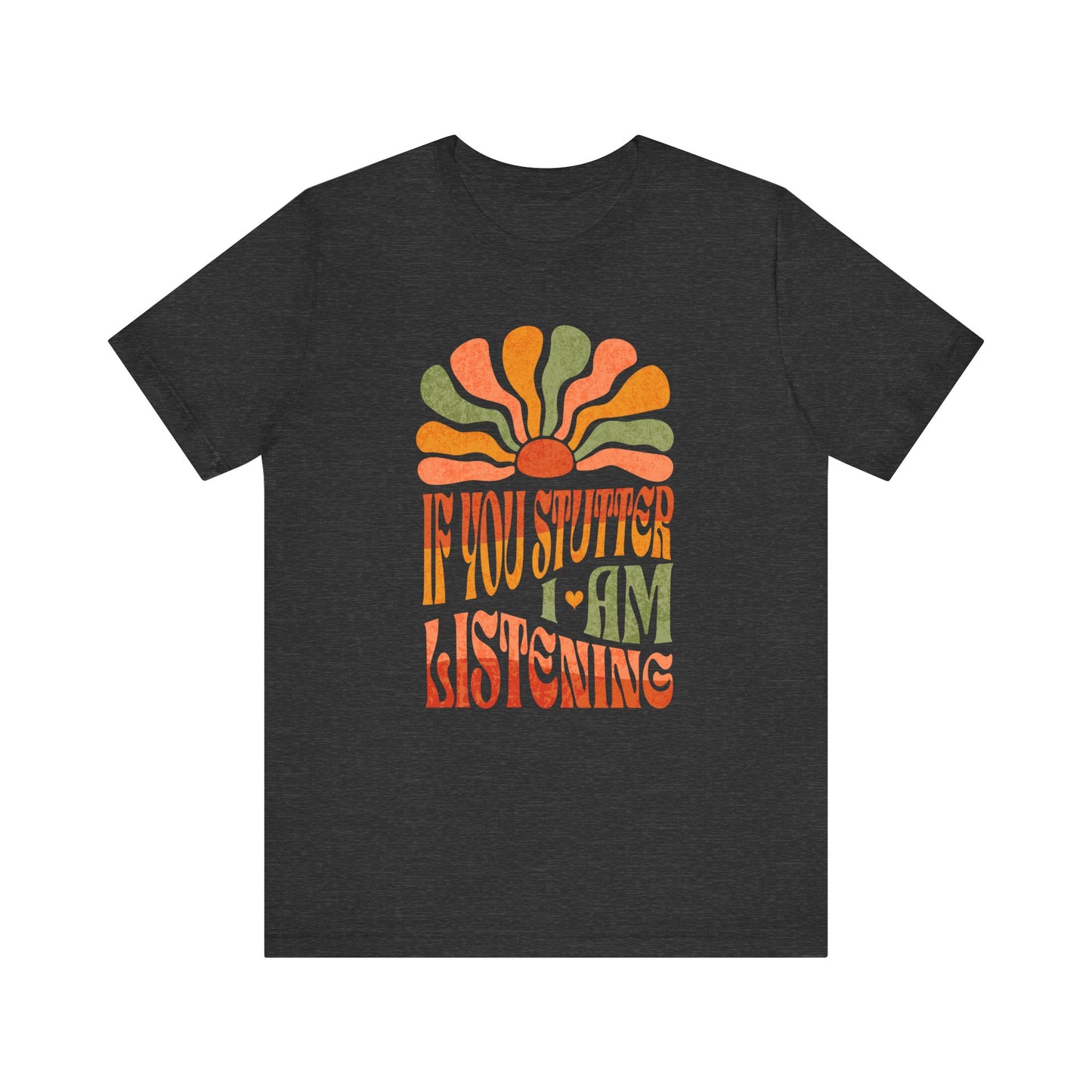 ✨This unisex "Stuttering Awareness" retro sea green t-shirt is an ideal gift for a person who stutters (or stuttering allies, SLPs, friends and family) for Stuttering Awareness Week (May 9 - May 15, 2024)!