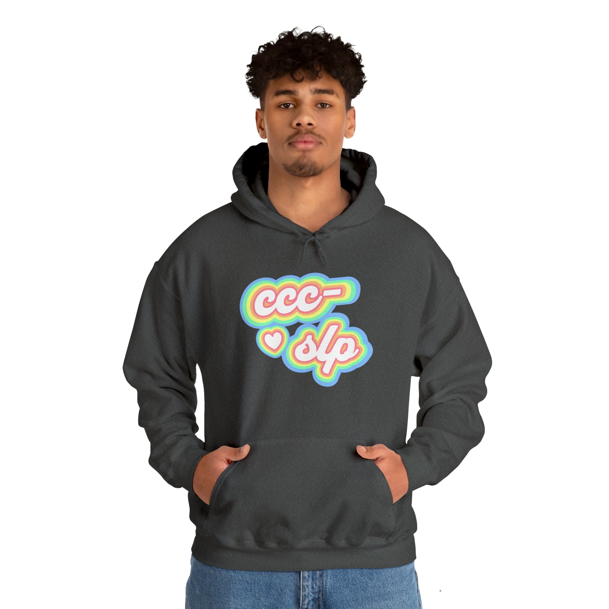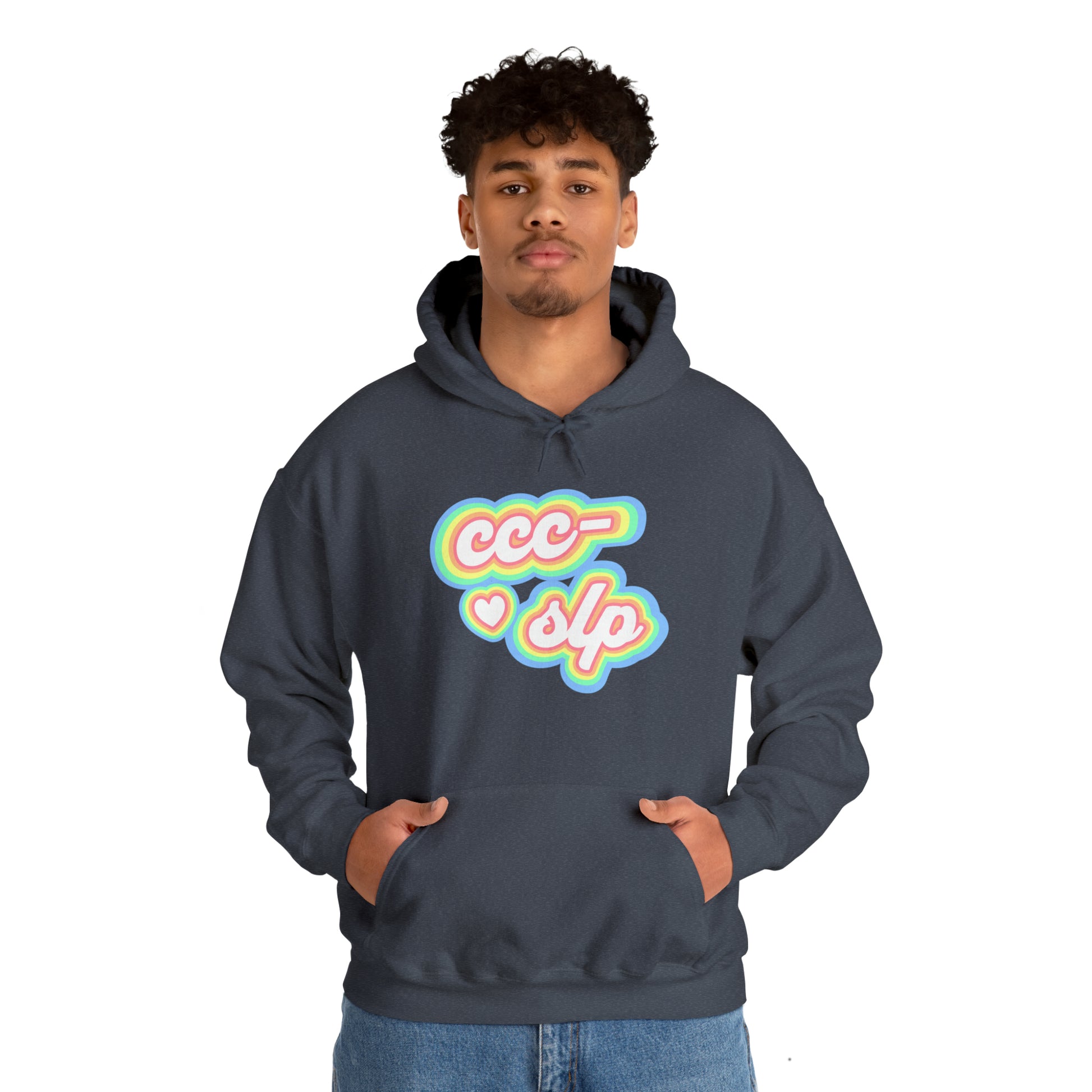 ✨This “CCC-SLP” retro pastel Gildan 18500 unisex hoodie sweatshirt is an ideal gift for yourself, your favorite SLP, or speech-language pathology grad student. A portion of the proceeds will go towards National Stuttering Association (NSA) support groups - thanks for supporting the Normalize Stuttering movement!