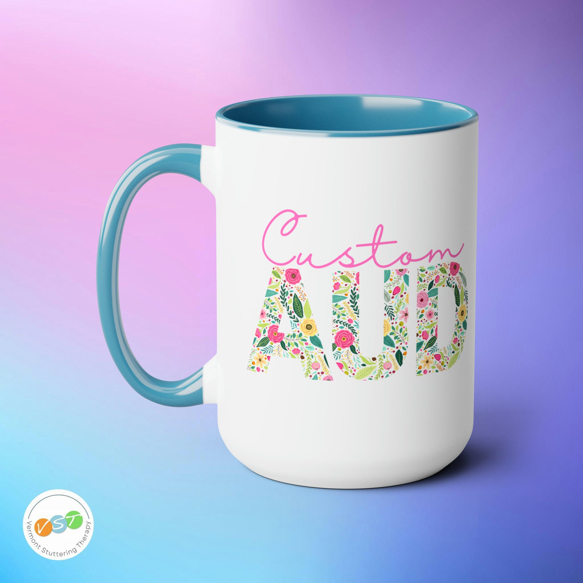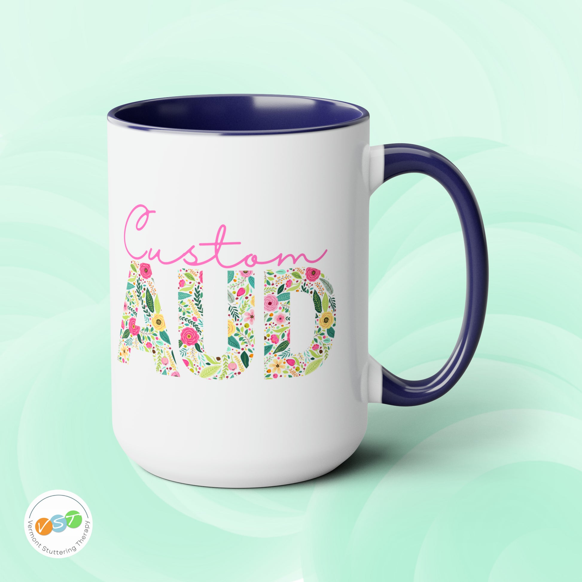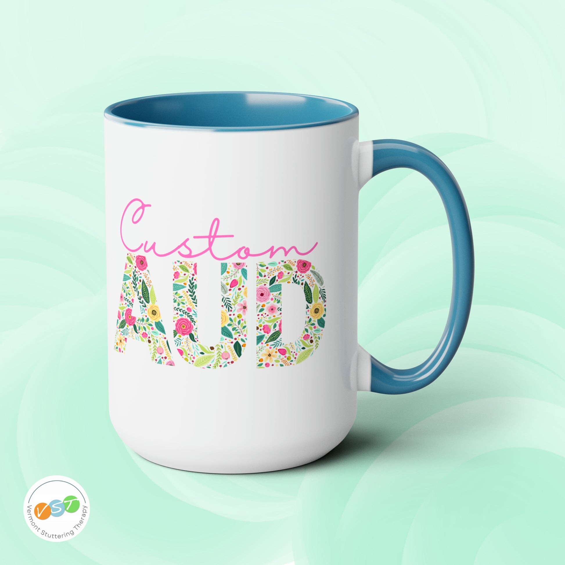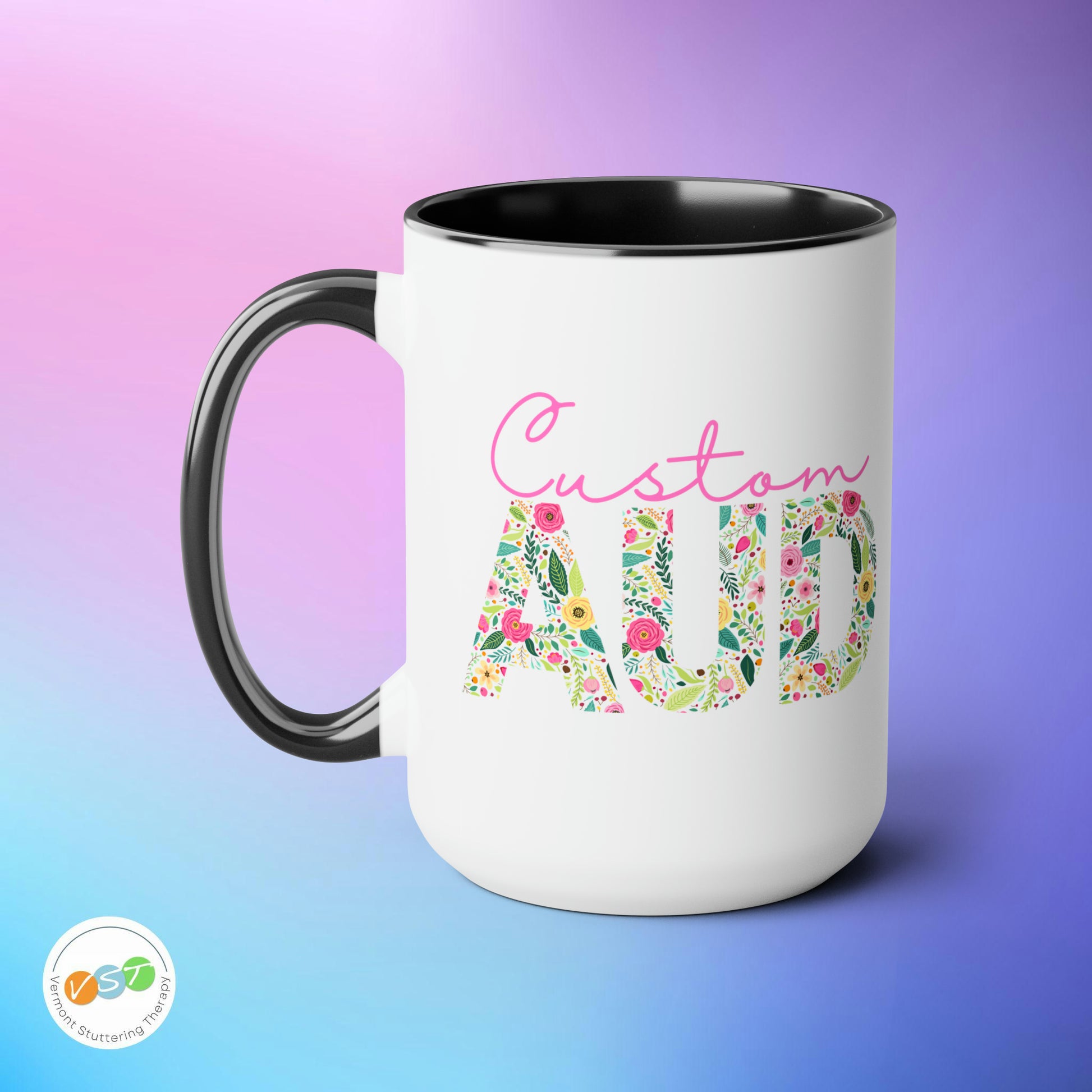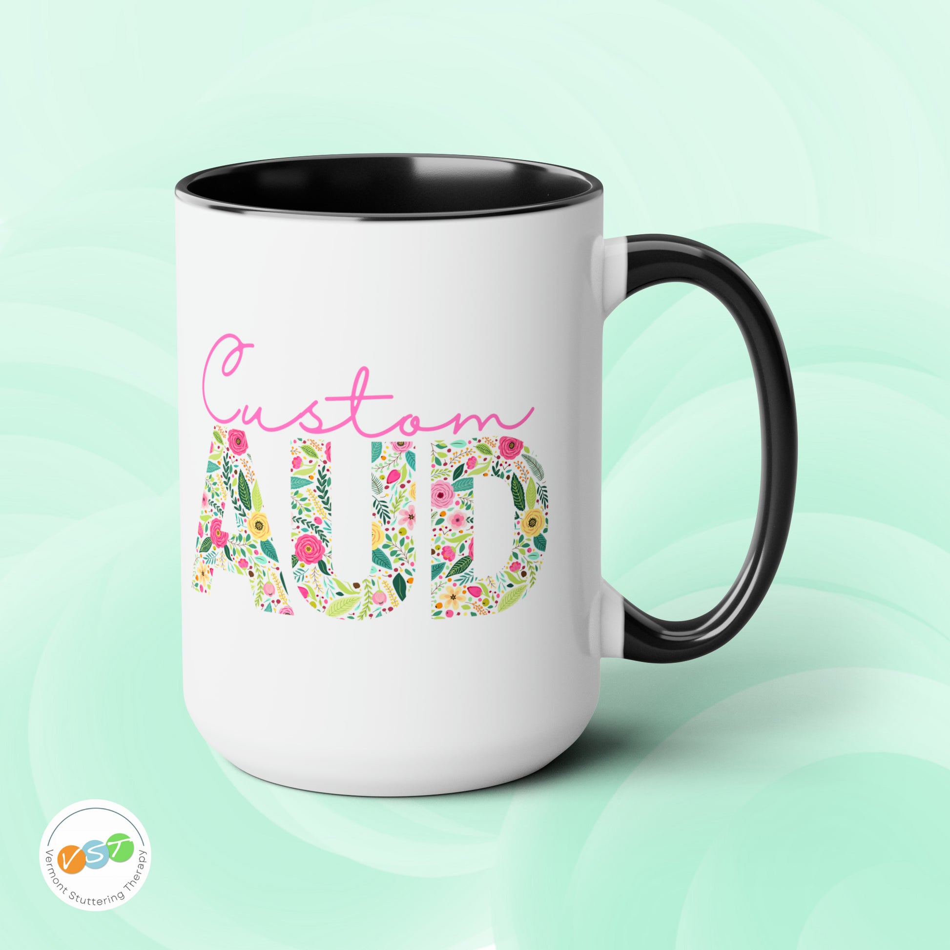 Your favorite Audiologist can start their morning off right with this adorable customized floral two-tone "AUD" coffee mug. This is the perfect gift for the hard-working audiologist, graduating AuD student, or audiology supervisor!