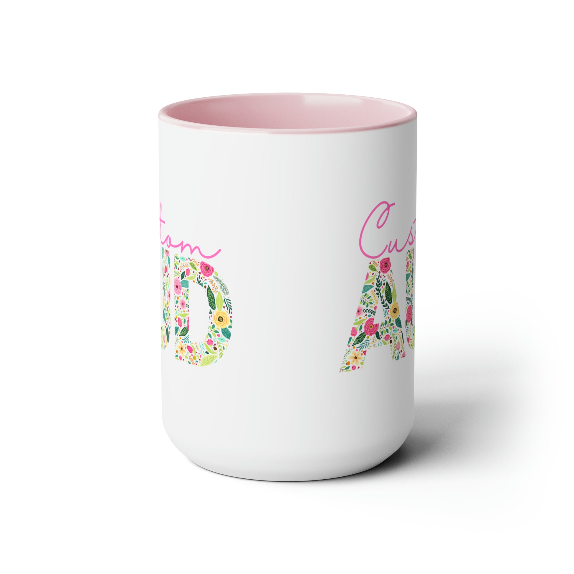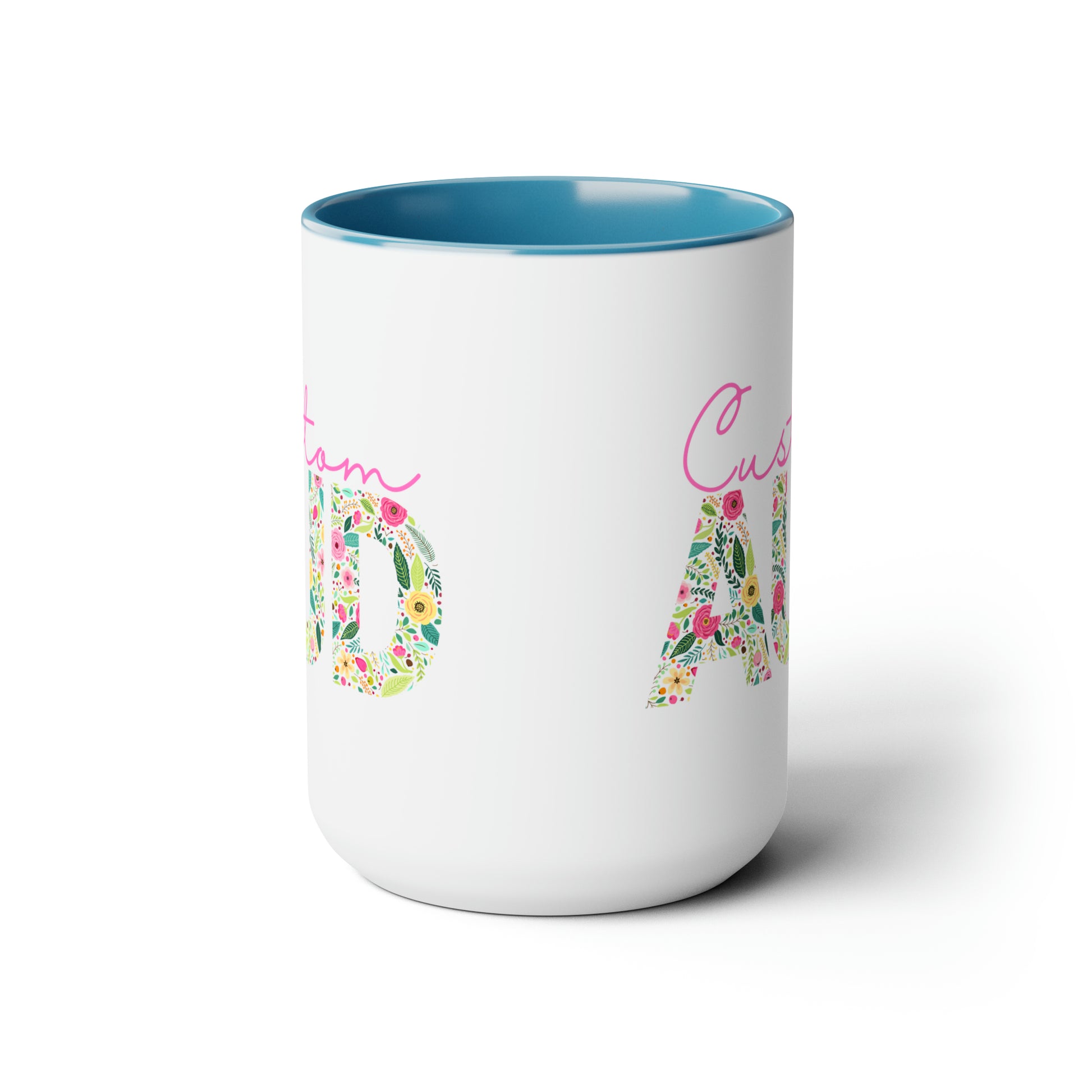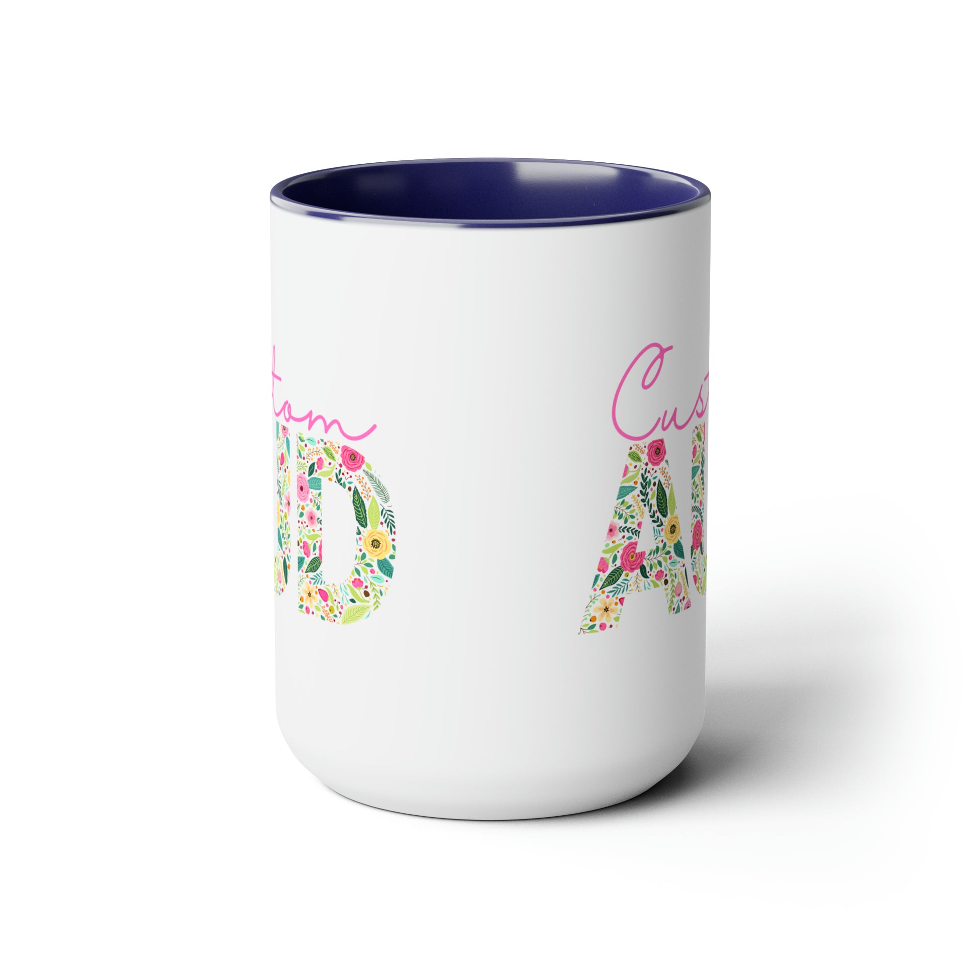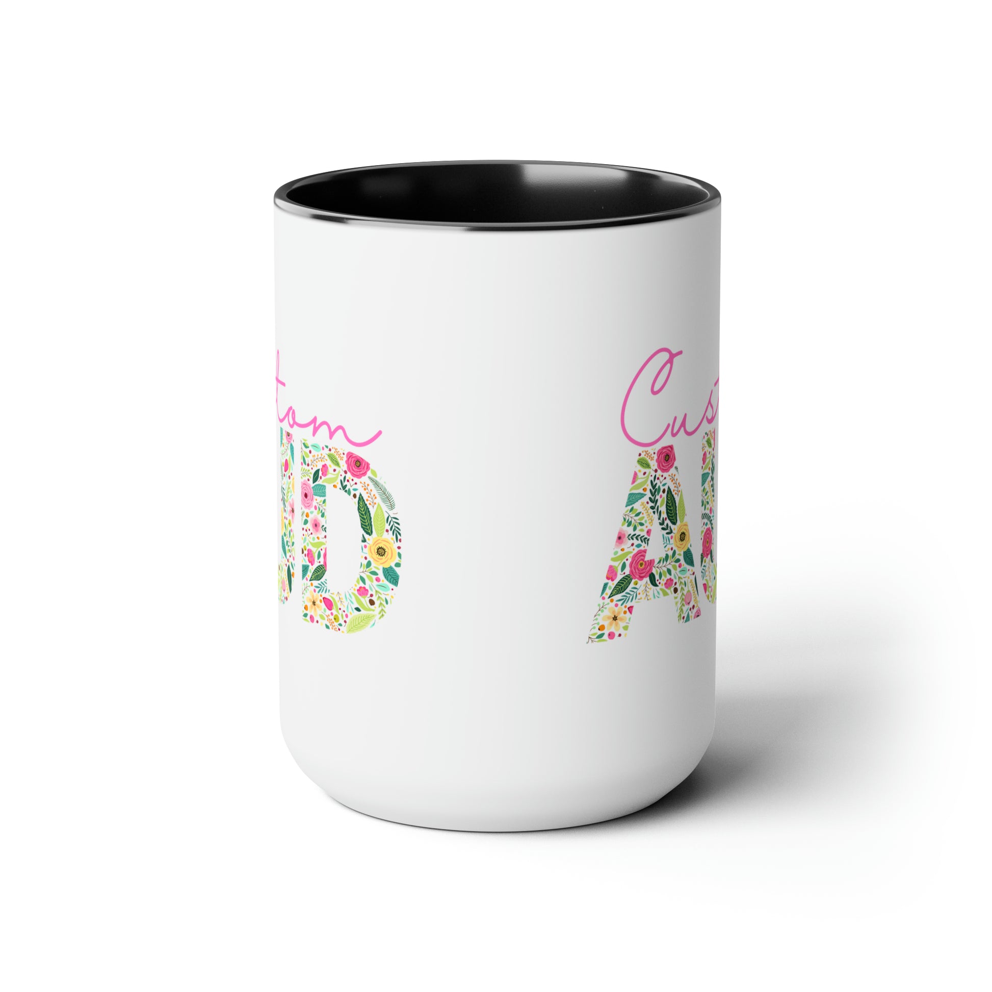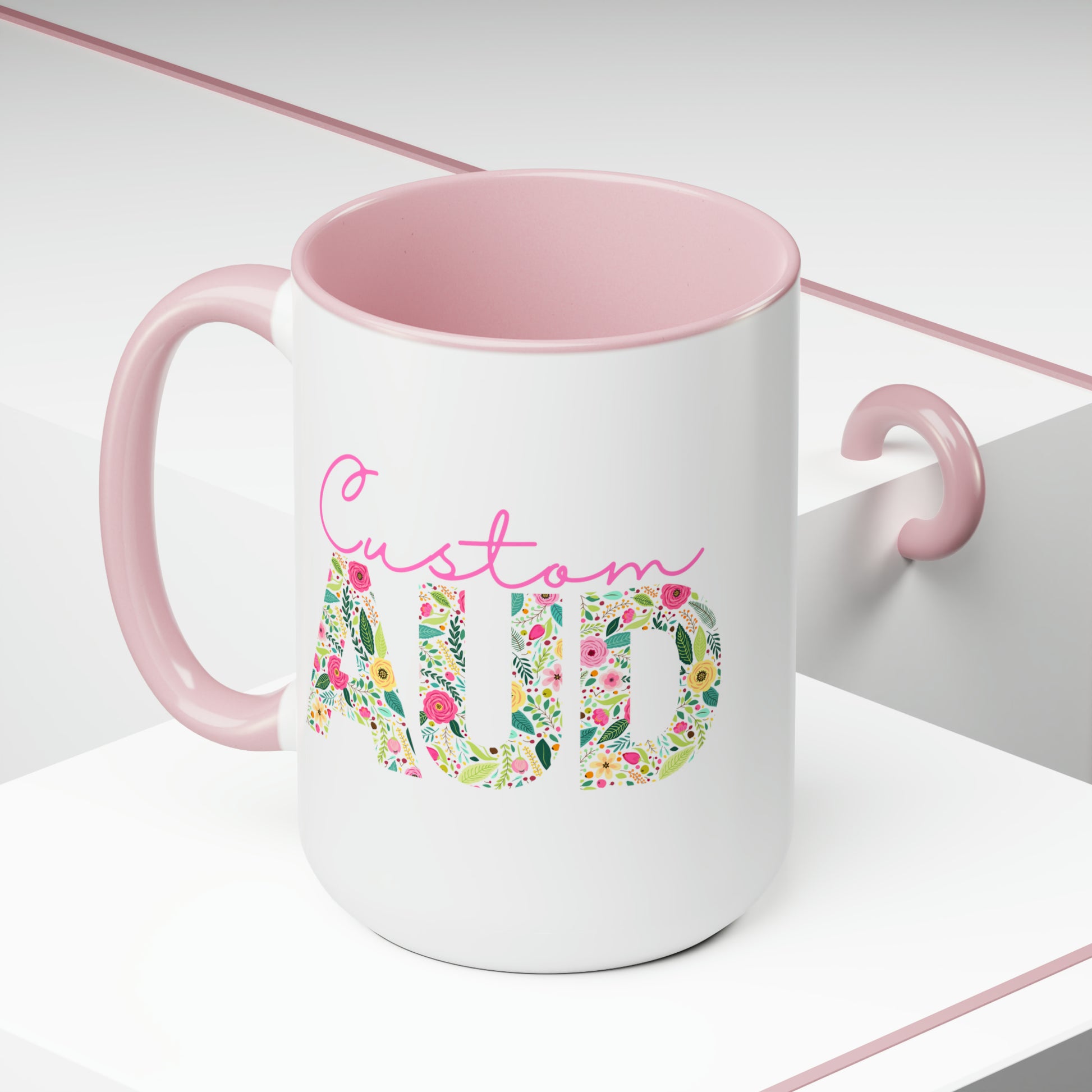 Custom Name Floral AUD Two-Tone Mug Gift, 15 oz.