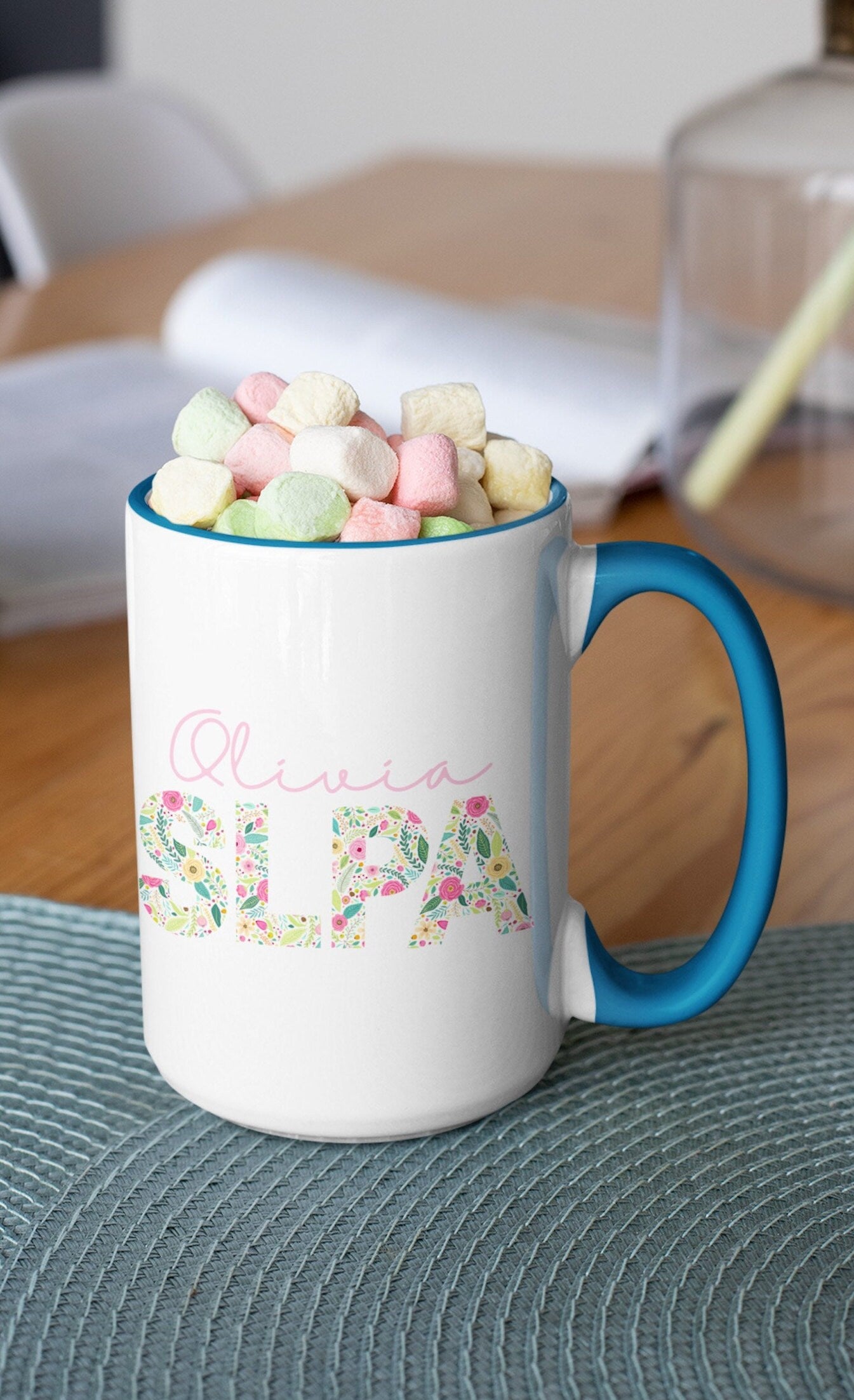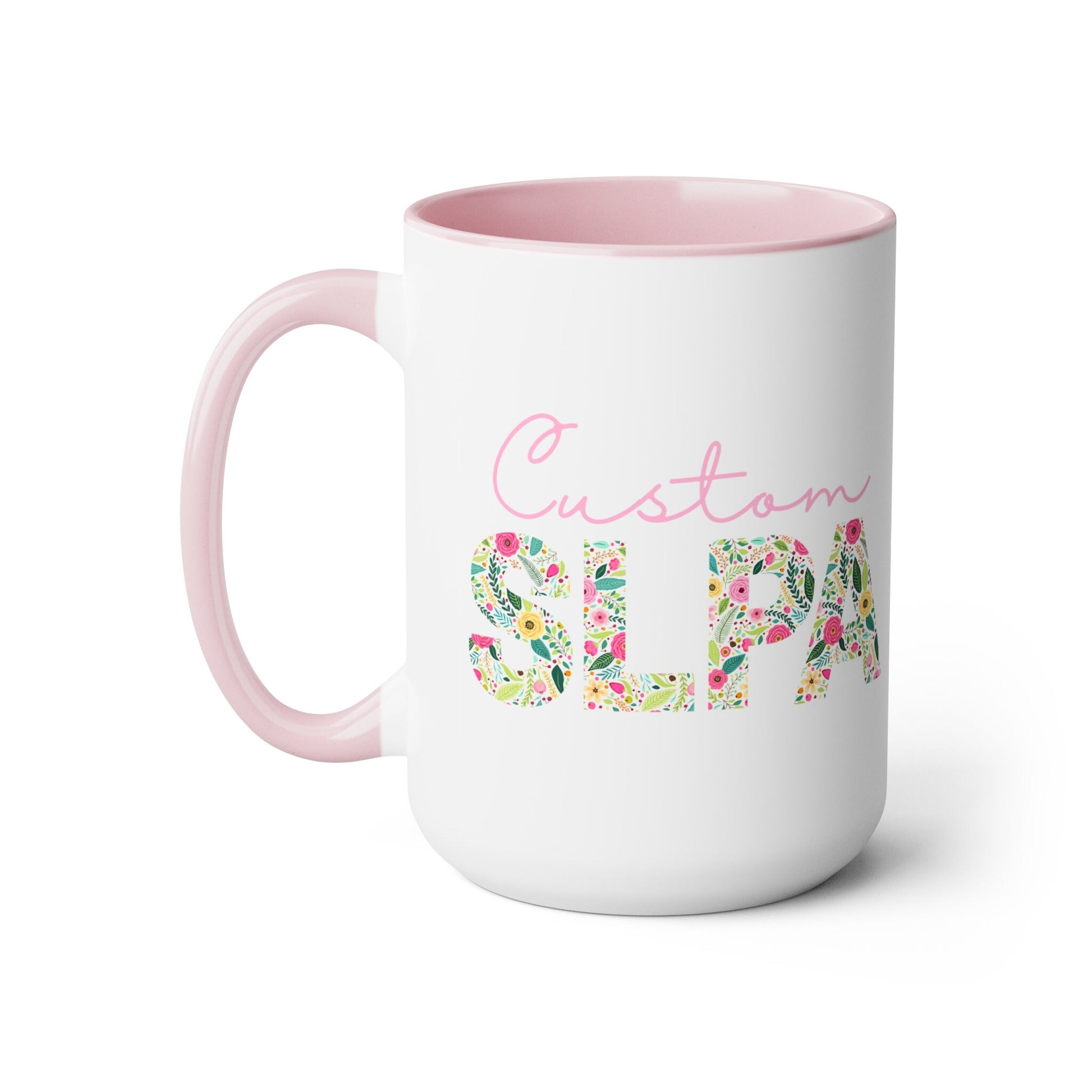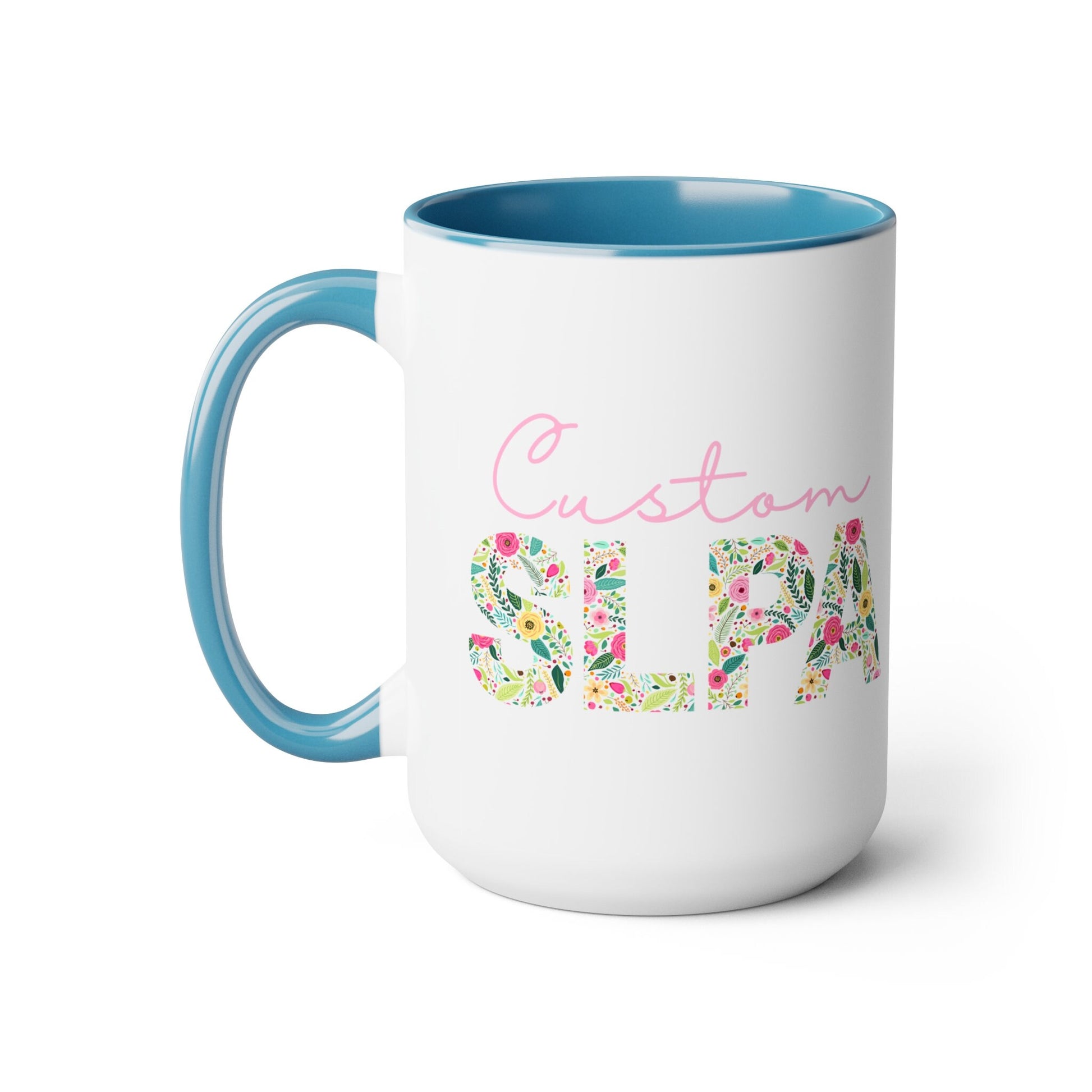 Your favorite SLPA can start their morning off right with this adorable floral two-tone "SLPA" coffee mug customized with their name. This is the perfect gift for the hard-working SLPA, graduating SLPA student, or speech-language pathology assistant supervisor!