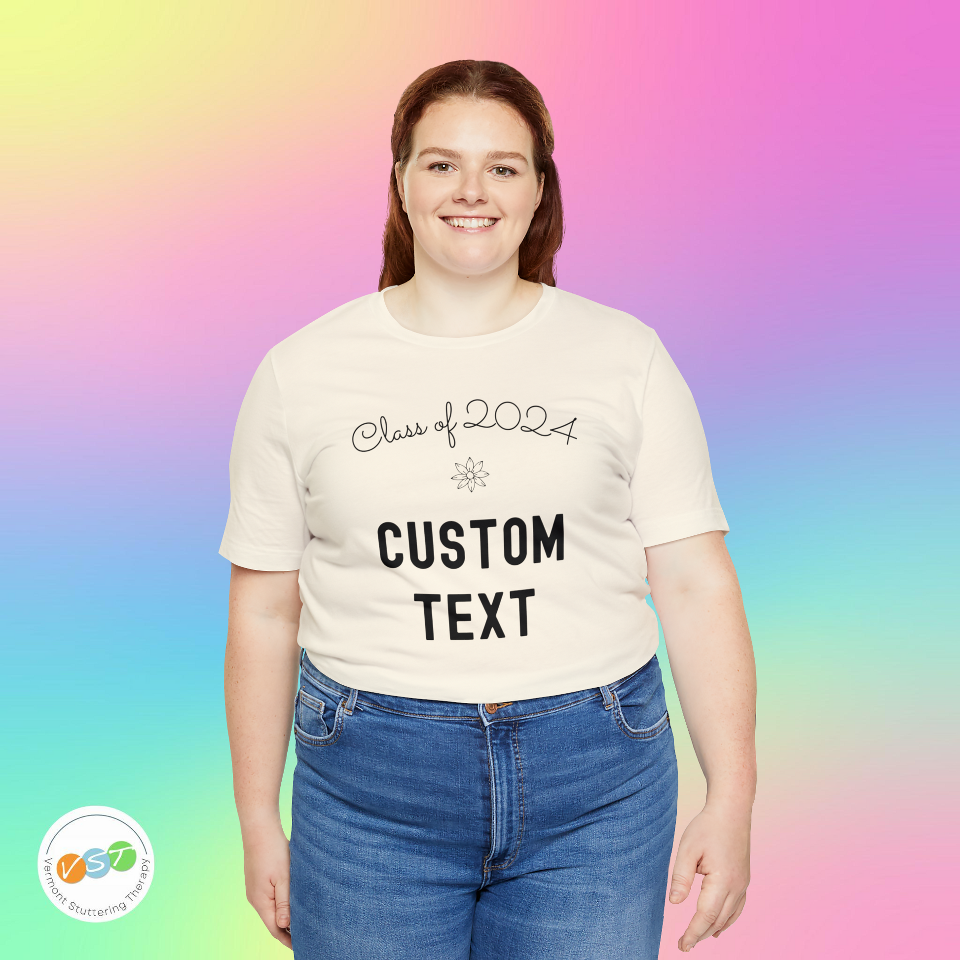 *If you are doing a bulk order and prefer to email us the list, you can send to: info@vermontstutteringtherapy.com. That way, you can just order the number of shirts you want, and we can customize for you on the back end.