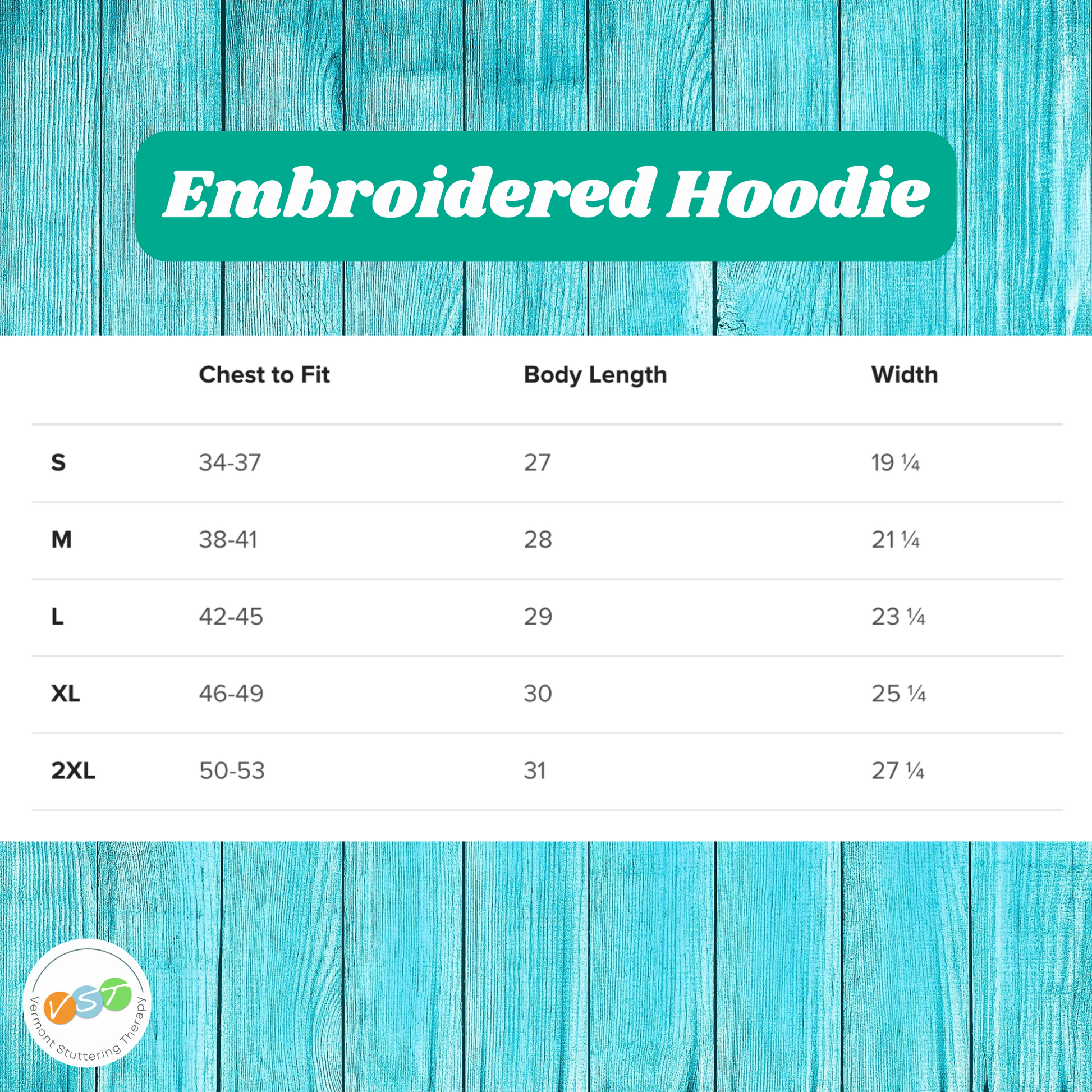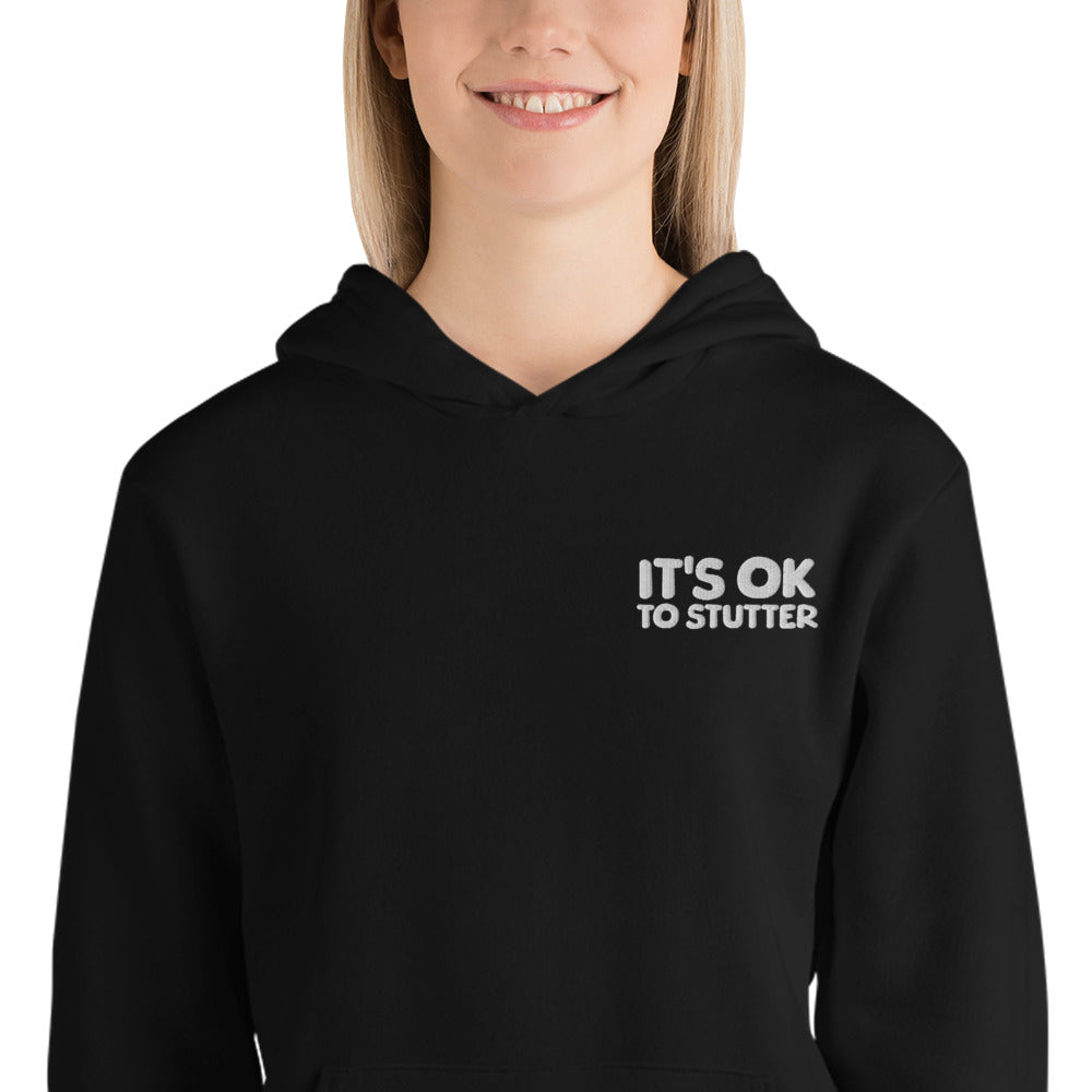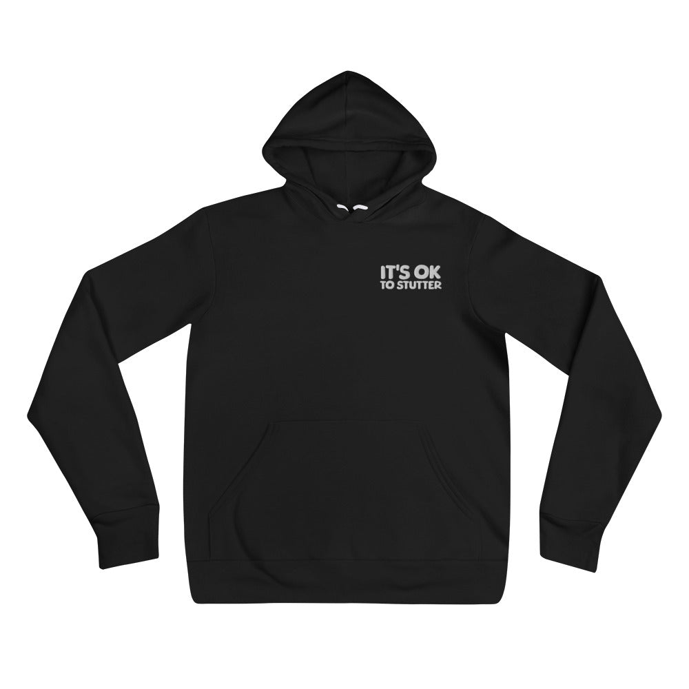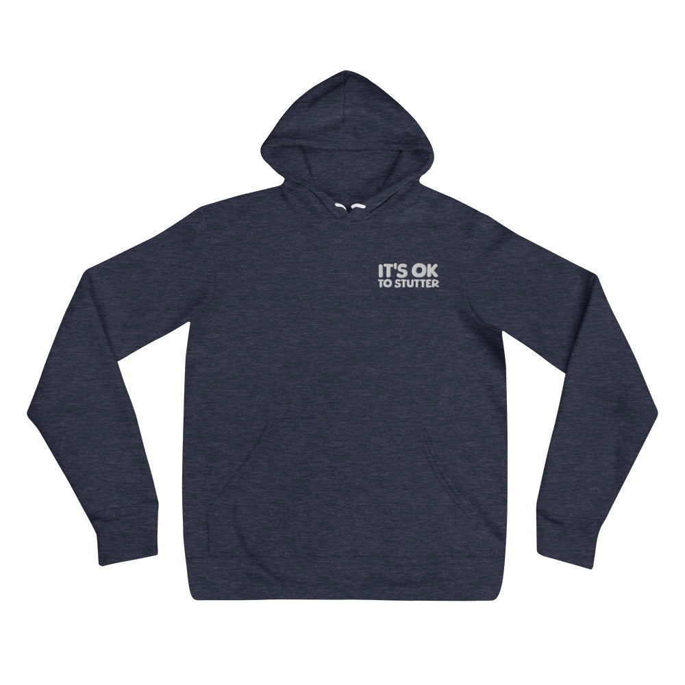 This cozy hoodie with "It's OK to Stutter" embroidered on the left chest is a soft and comfy way to spread love to Team Stuttering, as an ally or person who stutters.
