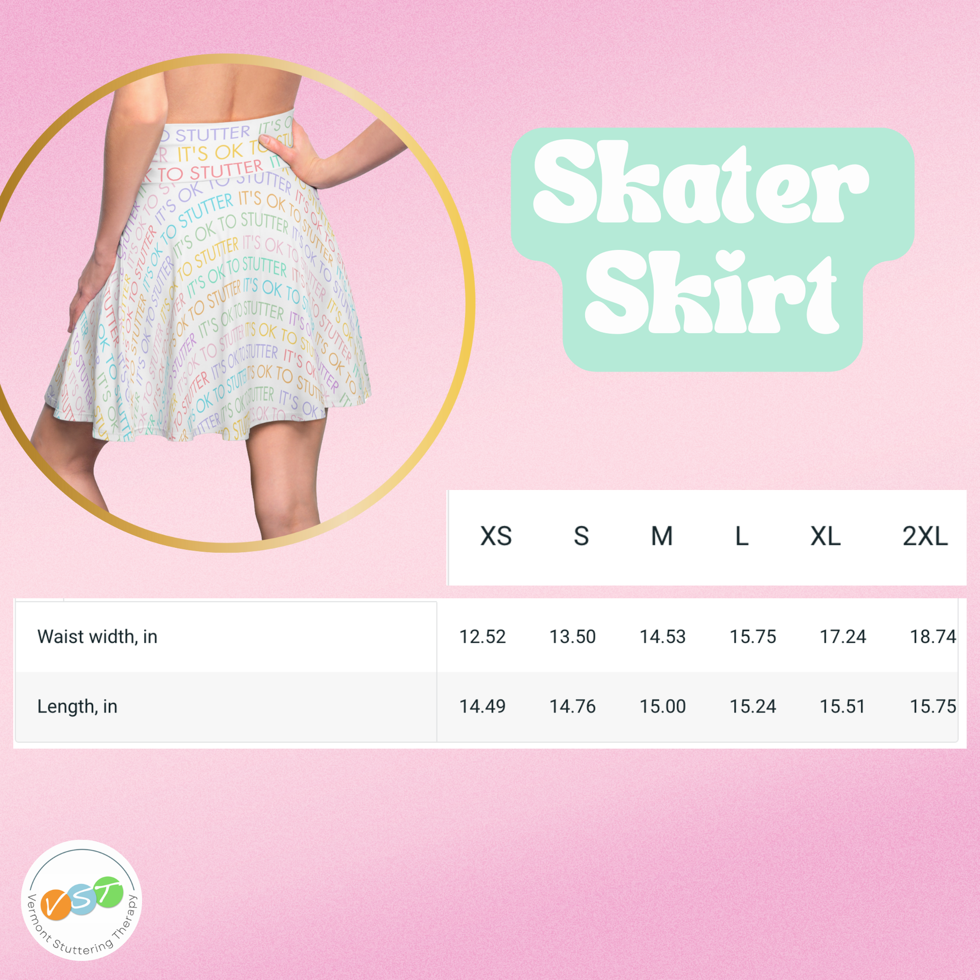 This allover print It's OK to Stutter skater skirt would be the perfect outfit for a person who stutters or stuttering ally at the National Stuttering Association (NSA) Conference this July. It will tell everyone that you know that stuttering is ok, which is one more baby step to Normalizing Stuttering.