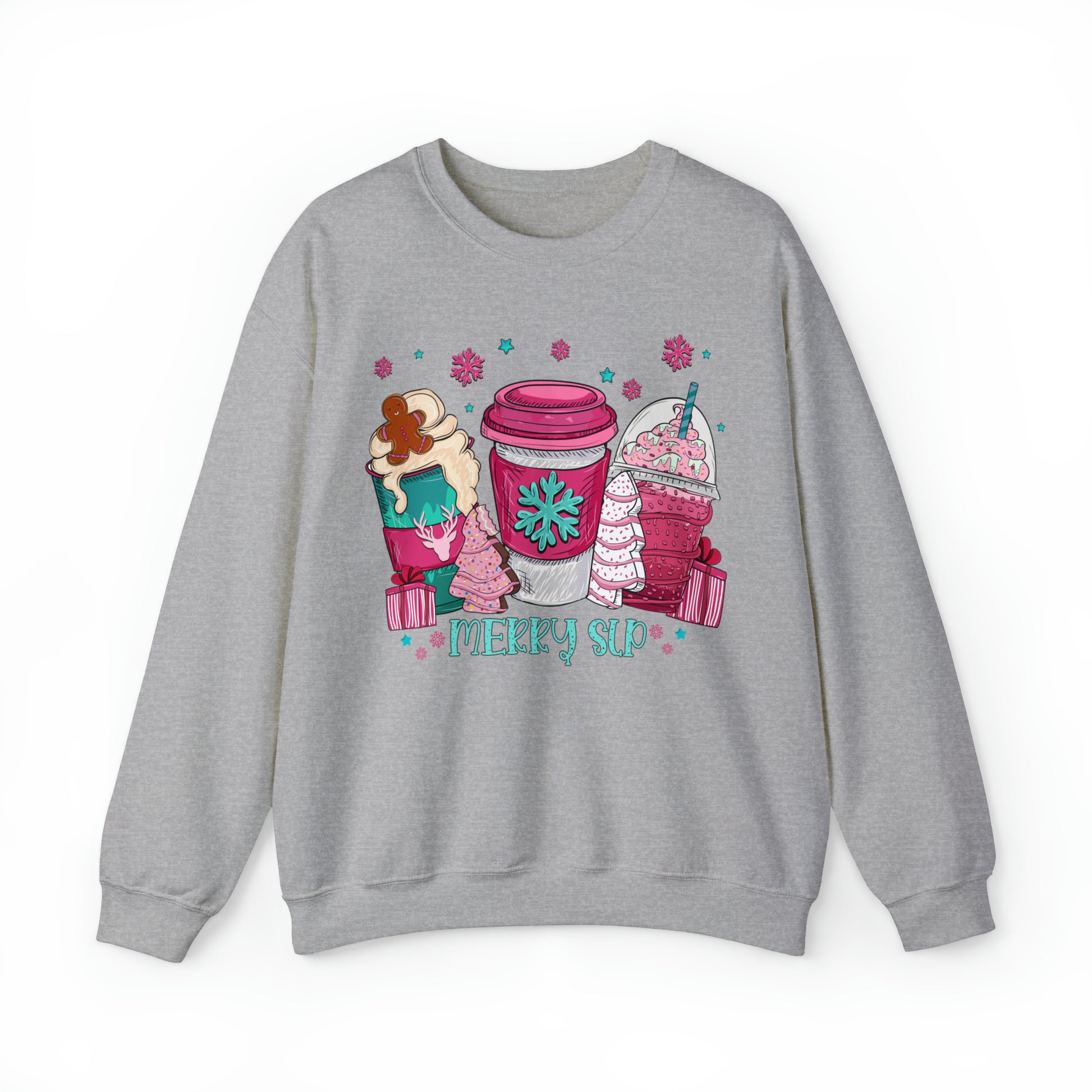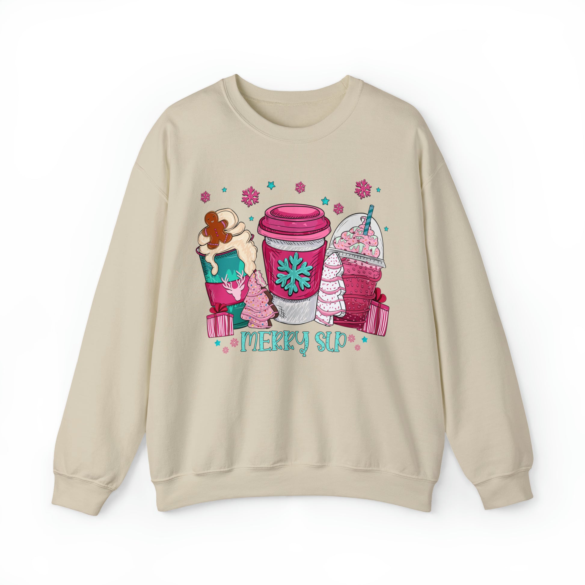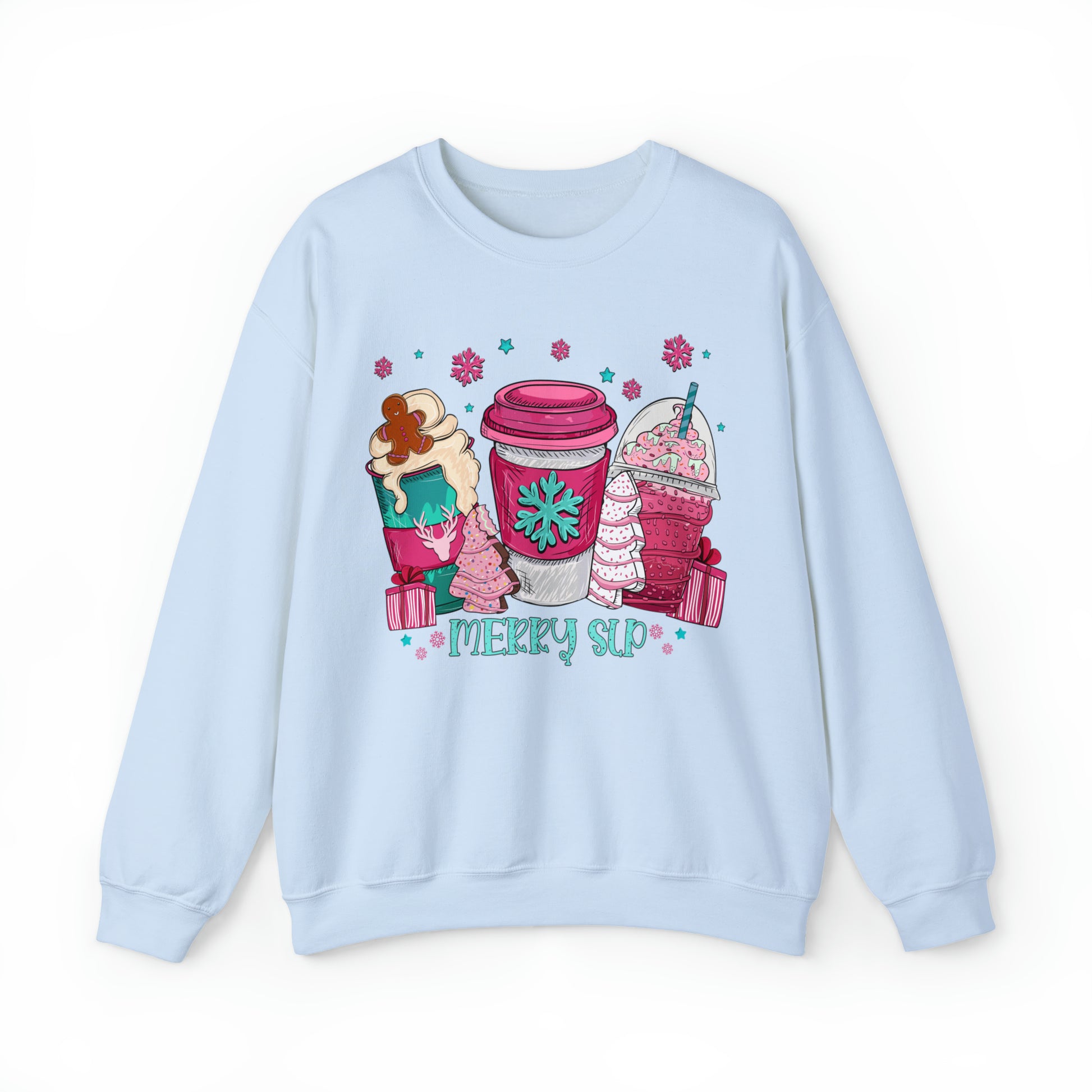 Merry SLP Pink and Blue Coffee Cup Christmas Sweatshirt