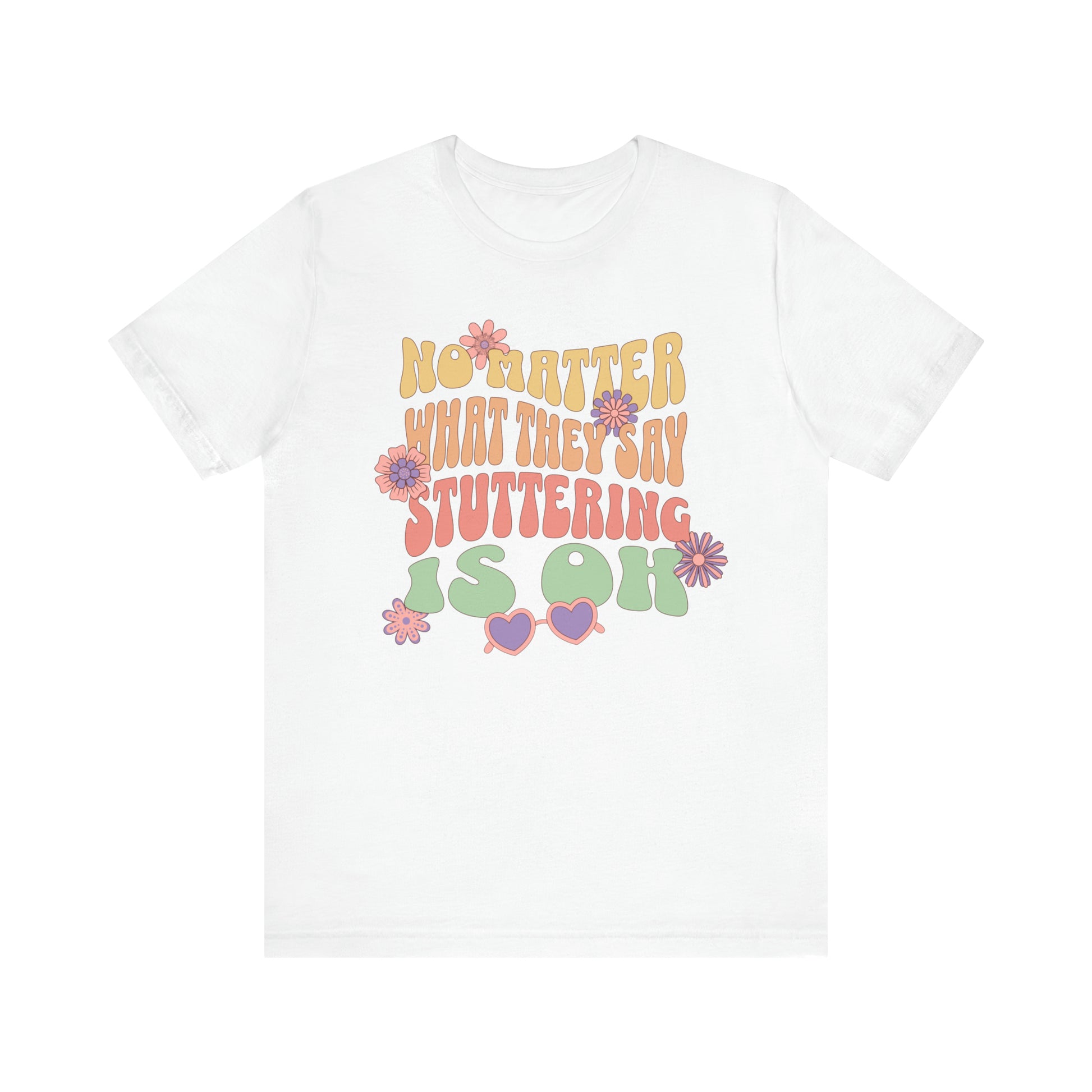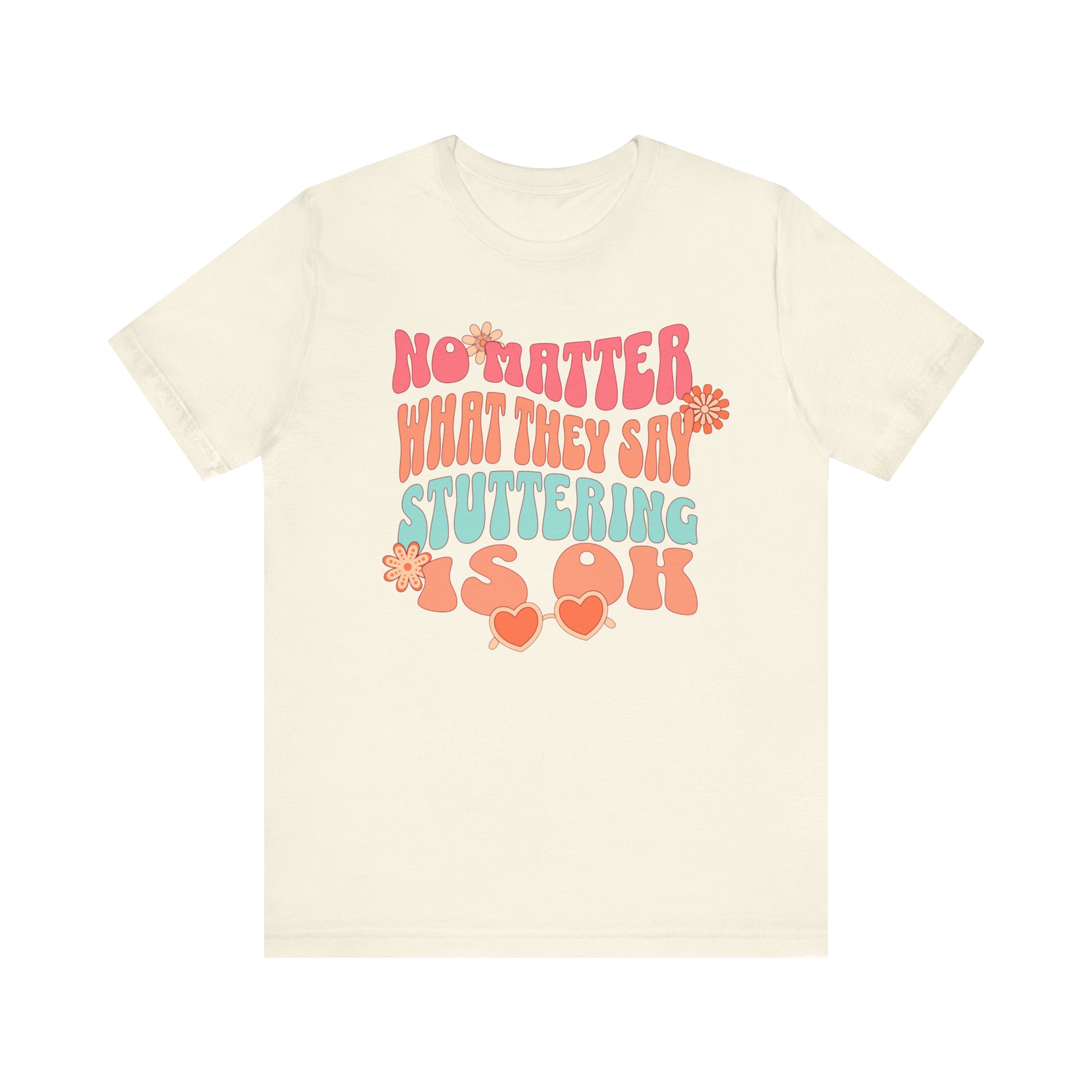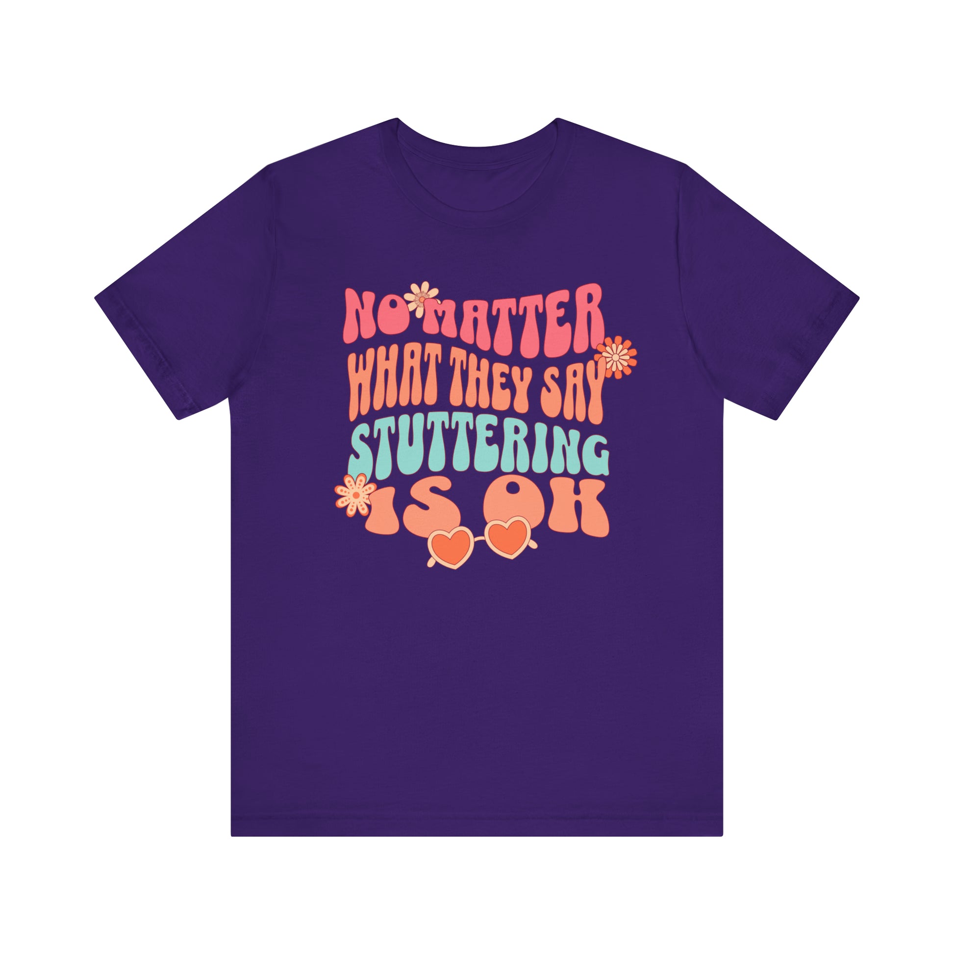 ✨This unisex "No Matter What They Say, Stuttering is OK" stuttering support t-shirt is an ideal gift for a person who stutters or stuttering ally as part of the Normalize Stuttering m