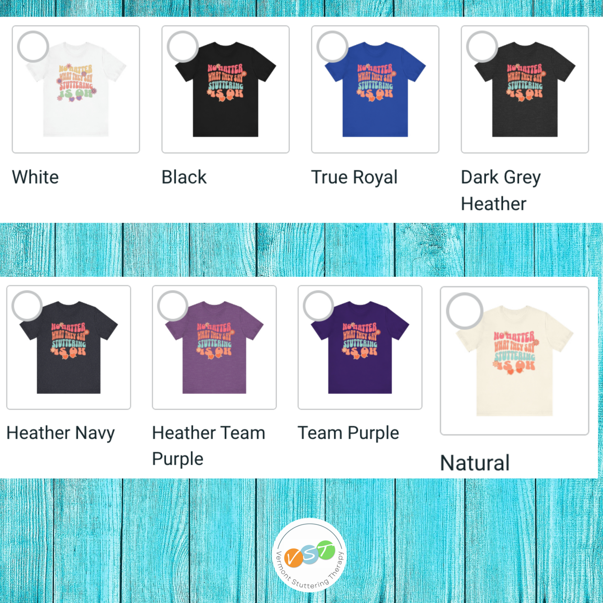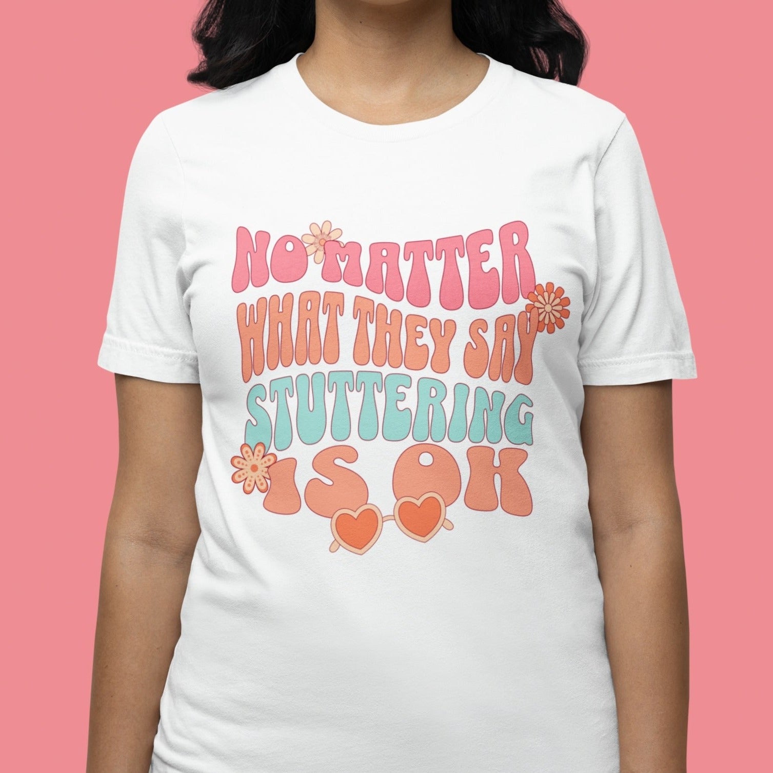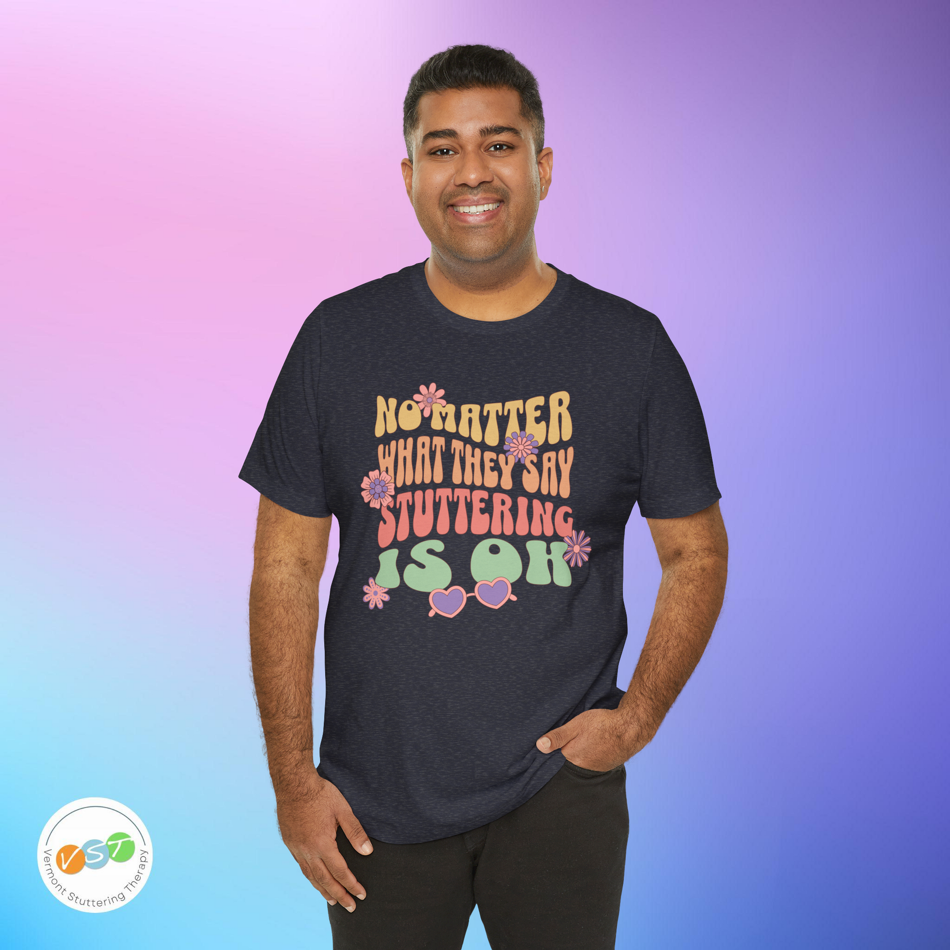 ✨This unisex "No Matter What They Say, Stuttering is OK" stuttering support t-shirt is an ideal gift for a person who stutters or stuttering ally as part of the Normalize Stuttering m
