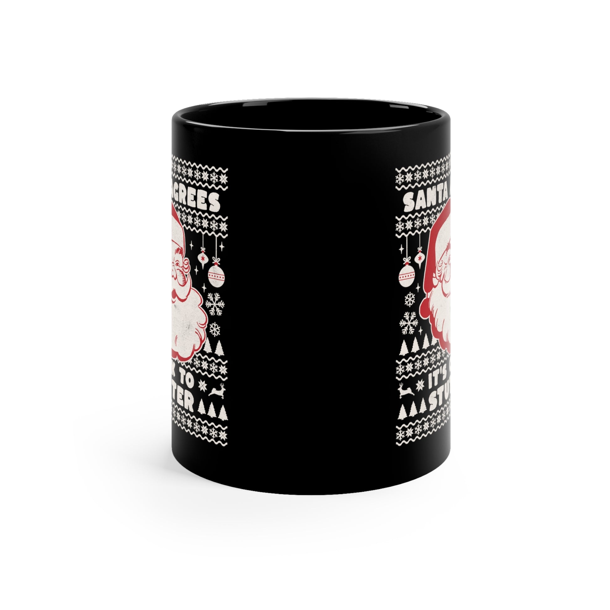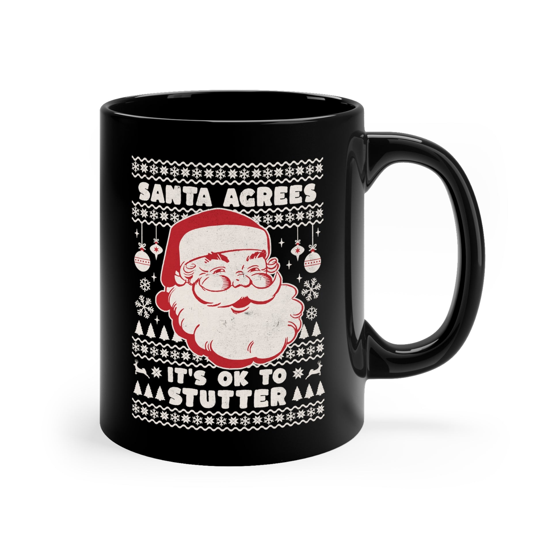 Your favorite person who stutters can warm their soul with a nice cup of Christmas cocoa, eggnog, or coffee out of this cheeky "Santa Agrees that It's OK to Stutter" 11 oz black ceramic mug!