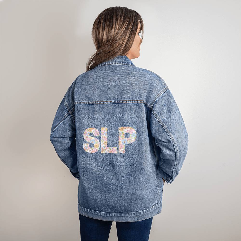 SLP Floral Oversized Jean Jacket for Speech-Language Pathologist