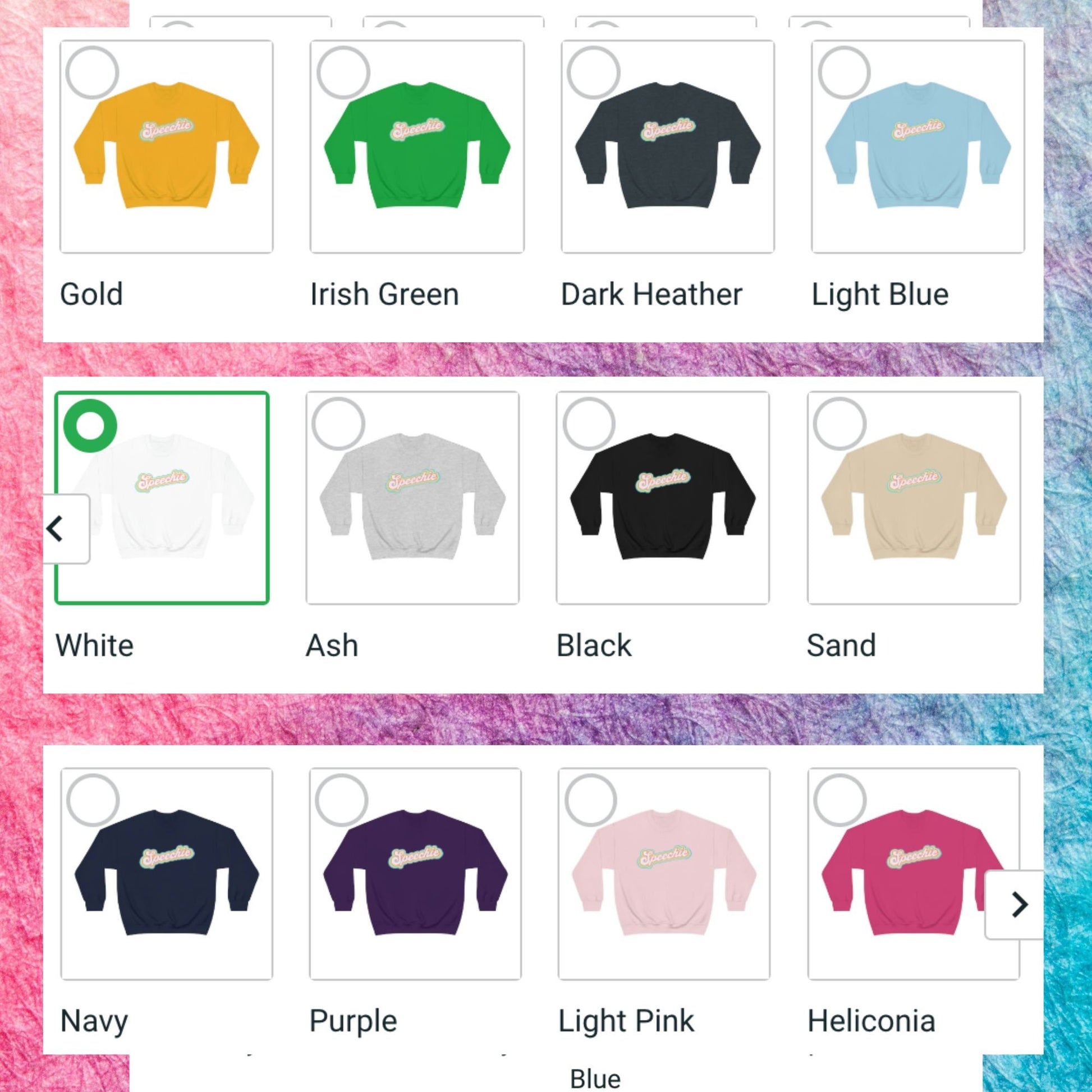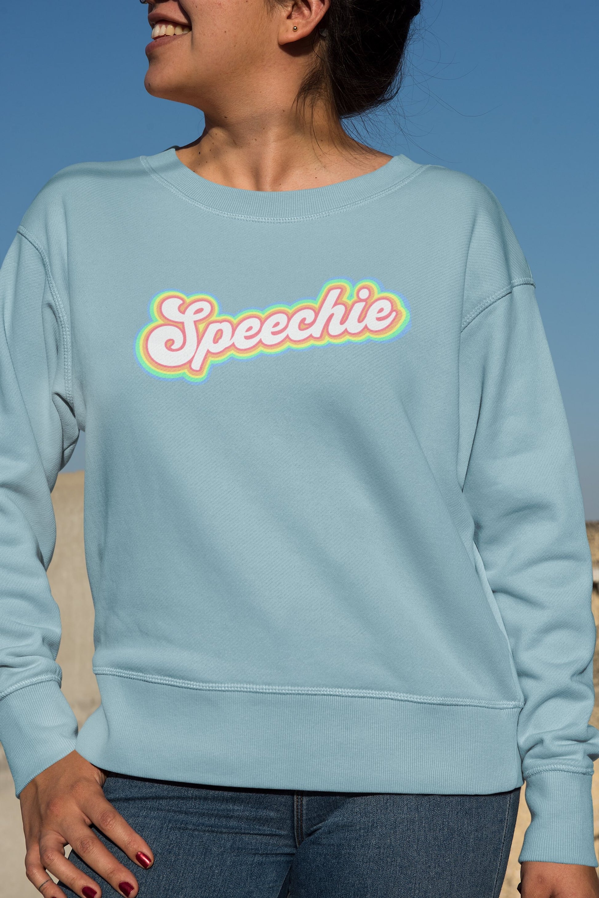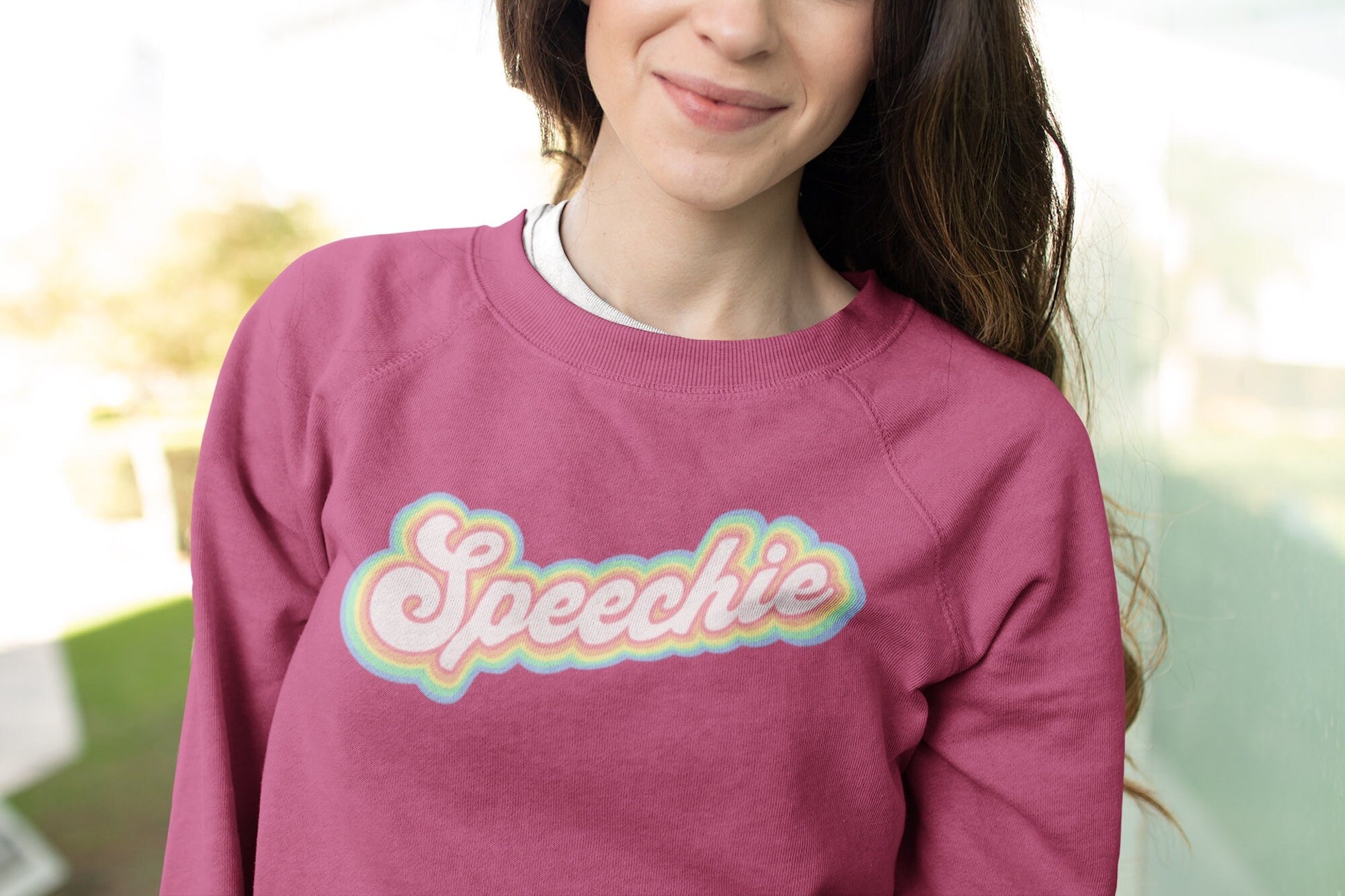 ✨This “Speechie” Gildan 18000 unisex pastel retro font sweatshirt is an ideal gift for a speech-language pathologist (SLP) or SLP-to-be grad student.