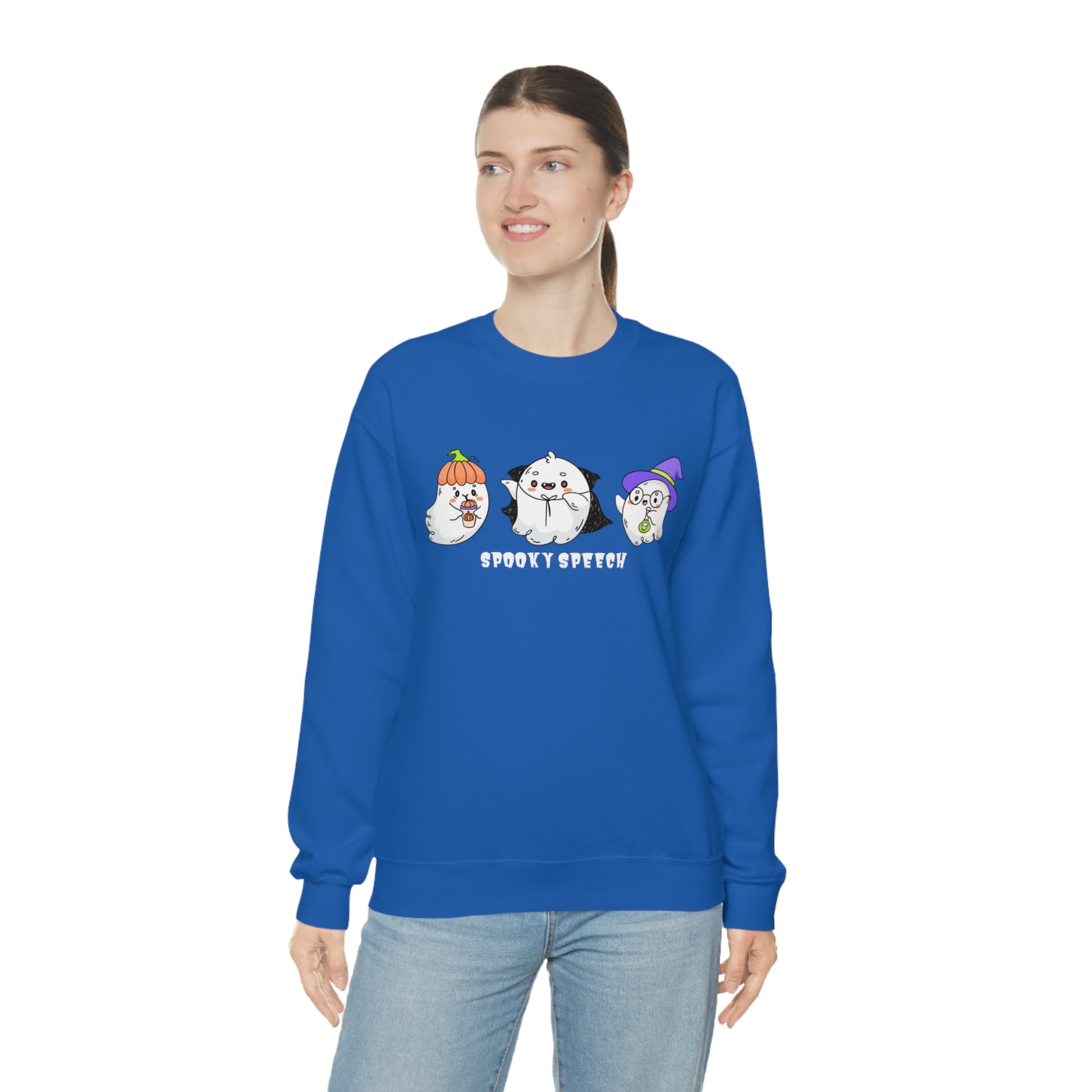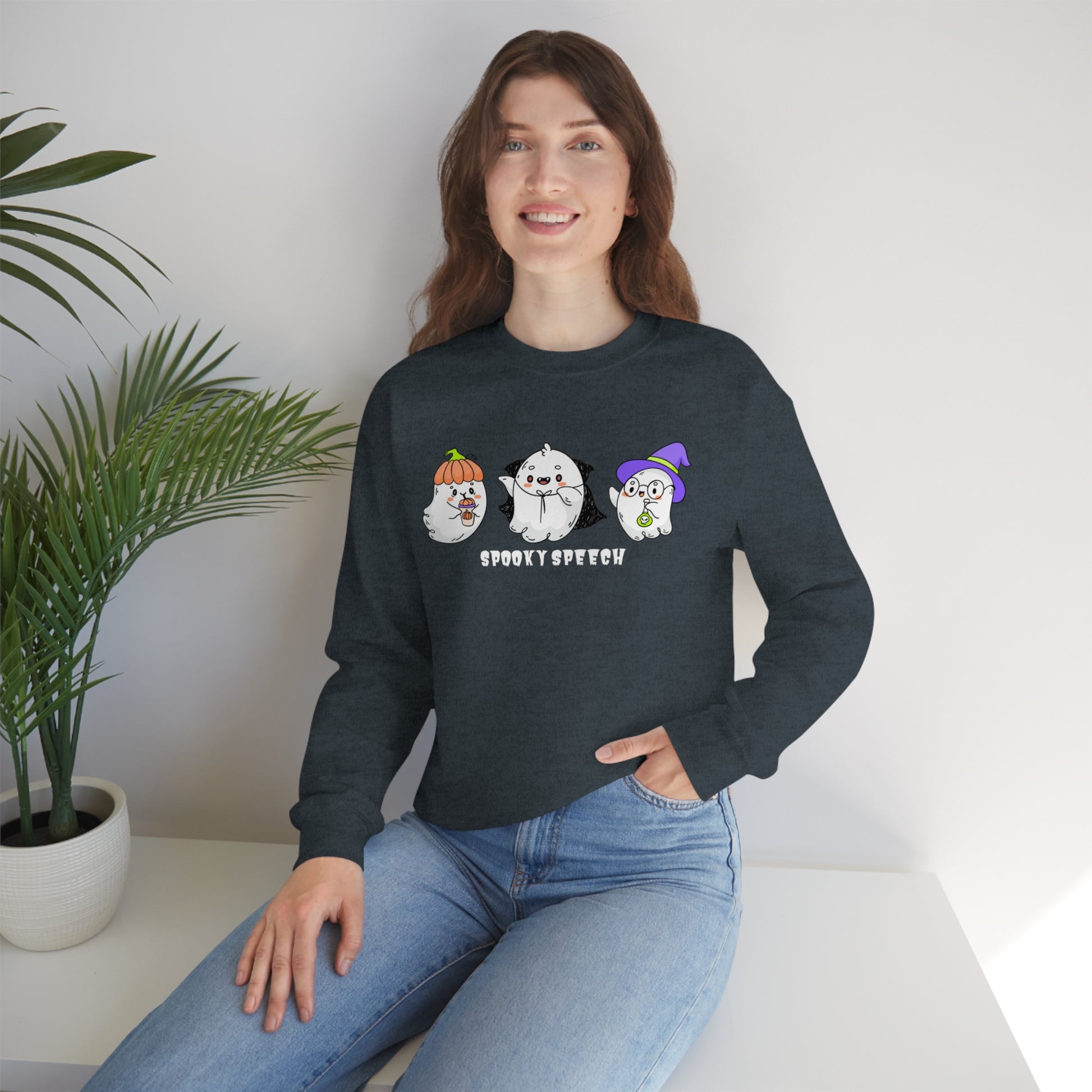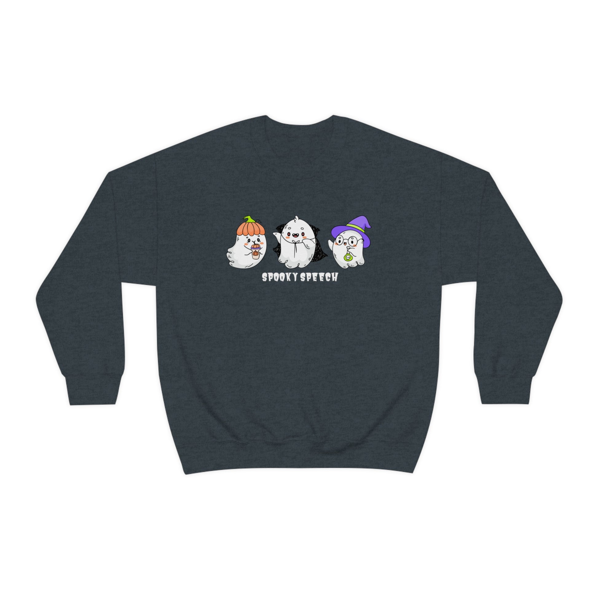 ✨This "Spooky Speech" cute ghosts Halloween sweatshirt is a perfect gift for your favorite SLP or SLPA for Halloween. It's a great way to celebrate the spooky season while working hard as a speech-language pathologist (SLP), speech-language pathology assistant (SLPA), or SLP / SLPA grad student.