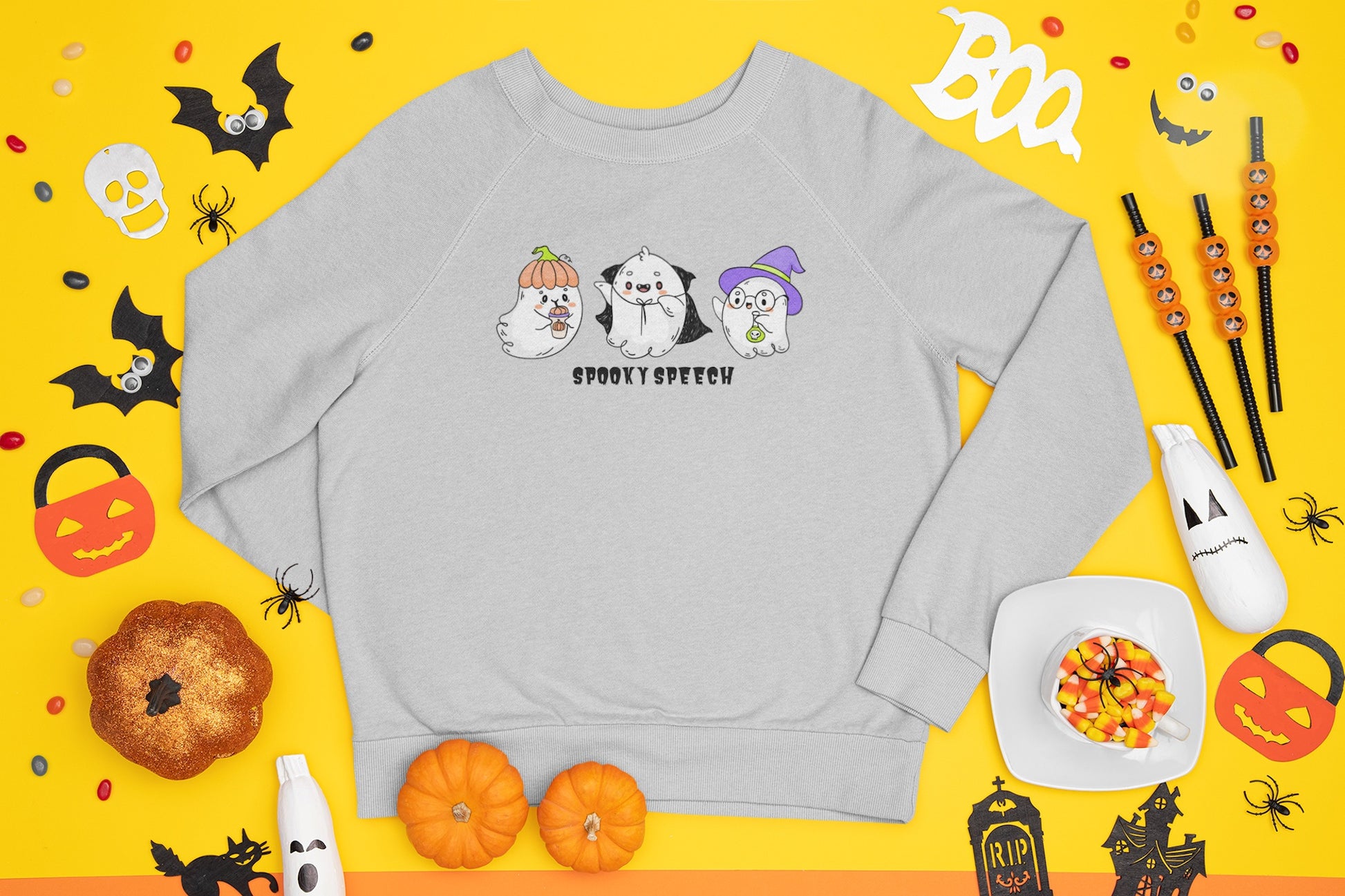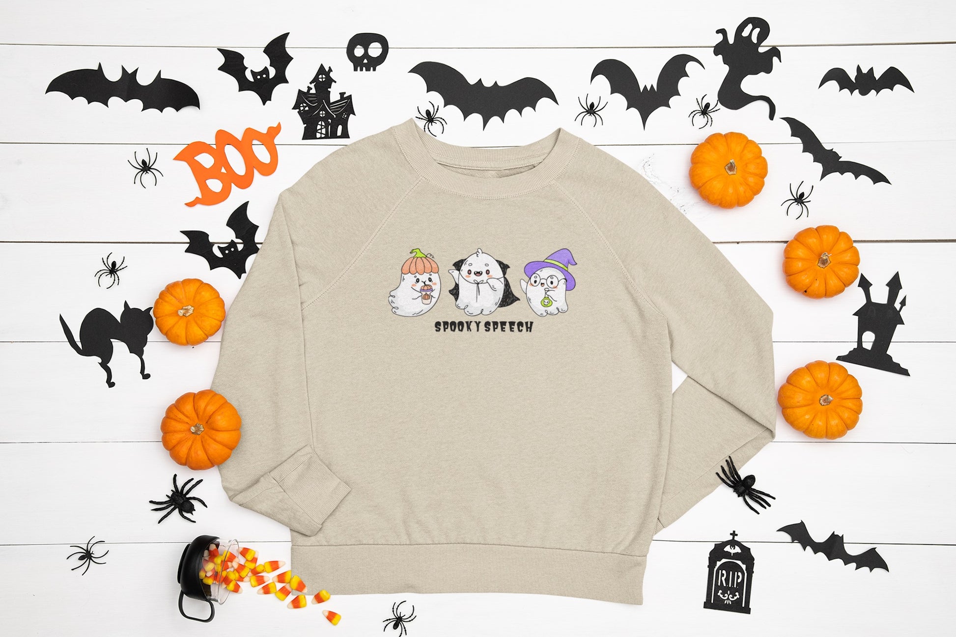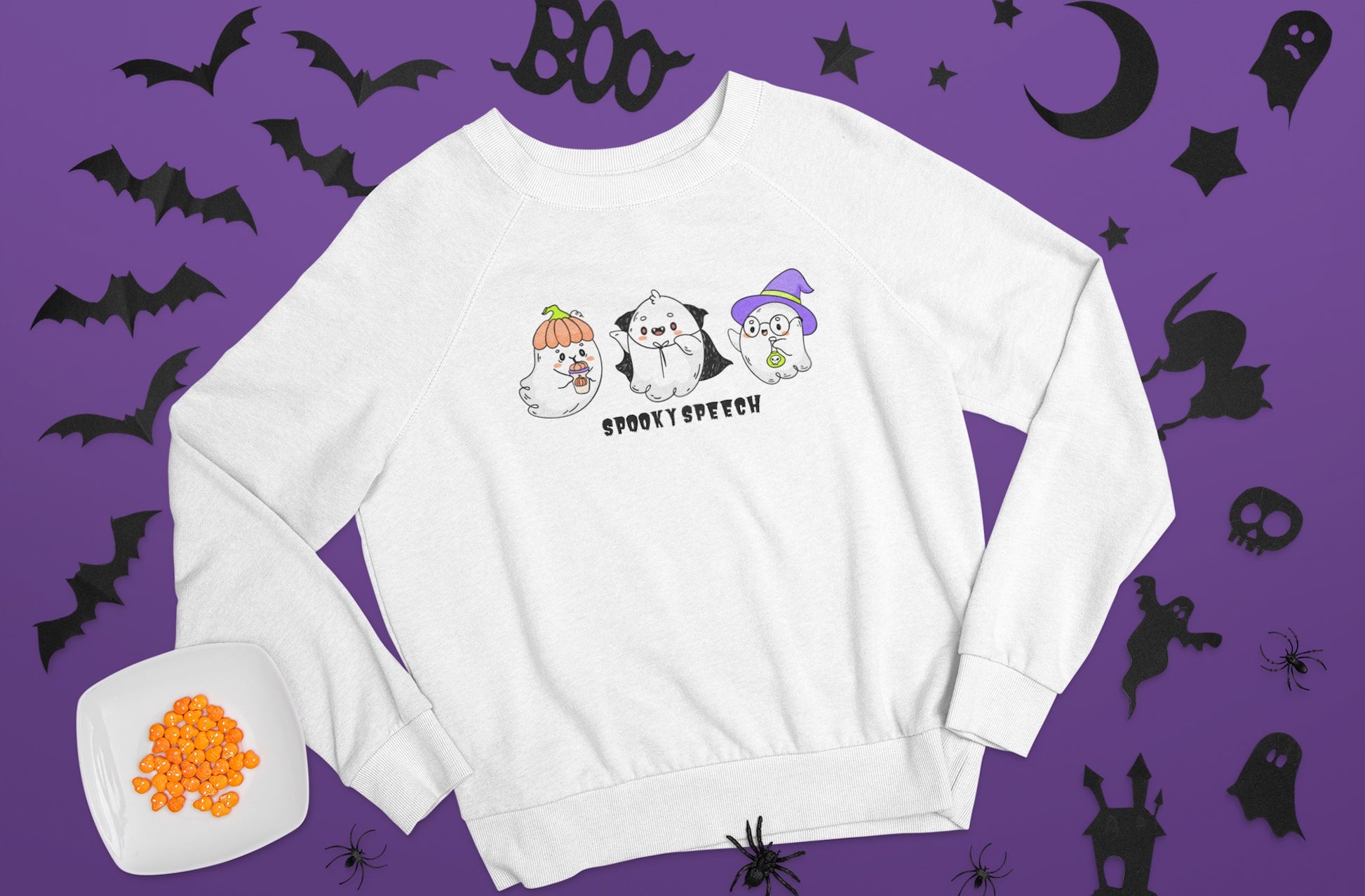 Spooky Speech Cute Ghosts Halloween Sweatshirt for SLP or SLPA