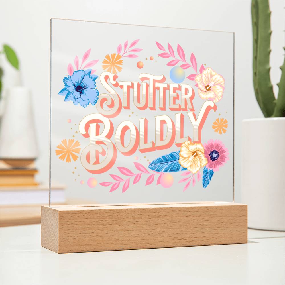 Stutter Boldly Floral Gift for Person Who Stutters - Square Acrylic Plaque Light