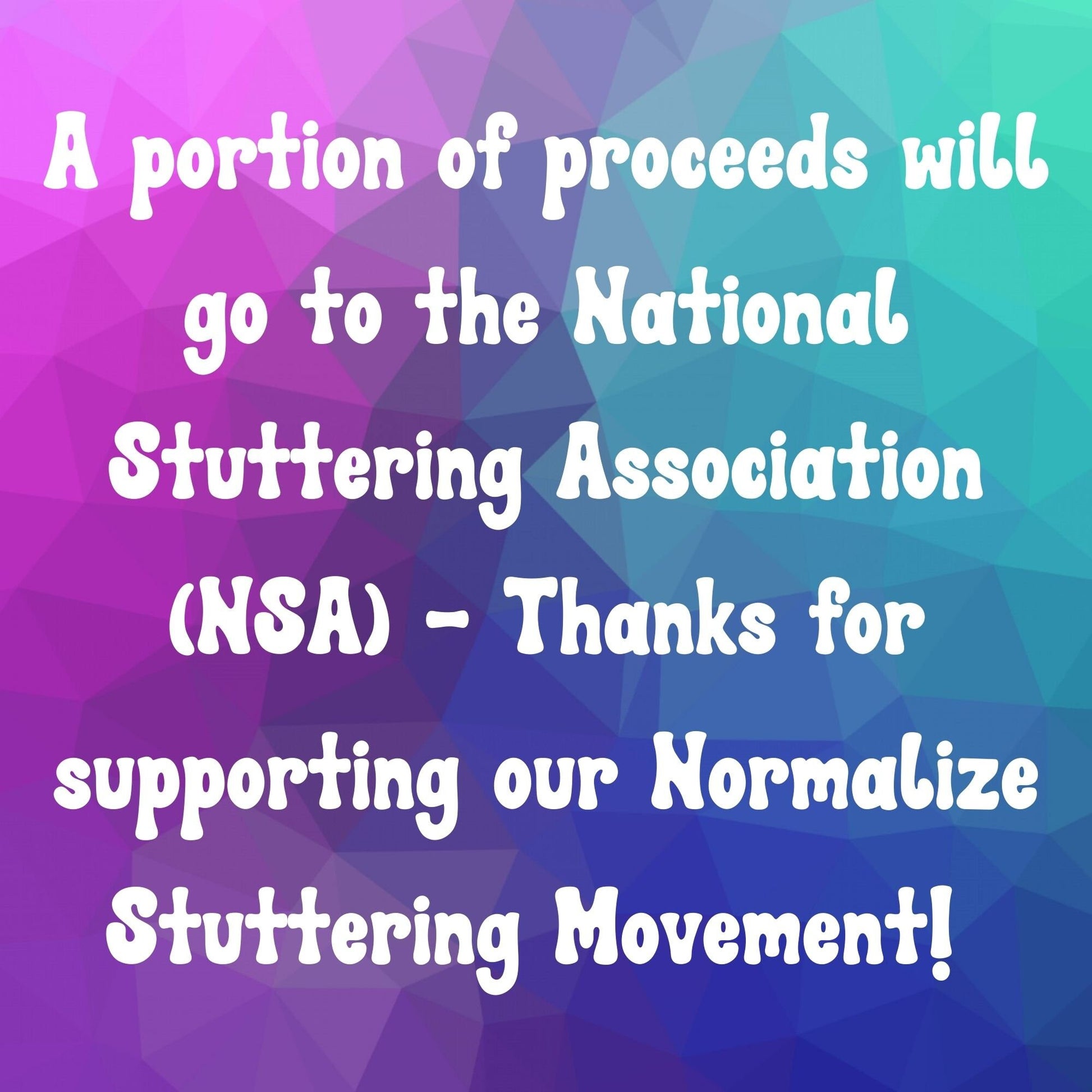 A portion of proceeds will go to the National Stuttering Association (NSA) support groups - thanks for supporting the Normalize Stuttering movement!