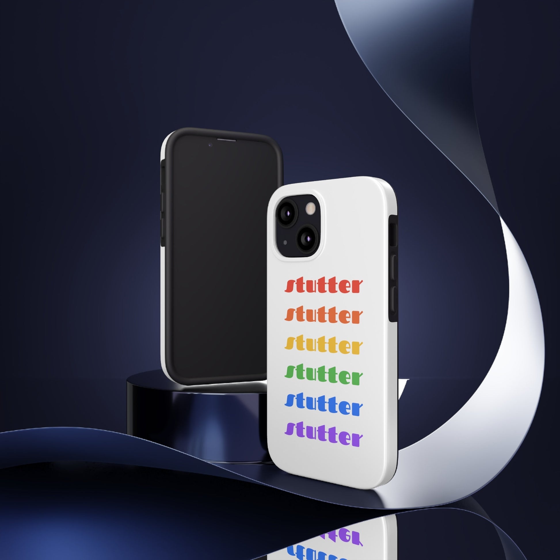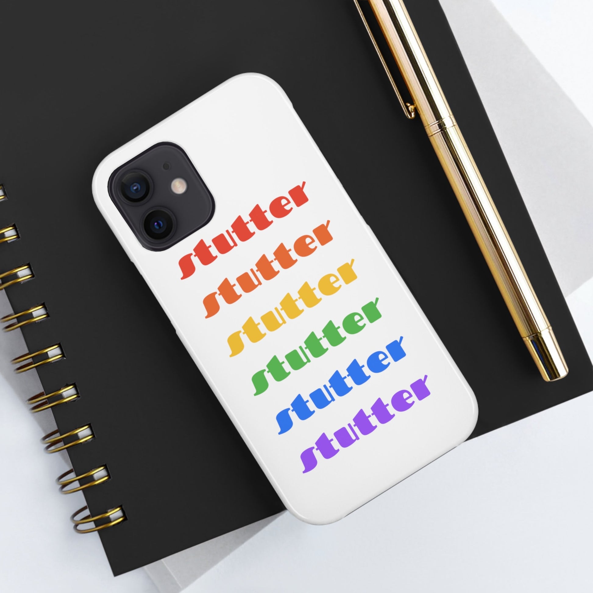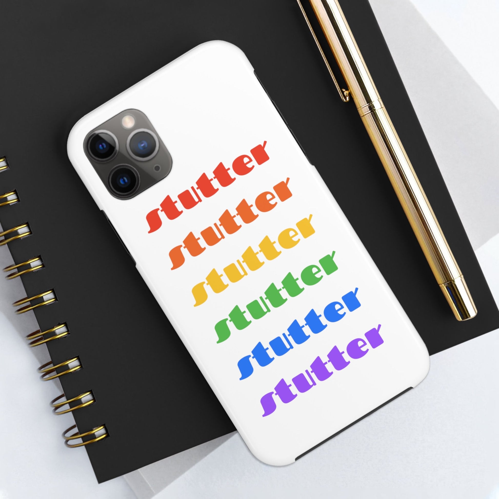 ✨This tough but lightweight Stutter Pride rainbow text phone case is the perfect gift for the your favorite person who stutters, stuttering allies (SLPs, friends, family), or yourself!