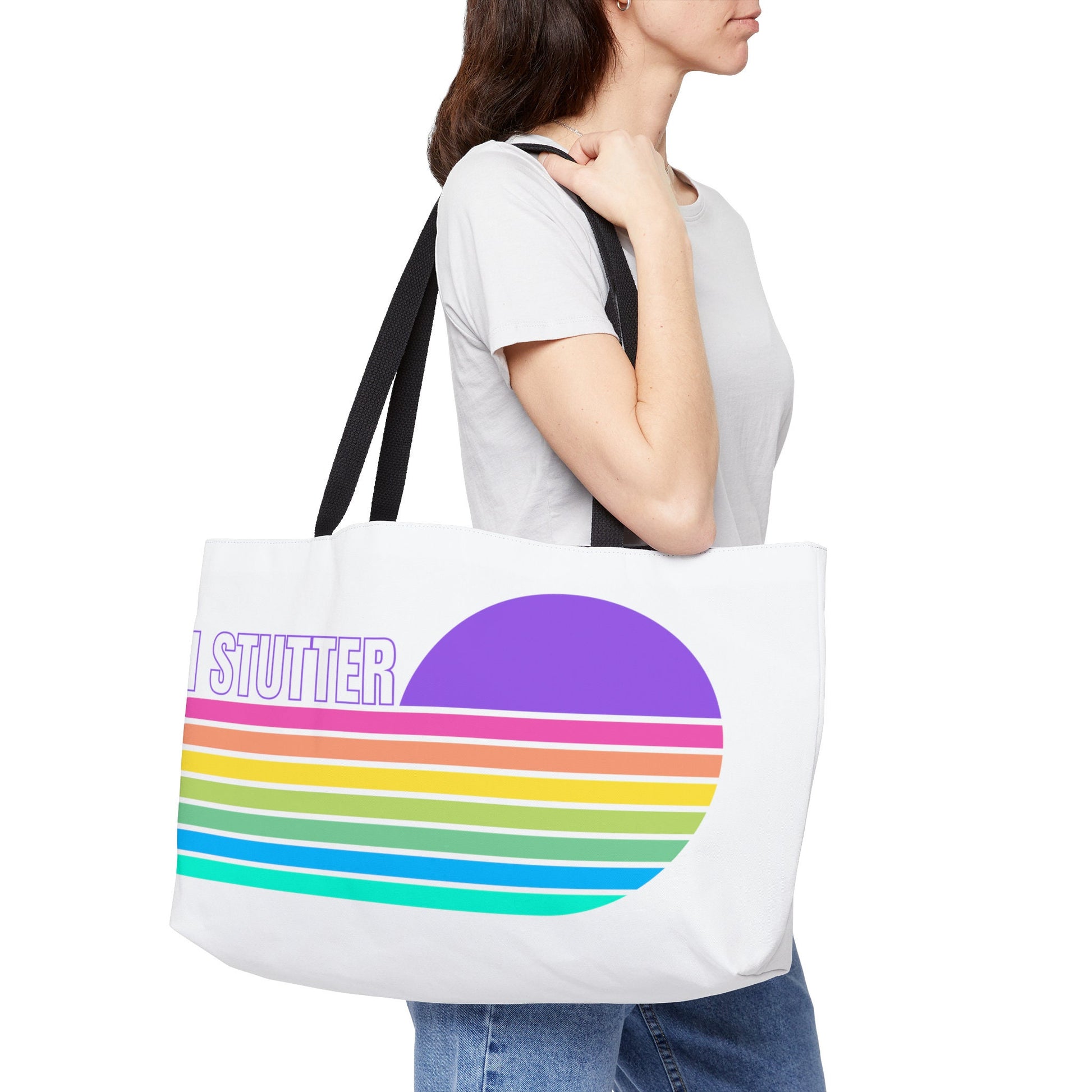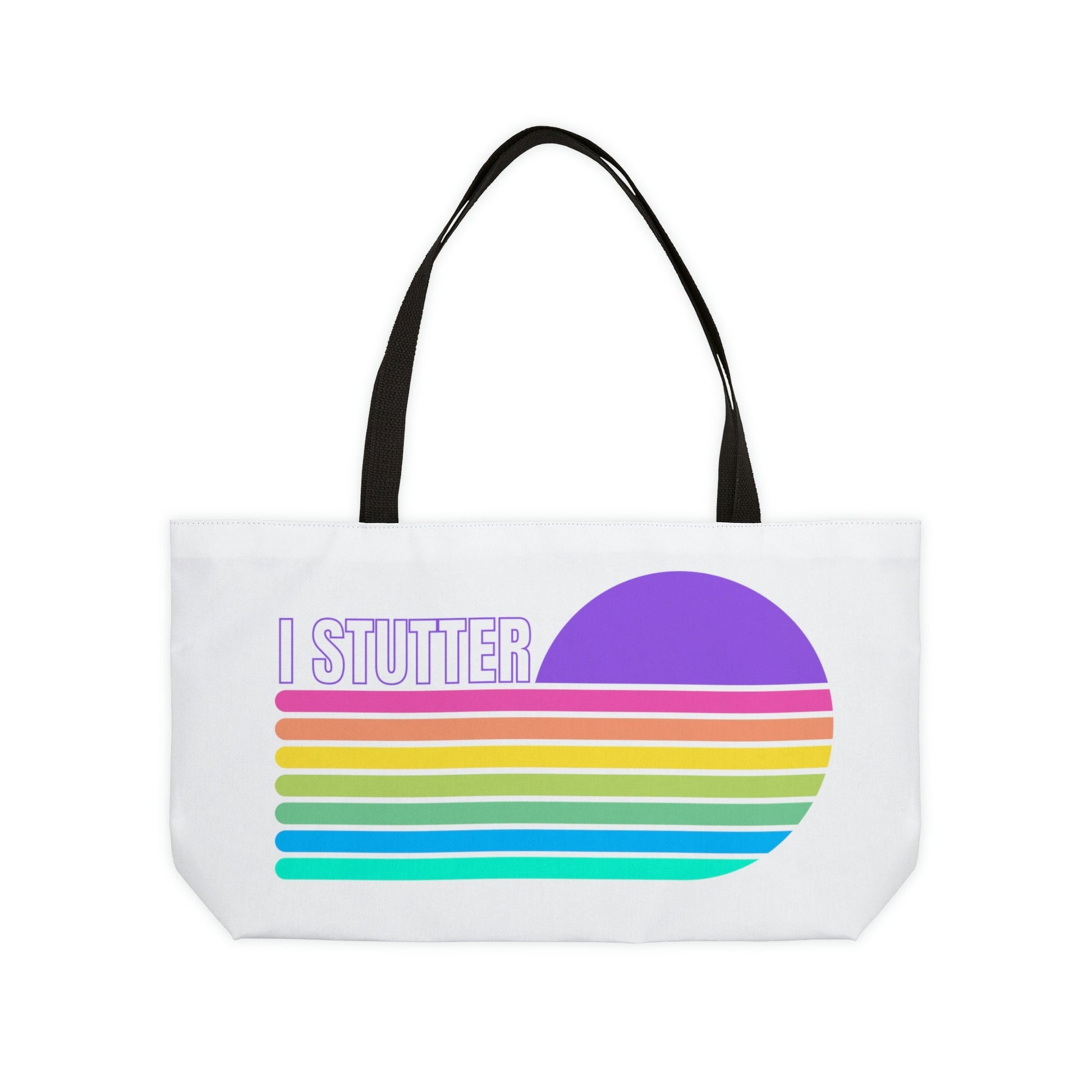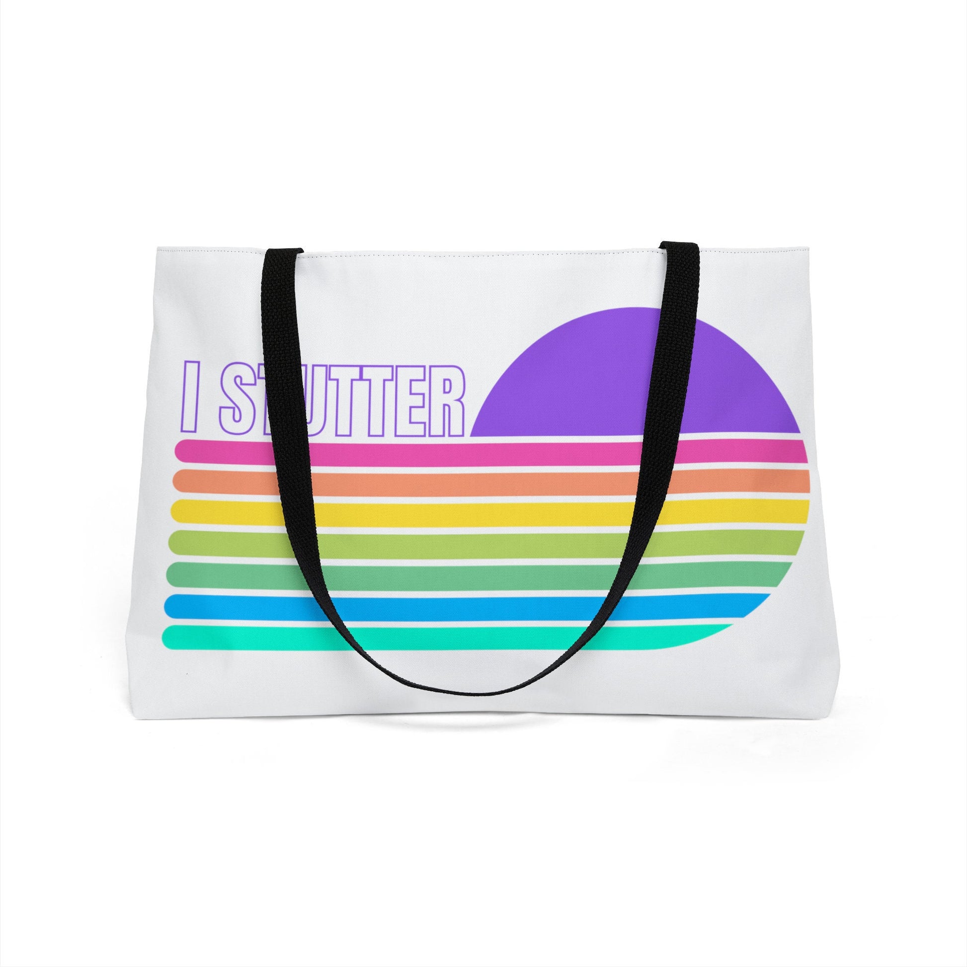 ✨This "I Stutter" retro sun weekender bag is the perfect gift for the person who stutters in your life, or yourself! It will help show support for Team Stuttering with style.