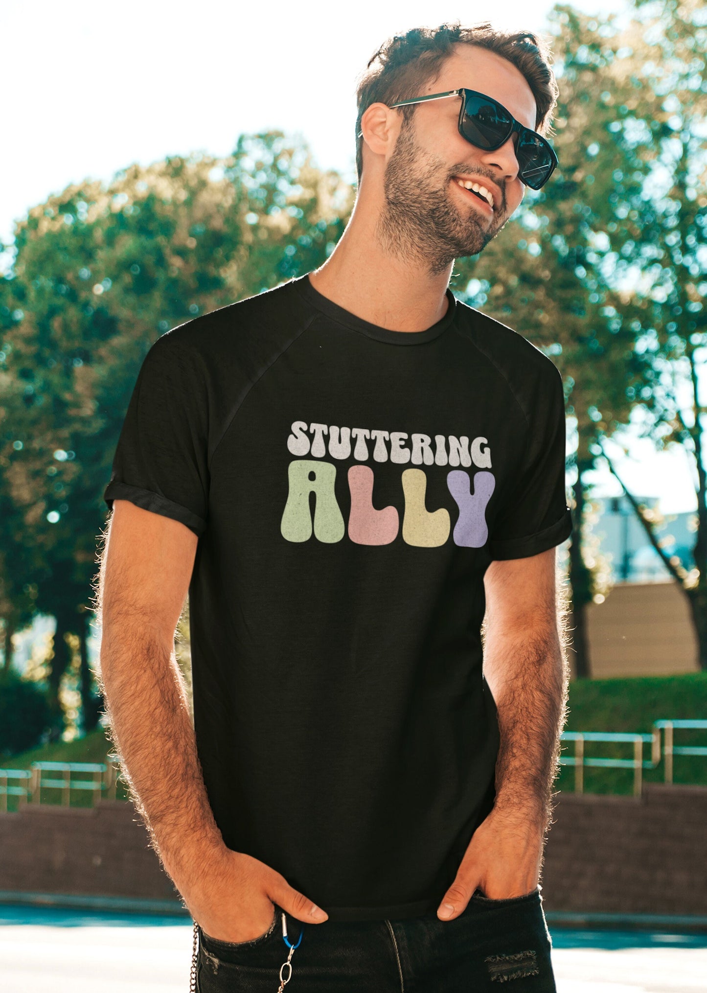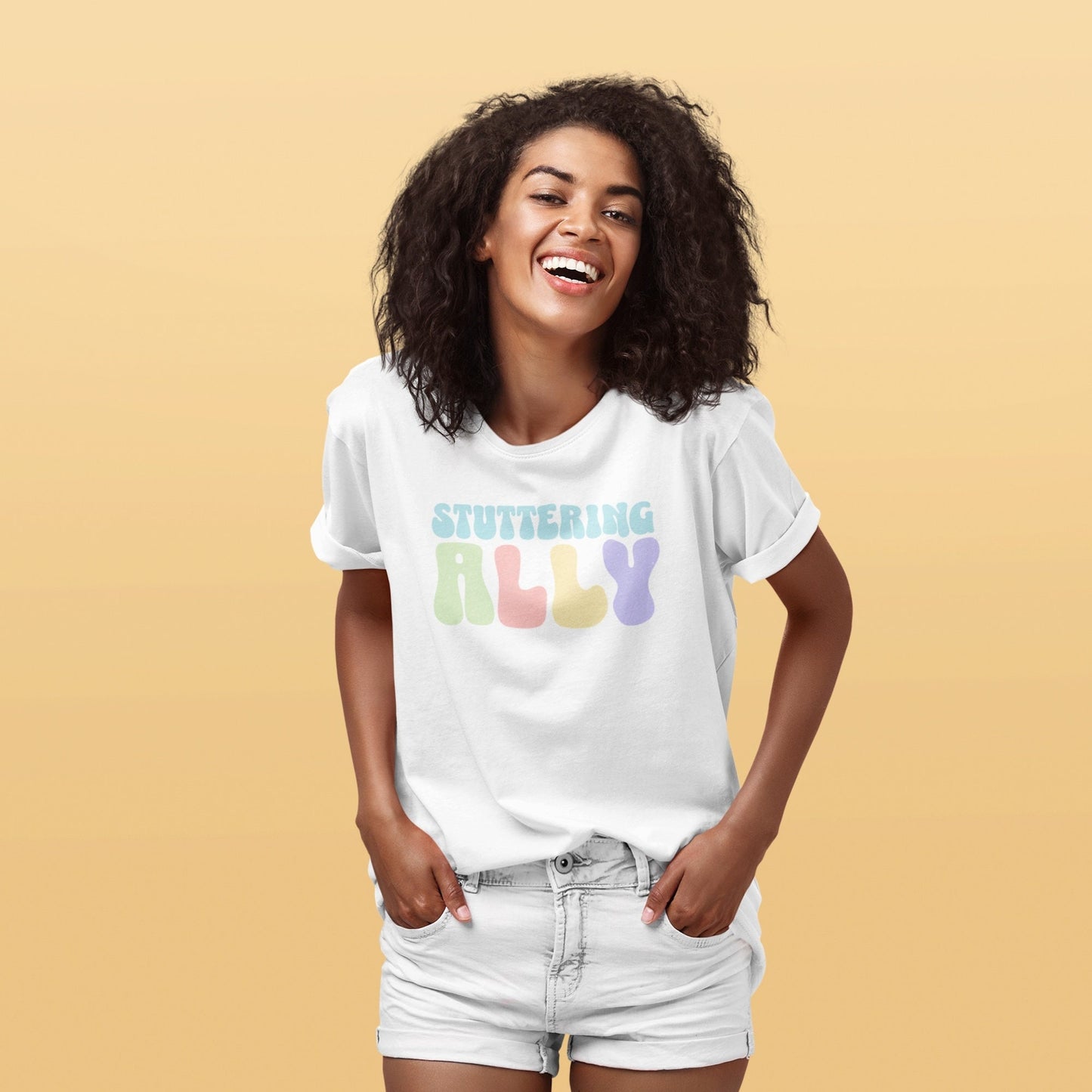 ✨This unisex pastel "Stuttering Ally" retro t-shirt is an ideal gift for allies of people who stutter (speech-language pathologists, family, friends, parents, partners, etc.) as part of the Normalize Stuttering movement.
