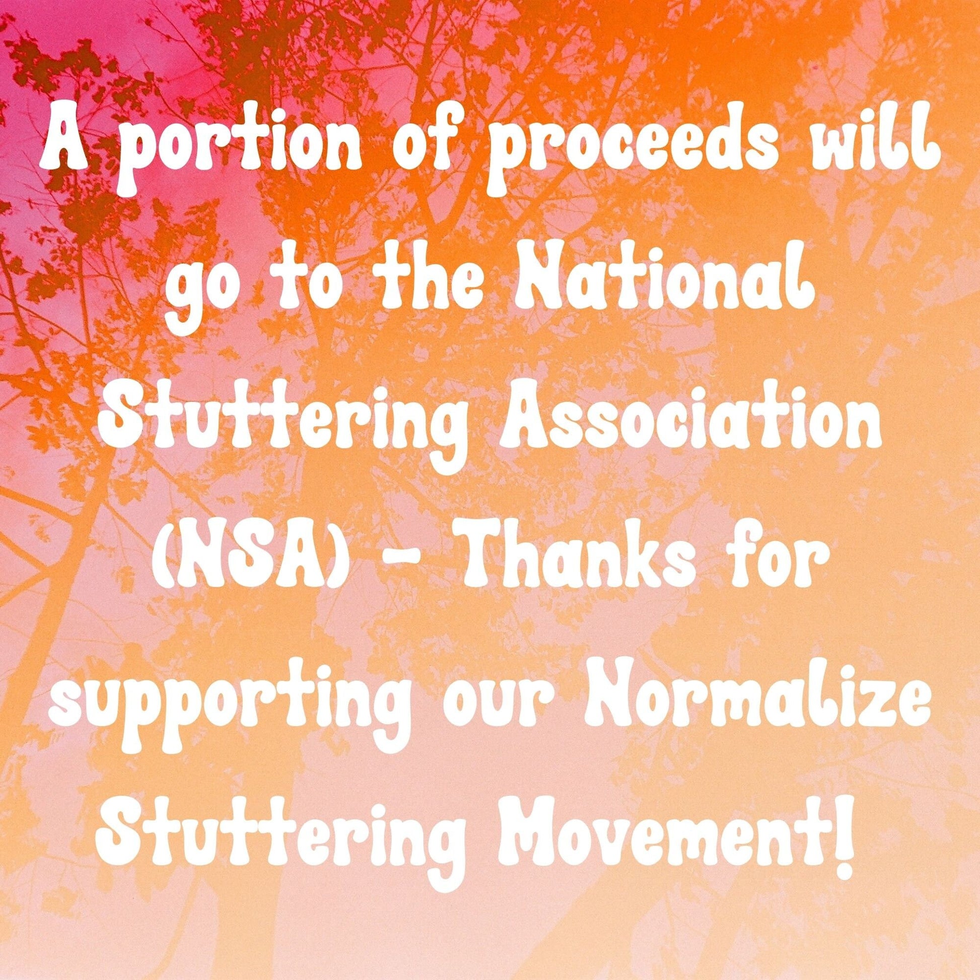 A portion of proceeds will go to the National Stuttering Association (NSA) support groups. Thanks for your support of Team Stuttering!
