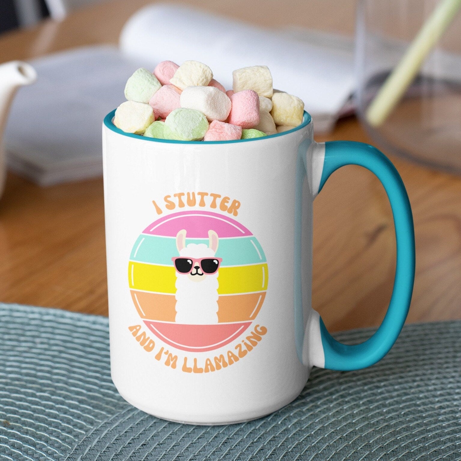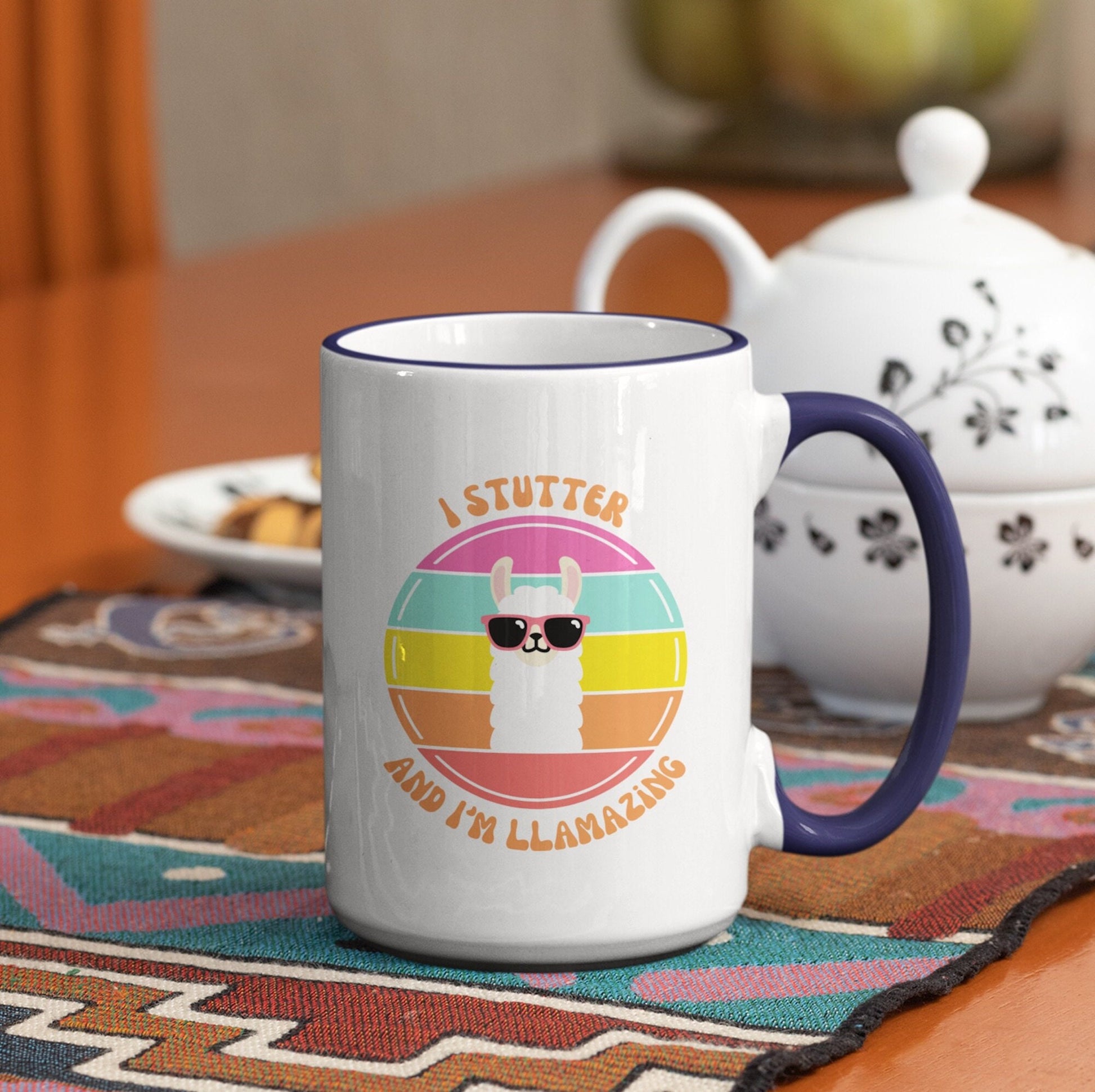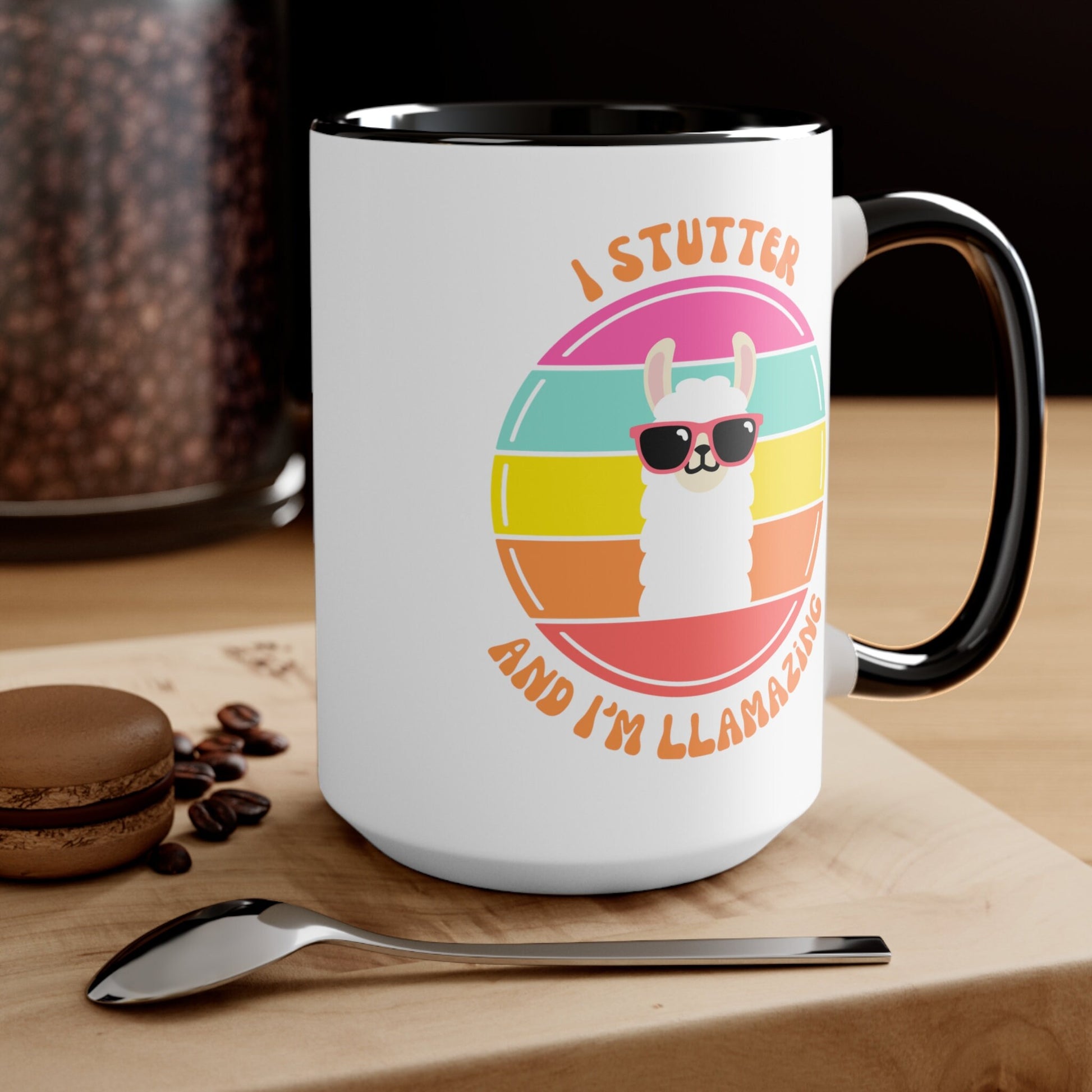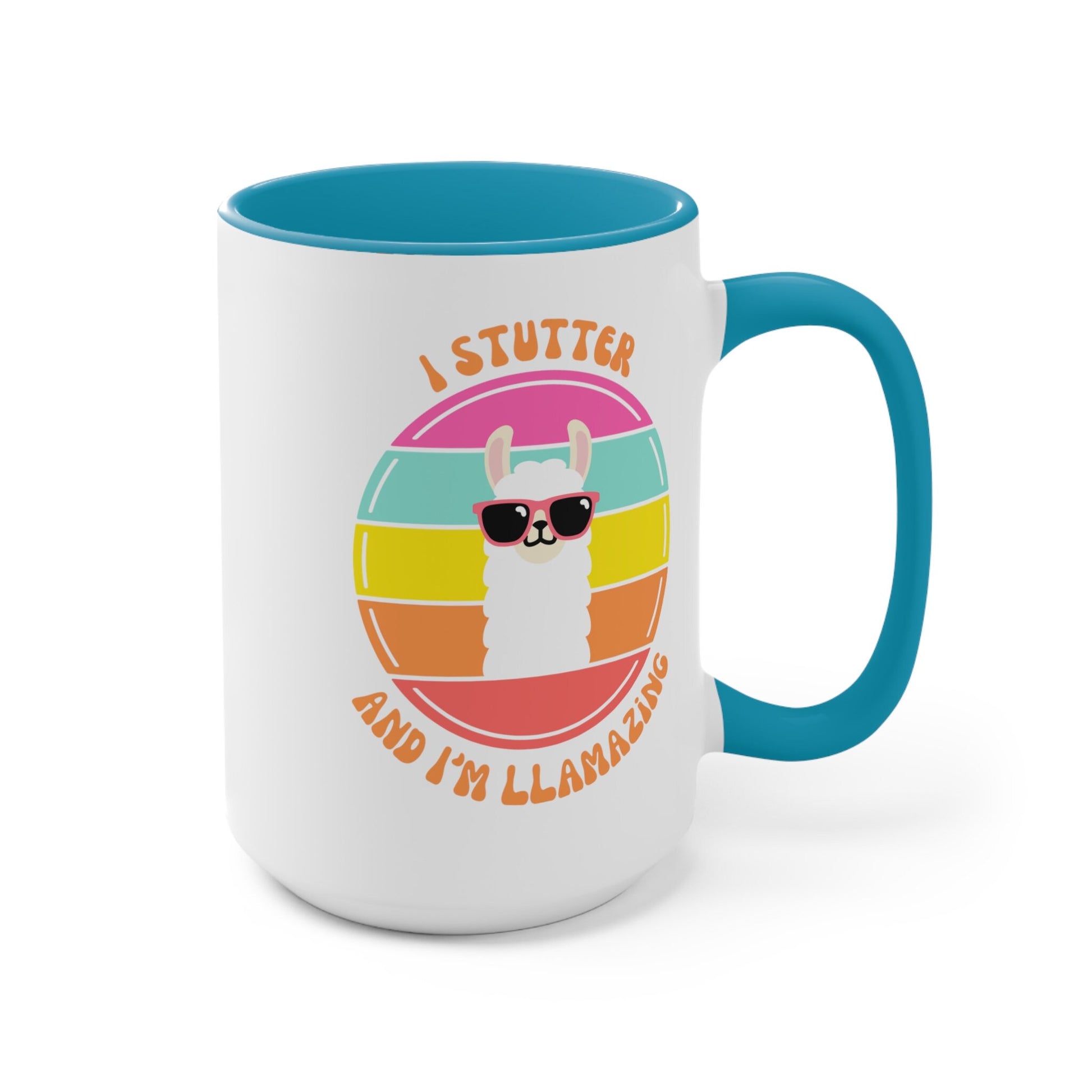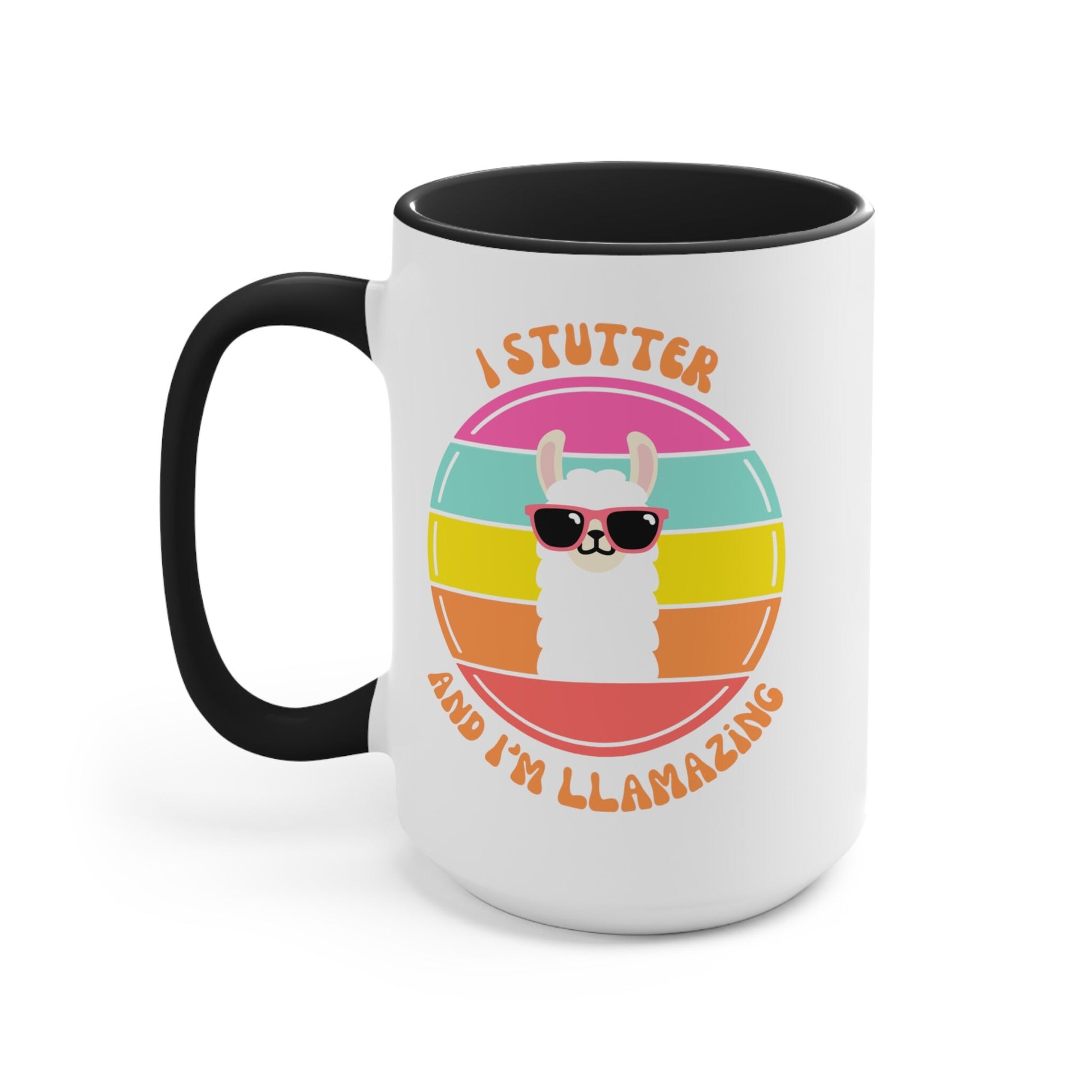 People who stutter and their allies can start their morning off right with this fun two-tone "I Stutter and I'm Llamazing" retro sun coffee mug. This is the perfect gift for the person who stutters or stuttering ally in your life to support the mission to Normalize Stuttering!