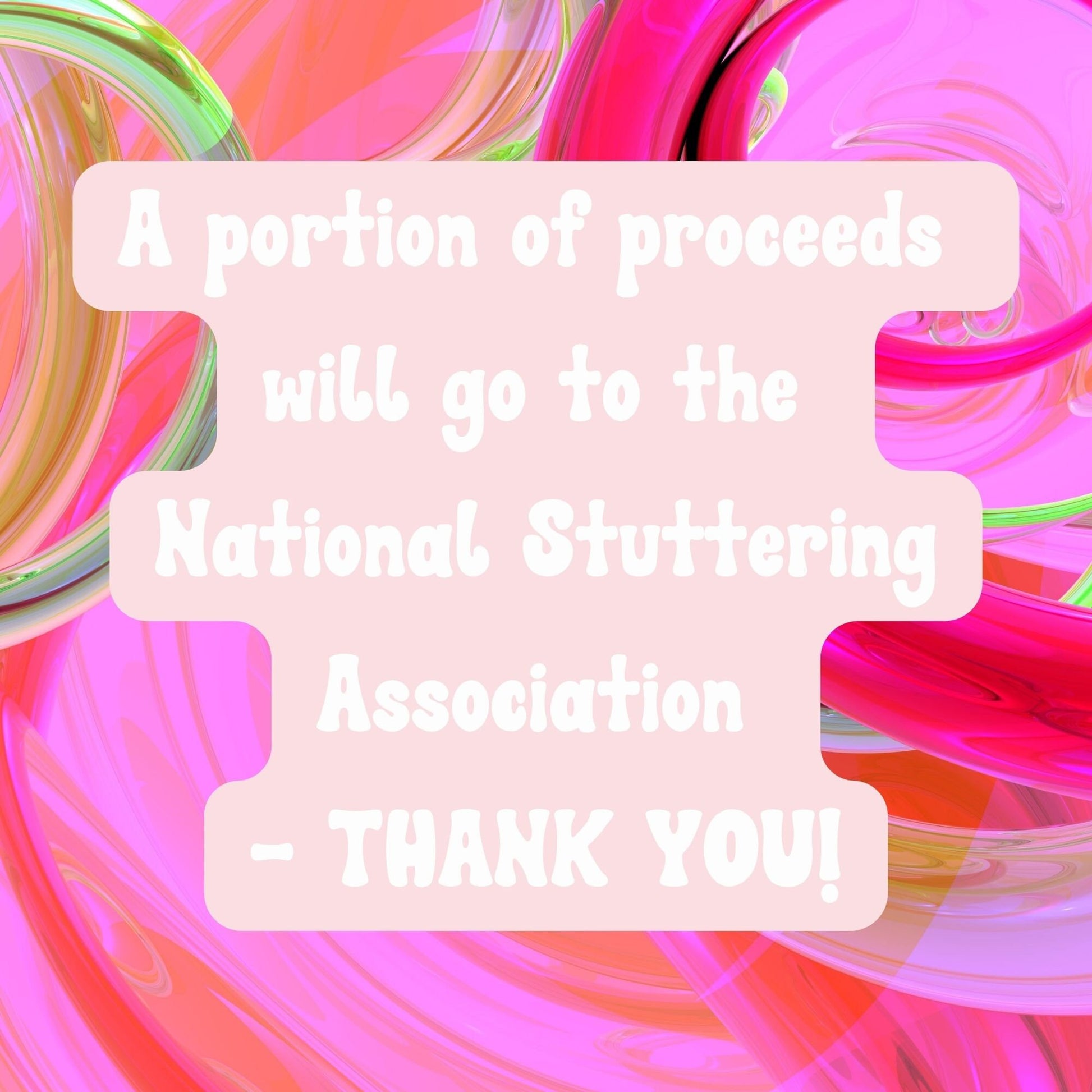 A portion of proceeds will go to the National Stuttering Association (NSA) support groups. Thanks for your support of Team Stuttering!