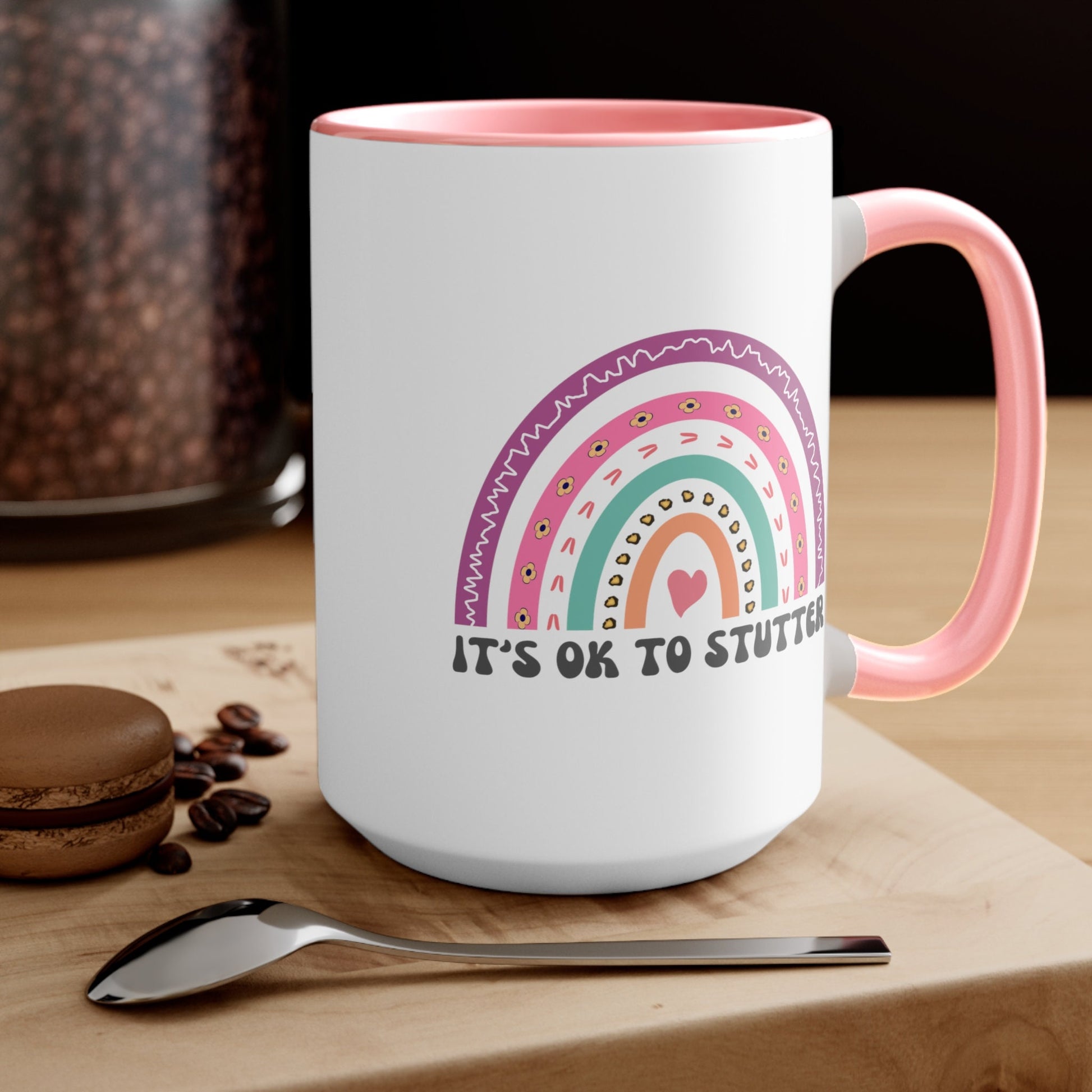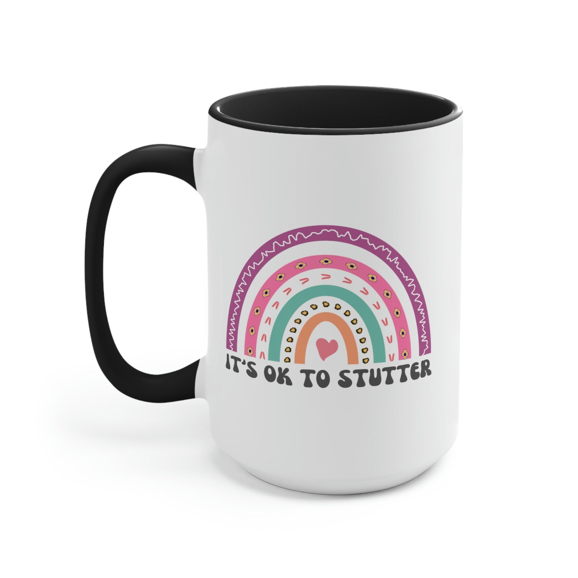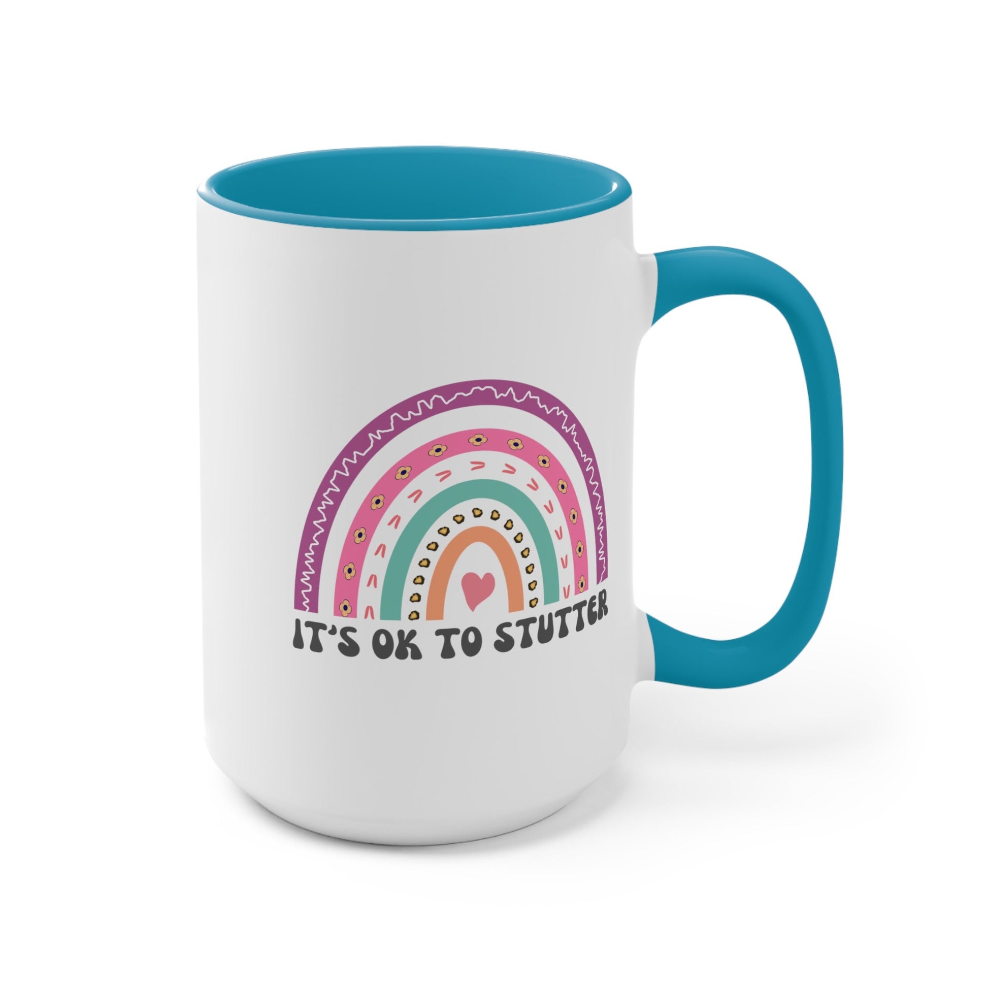 People who stutter and their allies can start their morning off right with this cute two-tone rainbow "It's ok to stutter" coffee mug. This is the perfect gift for the person who stutters or stuttering ally in your life (SLP, friends, family) to support the mission to Normalize Stuttering!
