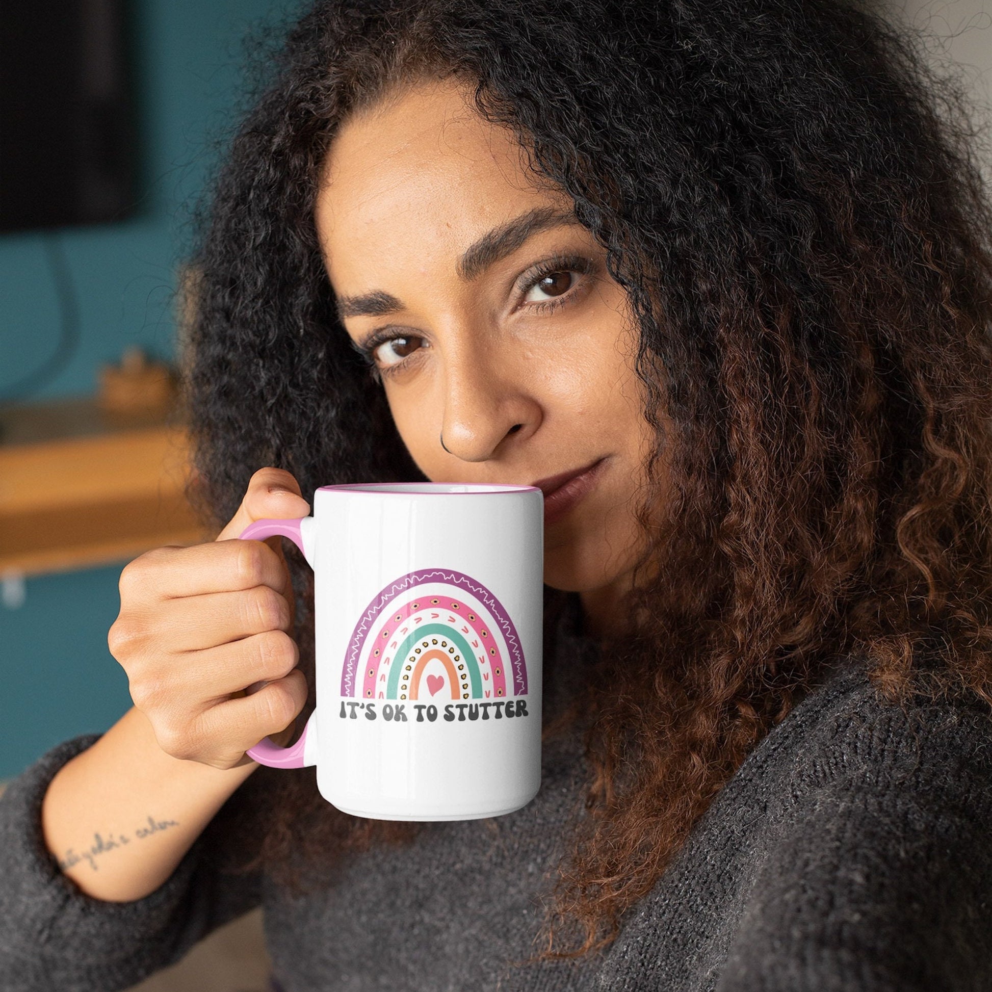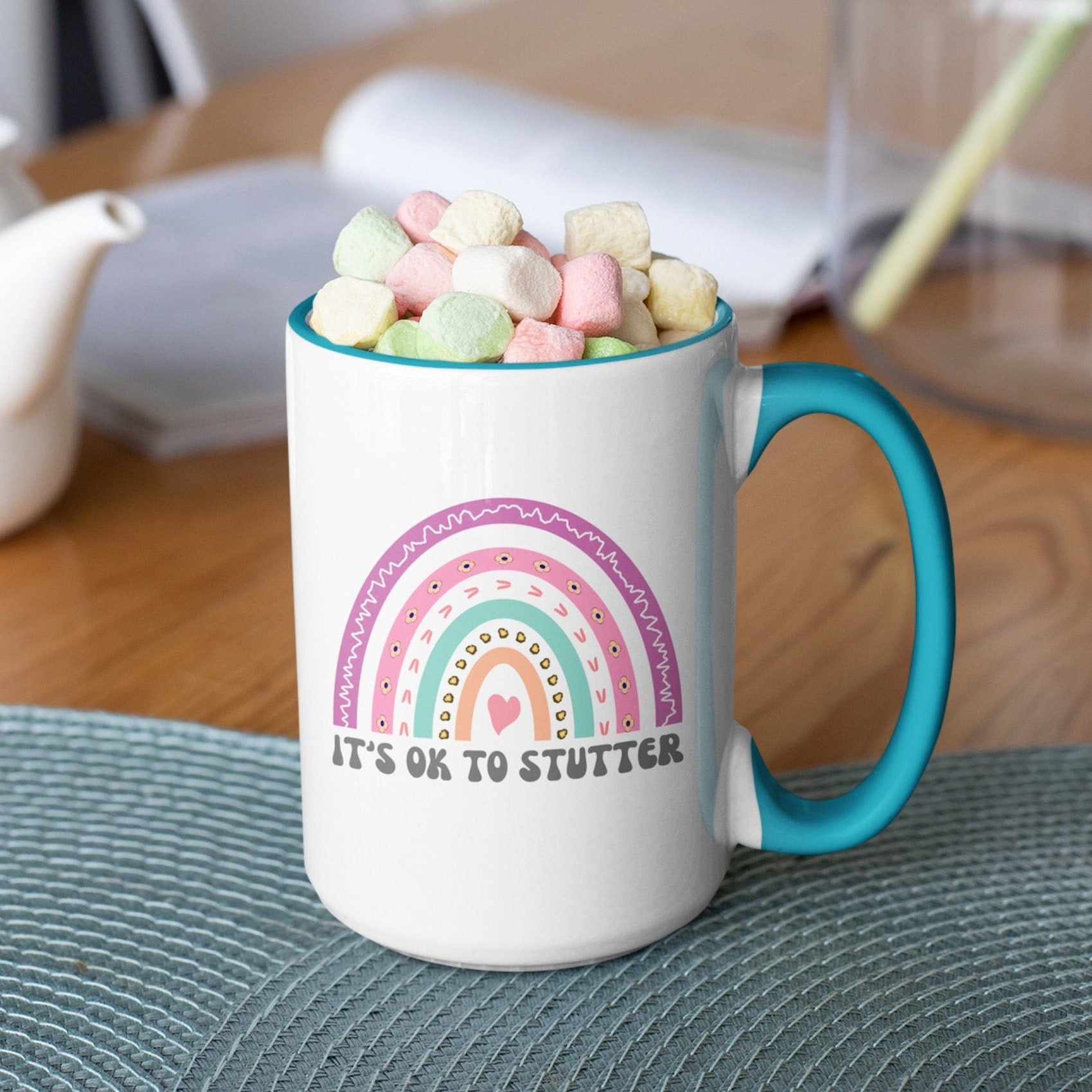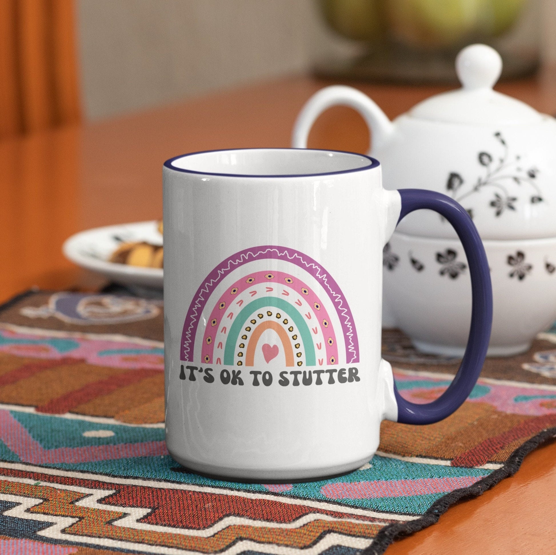 People who stutter and their allies can start their morning off right with this cute two-tone rainbow "It's ok to stutter" coffee mug. This is the perfect gift for the person who stutters or stuttering ally in your life (SLP, friends, family) to support the mission to Normalize Stuttering!