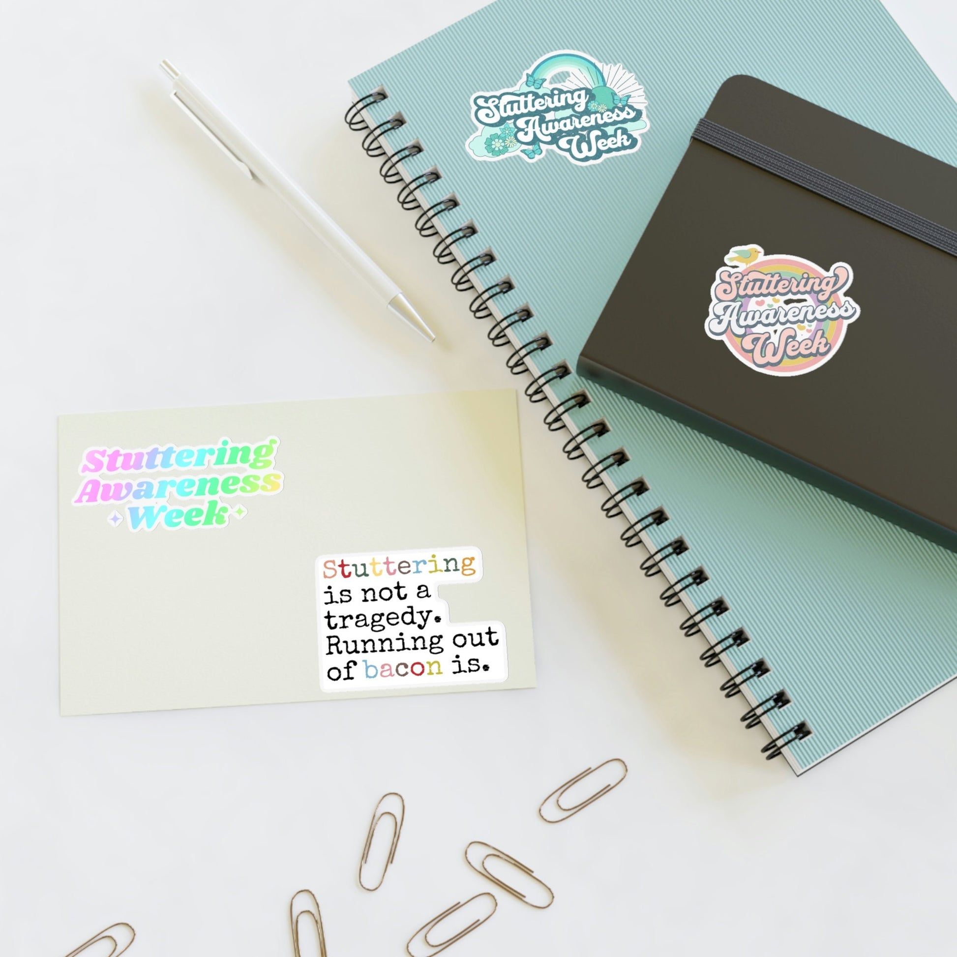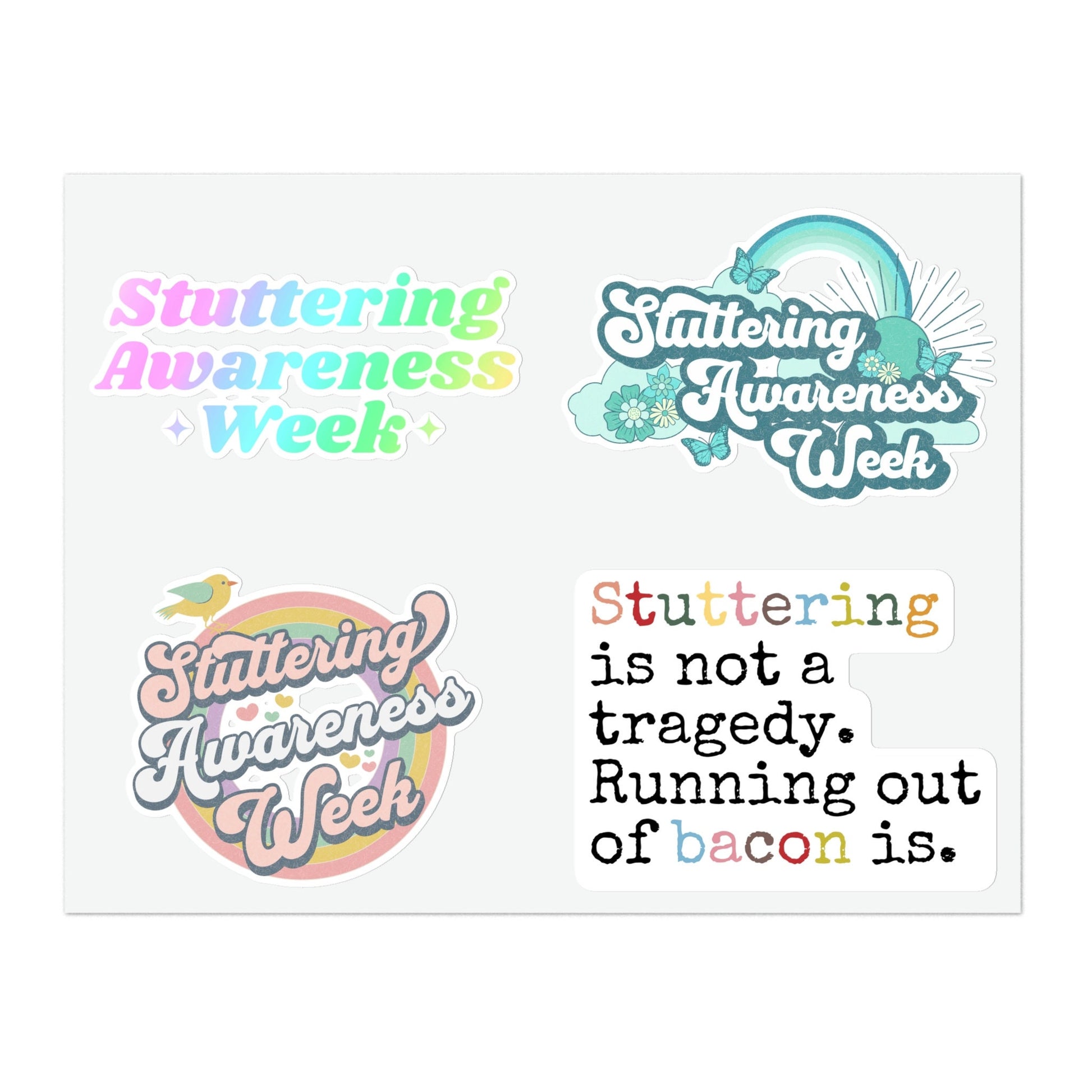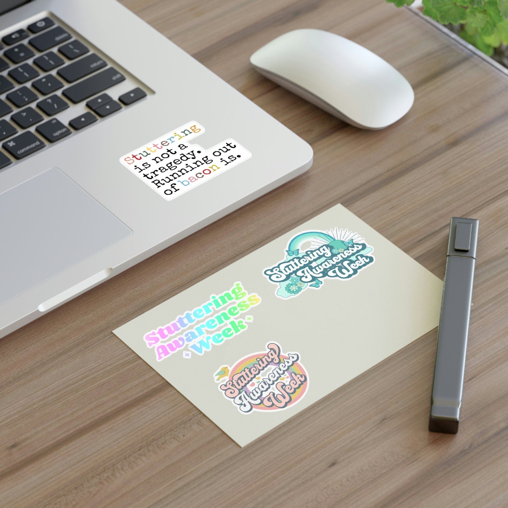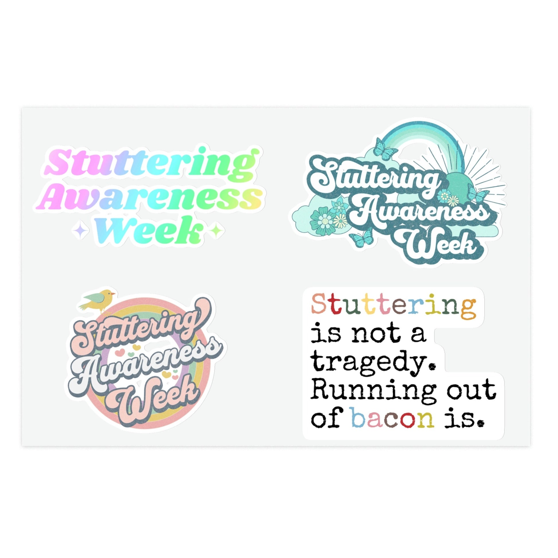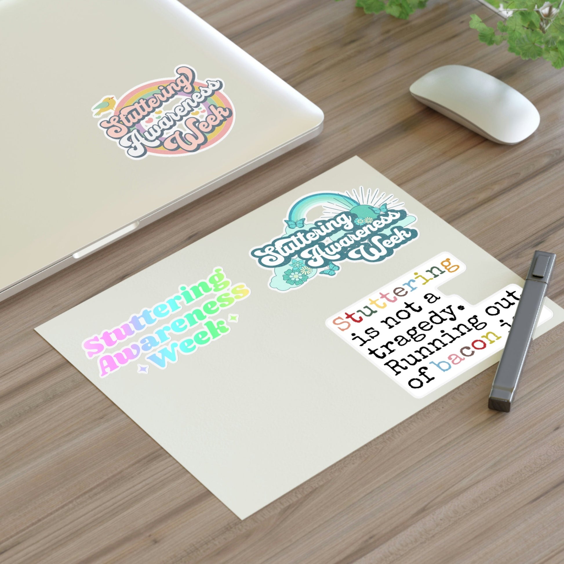 These 4 die cut stuttering stickers on white background are the perfect gift for yourself or the person who stutters in your life! They can be a daily reminder that stuttering is ok, and they will help advocate for people who stutter everywhere as part of the Normalize Stuttering movement.
