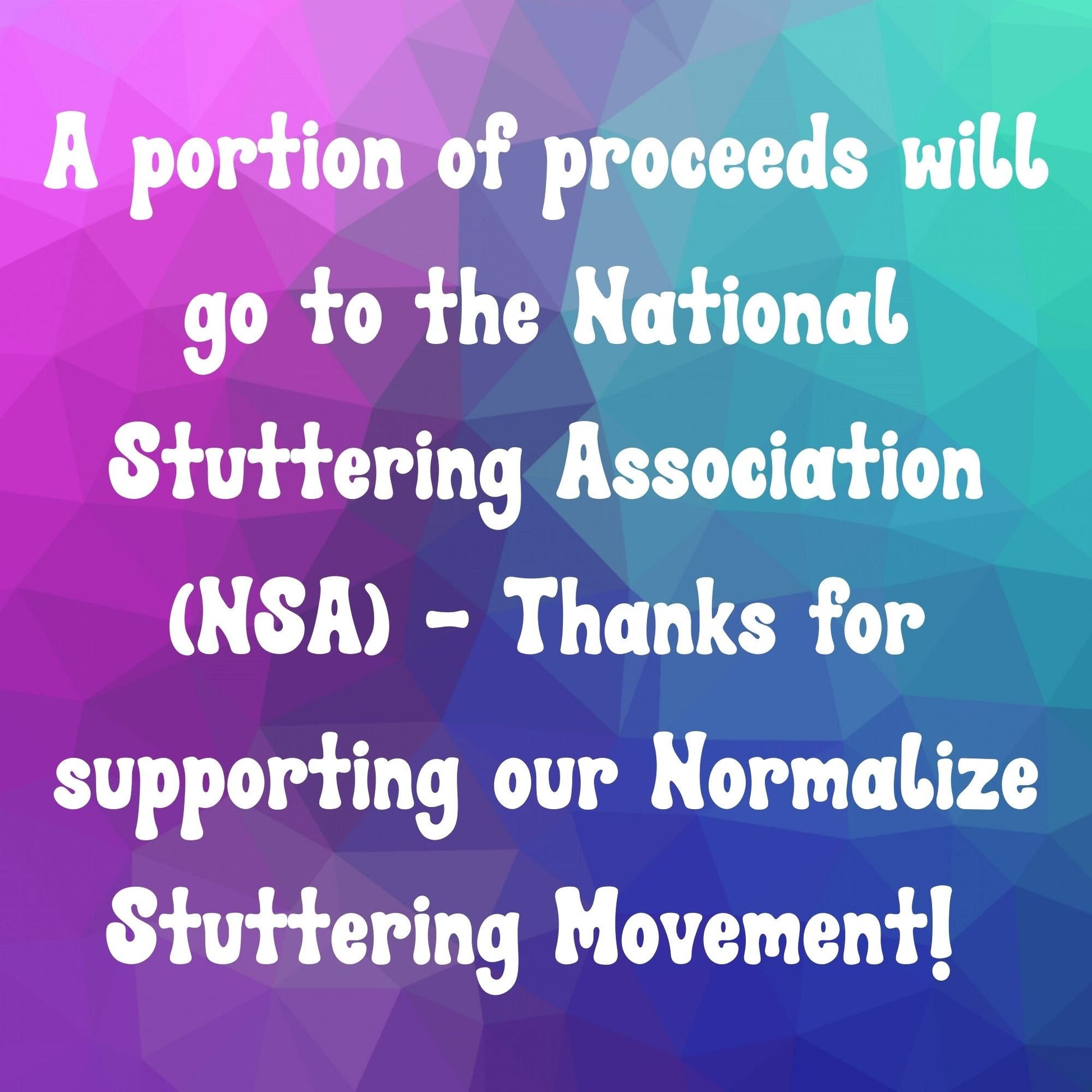 A portion of the proceeds will go towards National Stuttering Association (NSA) support groups - thanks for supporting the Normalize Stuttering movement!