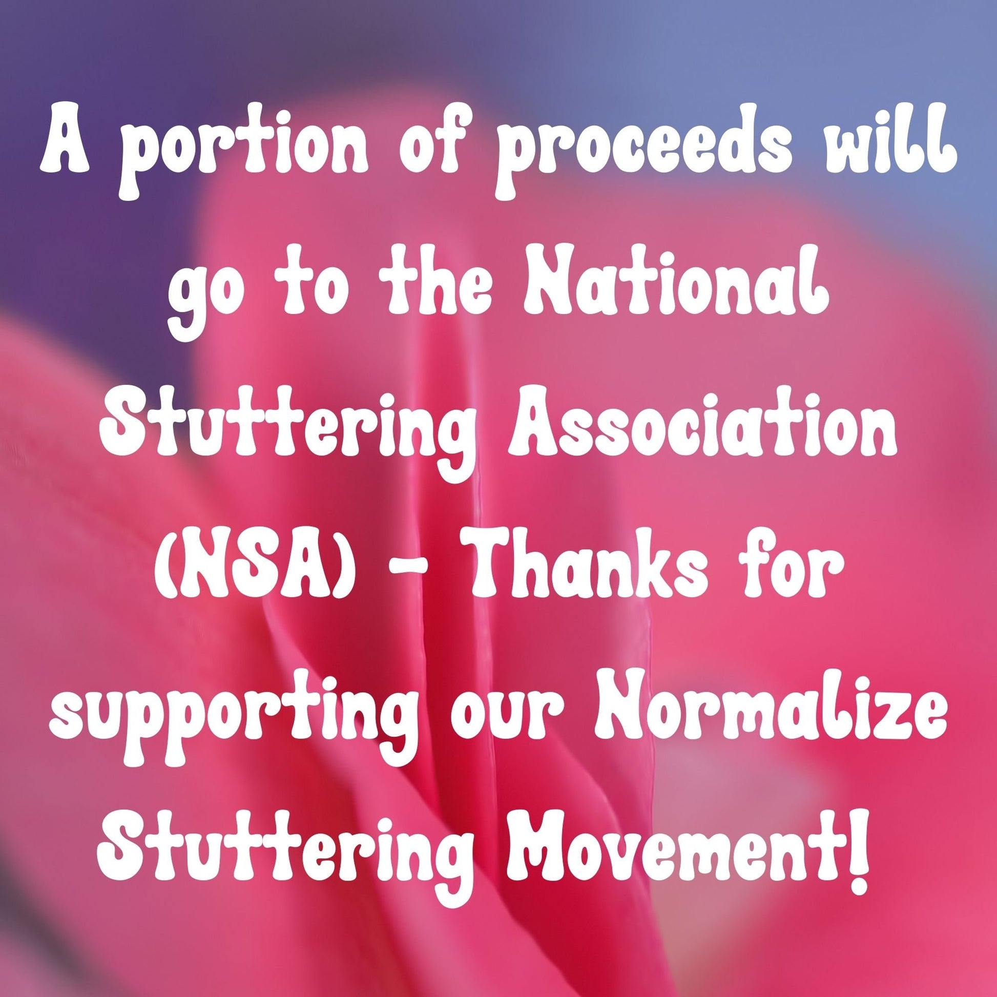 A portion of the proceeds will go towards National Stuttering Association (NSA) support groups - thank you for your support of the Normalize Stuttering movement!