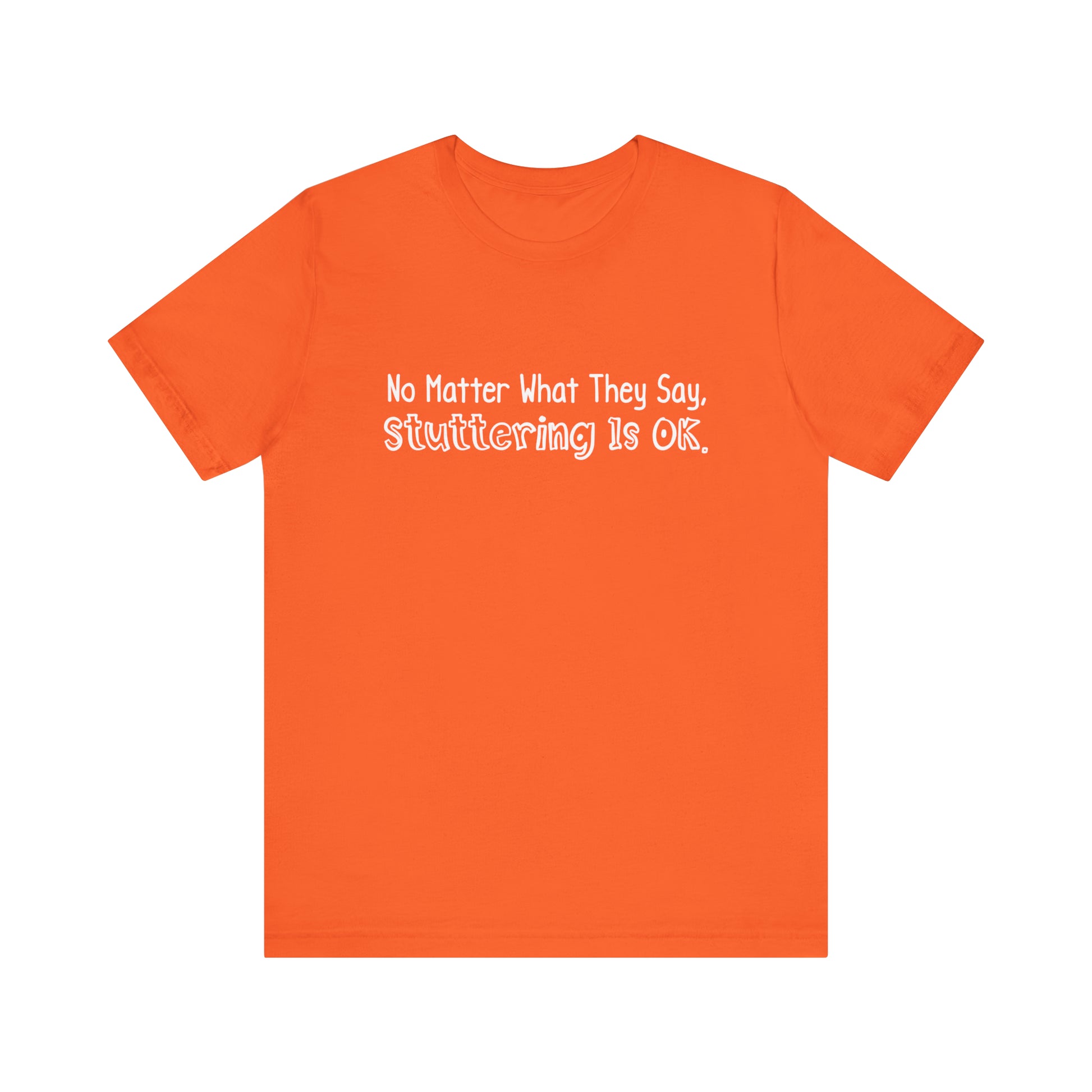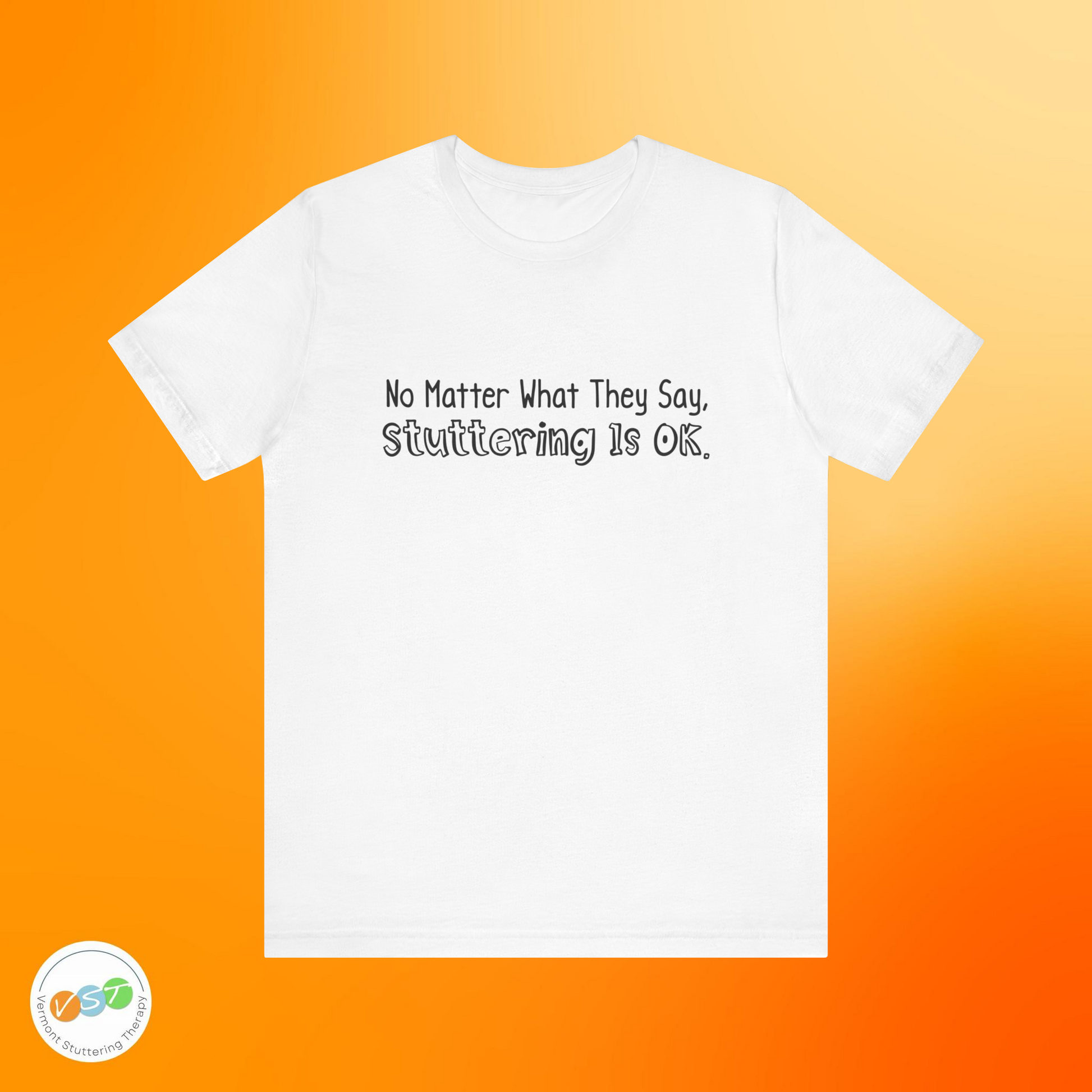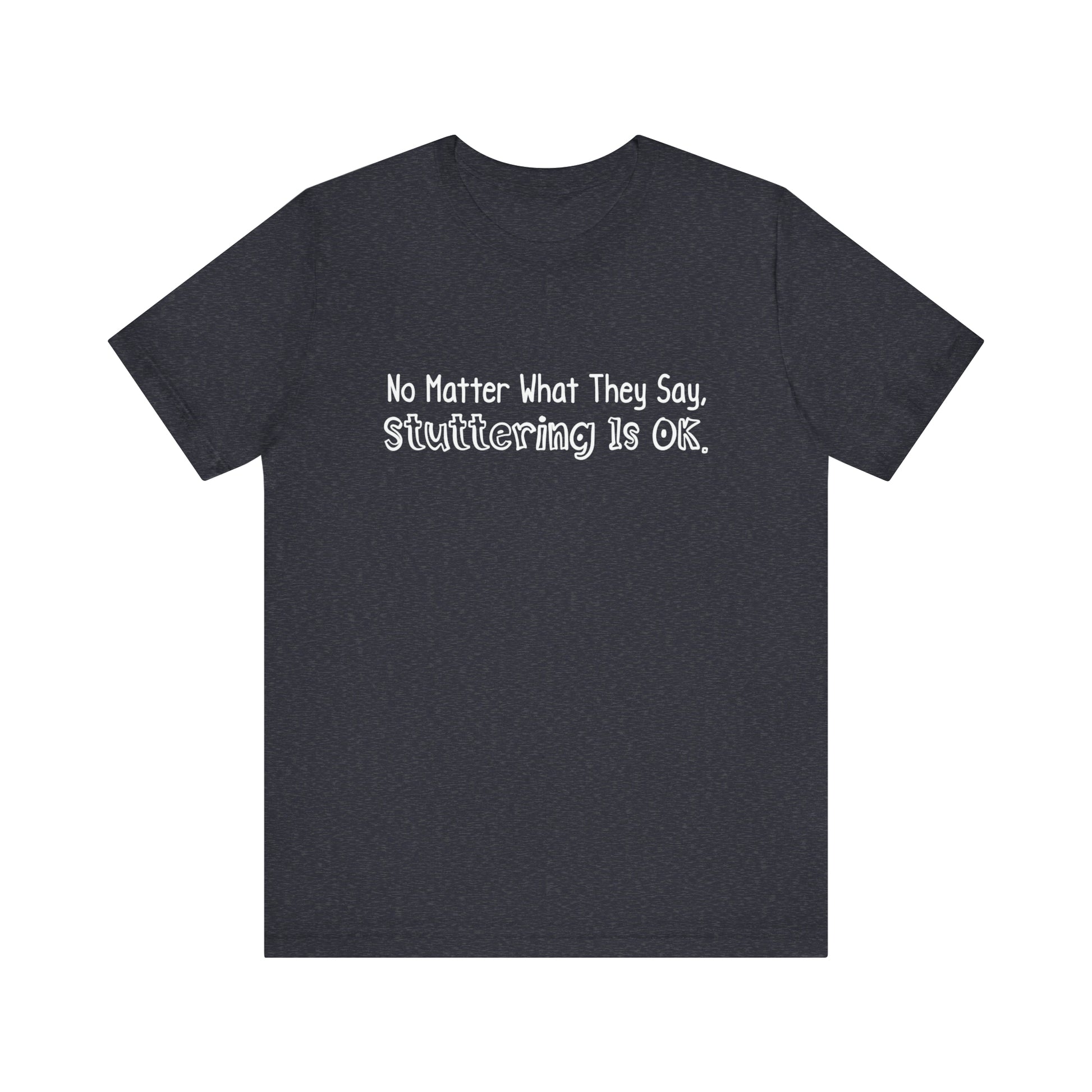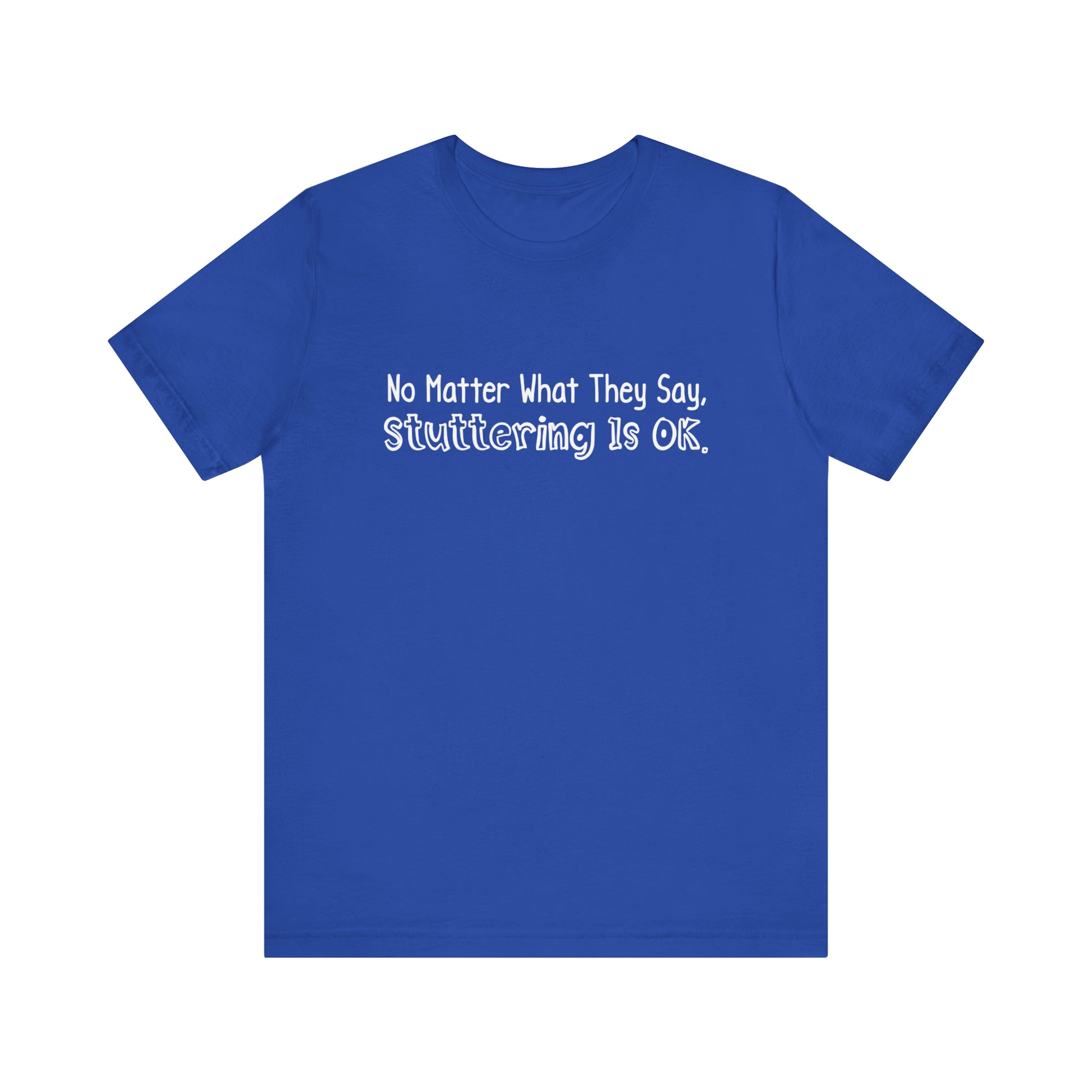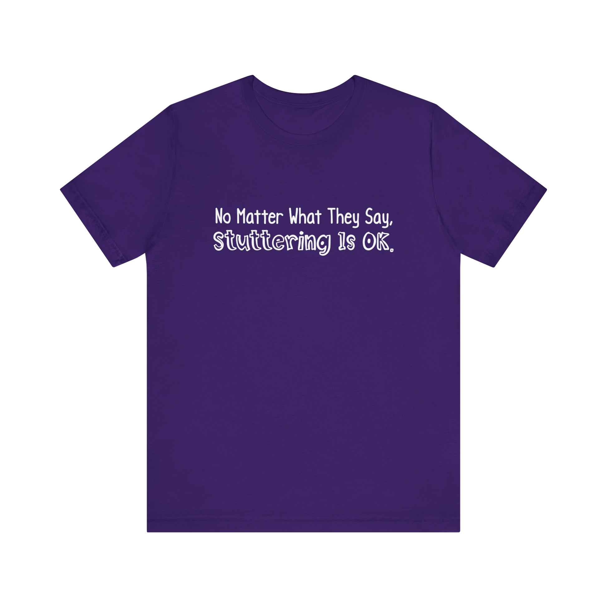 ✨This unisex "No Matter What They Say, Stuttering is OK" stuttering support t-shirt is an ideal gift for a person who stutters or stuttering ally as part of the Normalize Stuttering movement.
