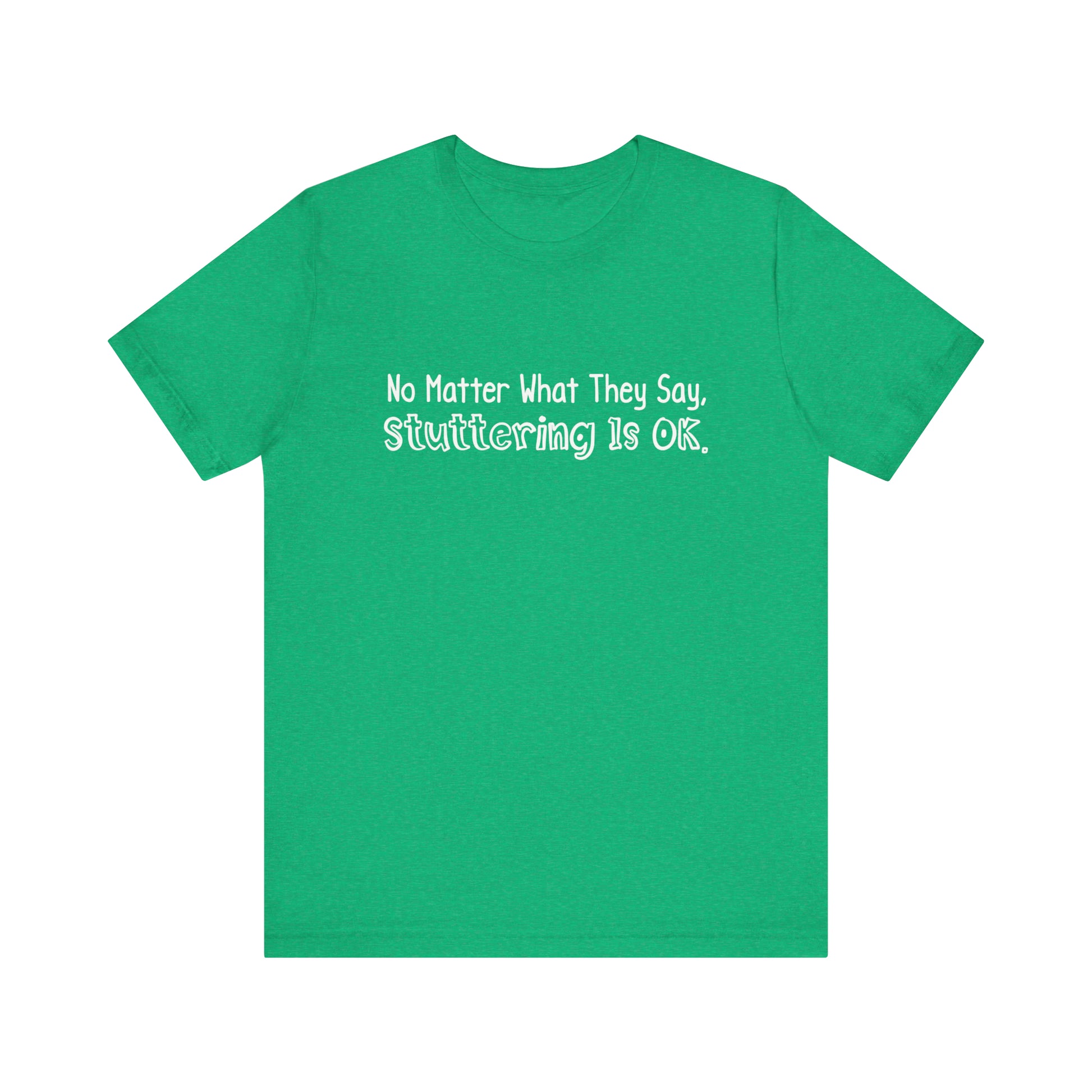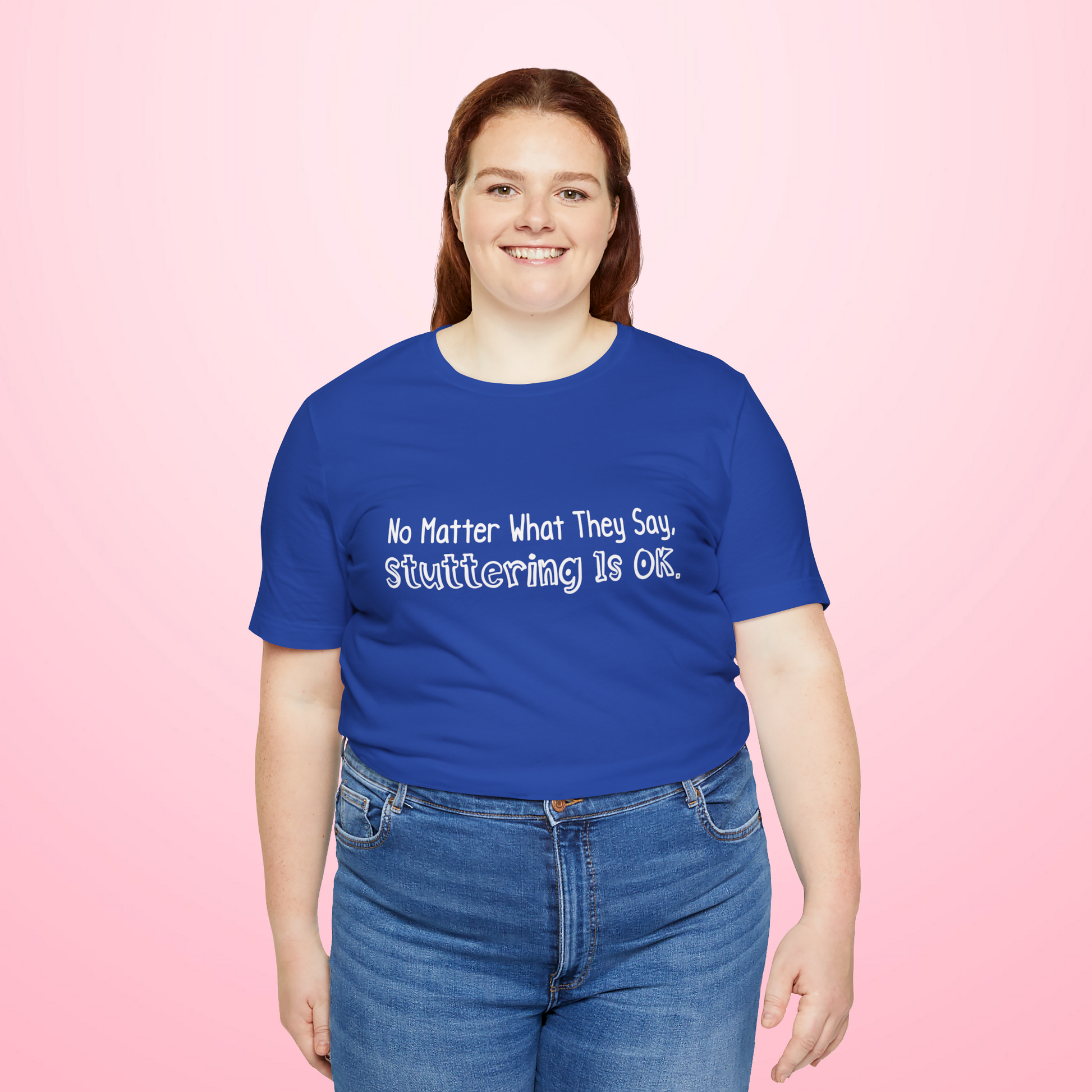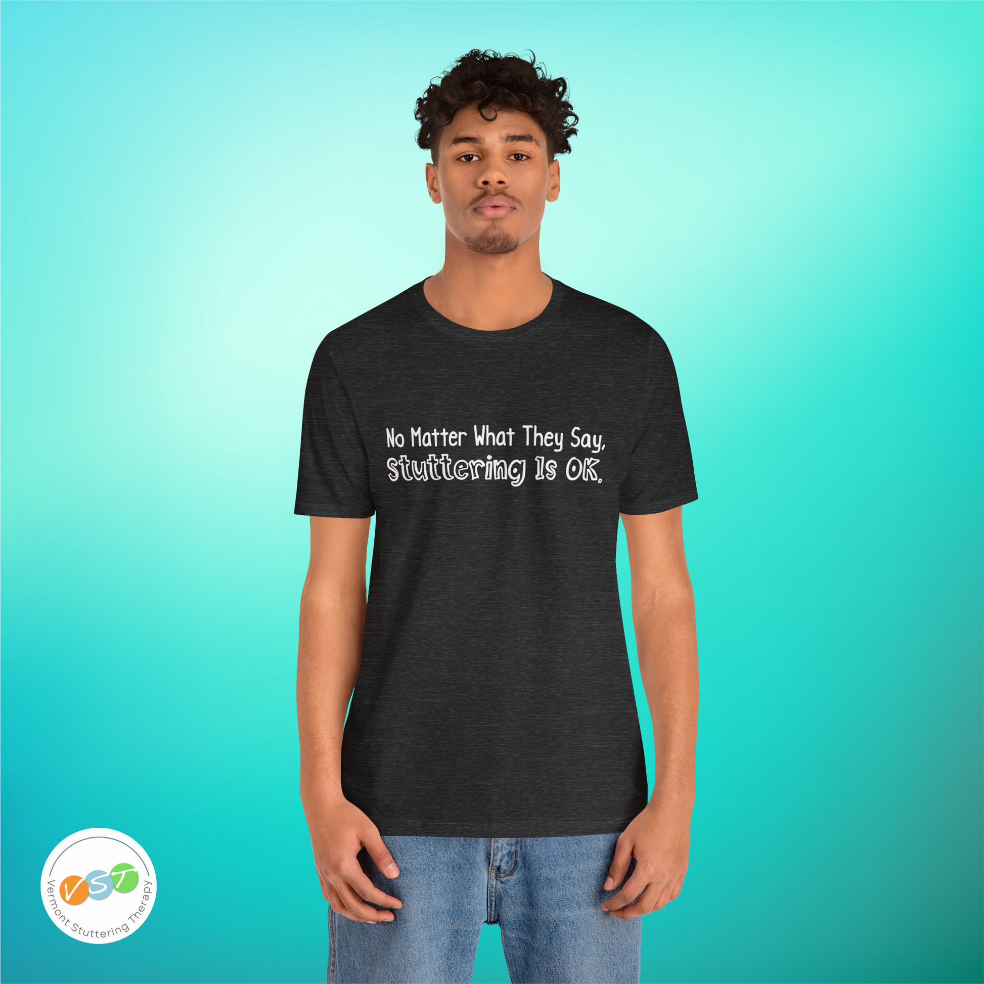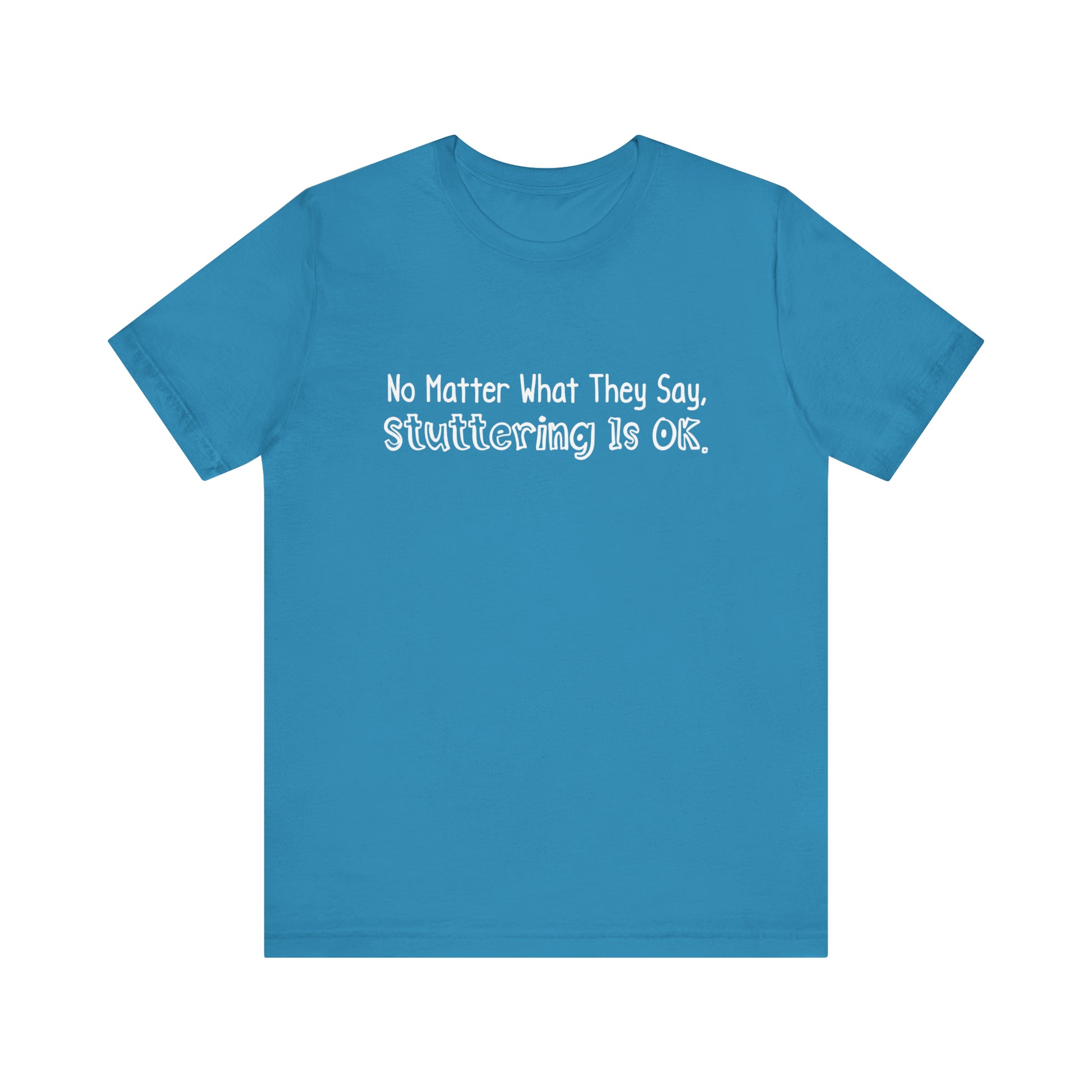 ✨This unisex "No Matter What They Say, Stuttering is OK" stuttering support t-shirt is an ideal gift for a person who stutters or stuttering ally as part of the Normalize Stuttering movement.