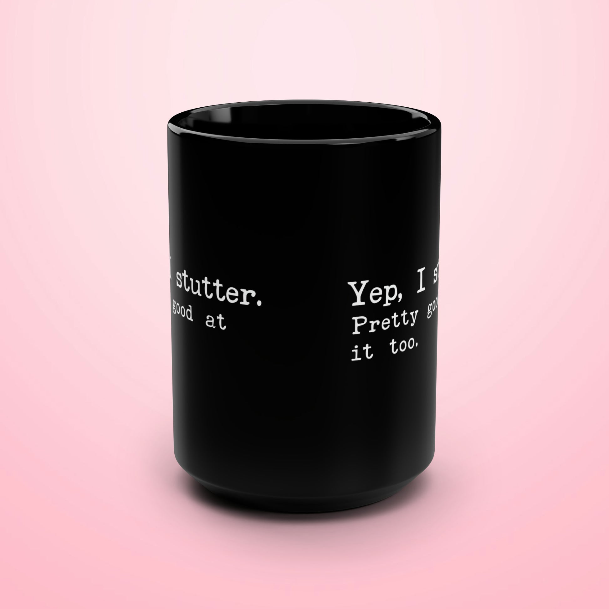 This "Yep, I Stutter. Pretty Good at it Too" 15 oz black mug is perfect for a stuttering advocate, a parent or family member, or friend who stutters! It's a great way to support Team Stuttering and Normalize Stuttering movement, with a reminder that it's ok to stutter.